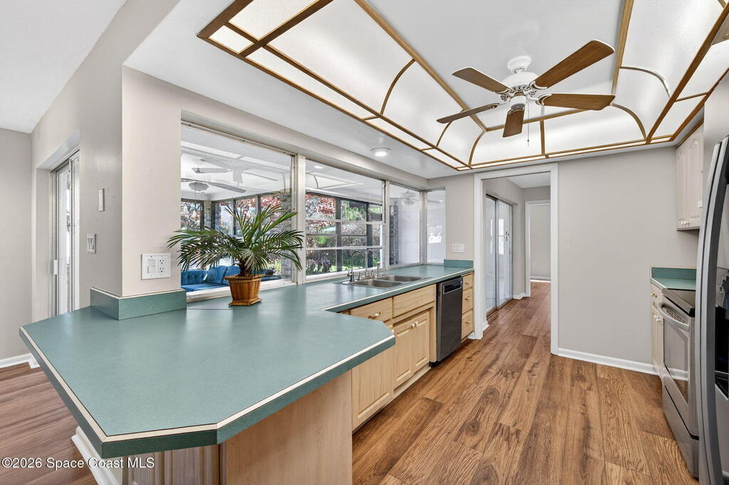 Welcome TO Your South Merritt Island home! This lovely property offers the highly desired combination of a great location & NO HOA restrictions, giving you the freedom to truly make it your own. This spacious home 2025 living area features 3 Bedrooms, 2 full Baths, and a 2 Car Garage. Roof 2019, No CAST IRON Plumbing was completely replaced 2026, updated electrical & panel 26., all new flooring thru out & inter paint. The open floor plan & huge kitchen are perfectly designed for comfortable living & entertaining. Step outside to enjoy the Florida breeze of the Indian River from your private glassed in room , or gather in the fully fenced yard--the perfect spot to watch the incredible, world-famous rocket launches! all while being centrally located along the Space Coast...Just minutes from the Beachline-528, 520, I95, Port Canaveral, Beach's, Shopping, Fishing, Restaurants & more! Close proximity to Patrick Space Force Base, Space X, Blue Origin, & Kennedy Space Center.