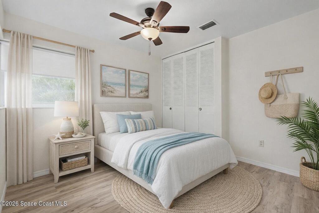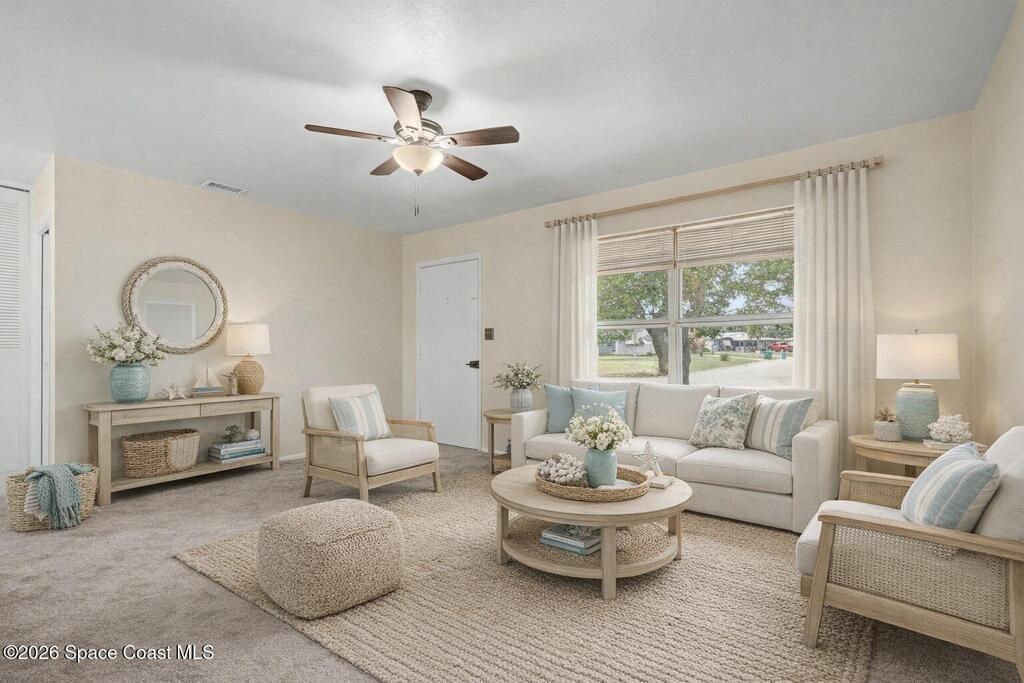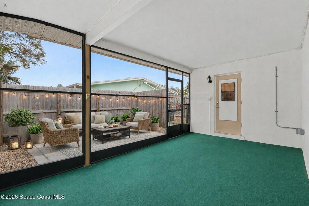Move In Ready!! Whether you're searching for the perfect starter home, sunny seasonal retreat, or smart investment, this charming 2BR/1BA delivers! Enjoy stress-free living w/ a 2024 roof and upgrades throughout. The remodeled kitchen shines w/ quartz countertops and backsplash, stainless steel appliances, soft-close cabinetry, and a stainless sink. New luxury vinyl plank flooring flows through the home, complemented by cozy carpeted living. The beautifully updated bath features a tiled walk-in shower w/ accessible handrails. Relax al-fresco on the screened-in carport and front porch. Enjoy outdoor living w/ a fully fenced backyard w/ shed, garden bed, avocado and Brazilian nut trees, plus double gates for easy RV/boat parking. Plenty of room to garden, add a pool, or expand. In an establish neighborhood with No HOA and No Rental Restrictions; the possibilities are endless. Privately backing to a canal and minutes from the Eau Gallie Arts District, dining, and Brevard's beaches!