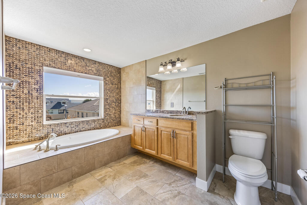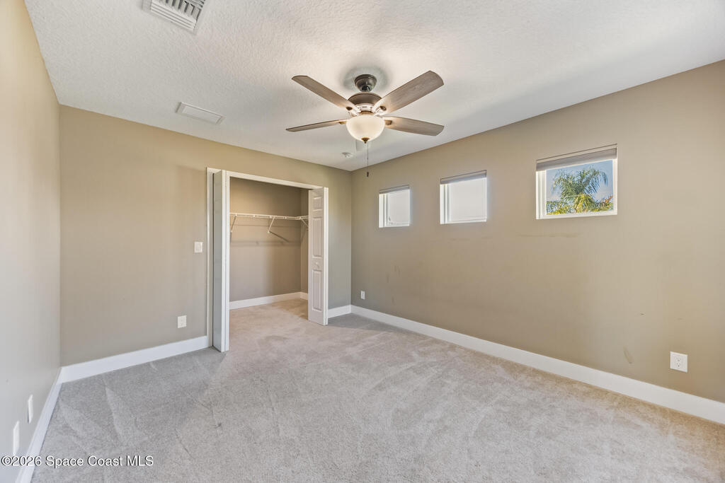Rare beach-side rental opportunity! Beautiful Builders Model with over 2200 sq ft. of living area. With Room for the whole Family, this luxury town home villa, only 6 years old, offers soaring cathedral ceilings and an open, light-filled floor plan. High-end finishes include granite mosaic tile and backsplashes in the kitchen and baths, 42'' wood cabinets, ceramic tile throughout living and wet areas, and a 3-panel sliding glass door leading to the private lanai. Upstairs features a spacious loft and bedrooms with large walk-in closets. Built with solid concrete block construction and high-efficiency Low-E impact windows for added comfort and peace of mind. HOA includes lawn maintenance and access to the community pool. Conveniently located within walking/biking distance to local schools Holland Elementary, Delaura Middle and Satellite High school, a 7-minute bike ride to the beach, and close to Patrick Space Force Base and I-95 for an easy commute.