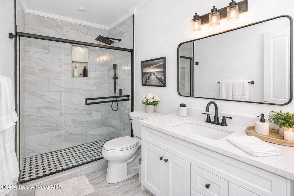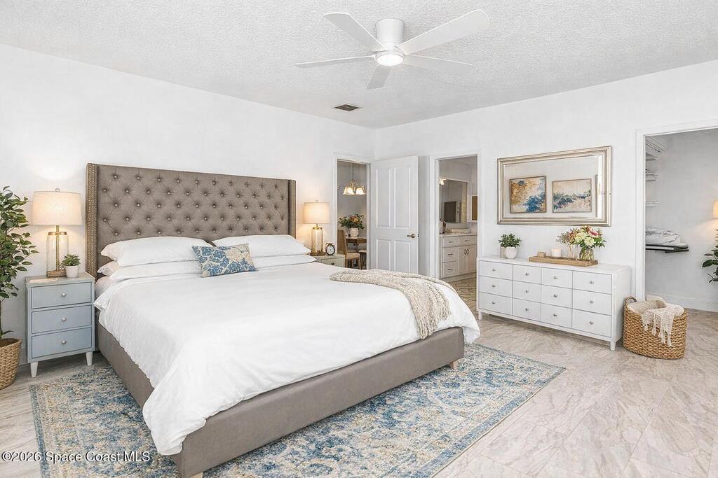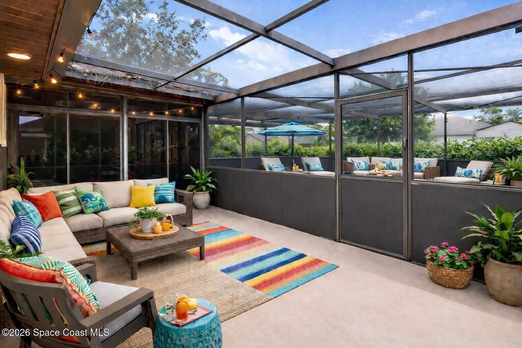 COMPLETELY REMODELED POOL HOME ON NEARLY HALF AN ACRE!! This 3/2 pool home is in one of Brevard's most coveted neighborhoods, Lockmar Estates. With its open concept floor plan, bathed in natural light, this space is perfect for entertaining. The heart of the home is the great room, a space that connects the updated kitchen complete with newer appliances and crisp white shaker style cabinetry, to the separate living rooms. The split floor plan has the primary suite located off of the living area, granting privacy and boasting a spacious walk-in closet and an ensuite with a large shower. The remaining two bedrooms share a full bath on the other side of the home. The rear of the home holds a screen in porch that blends to the lanai covered pool. Enjoy the pool all year round with the new electric pool heater. The outdoor bonuses continue with an expansive back yard with two sheds. Close to beach/river access as well as PSFB along with many major retail stores, restaurants & more nearby.