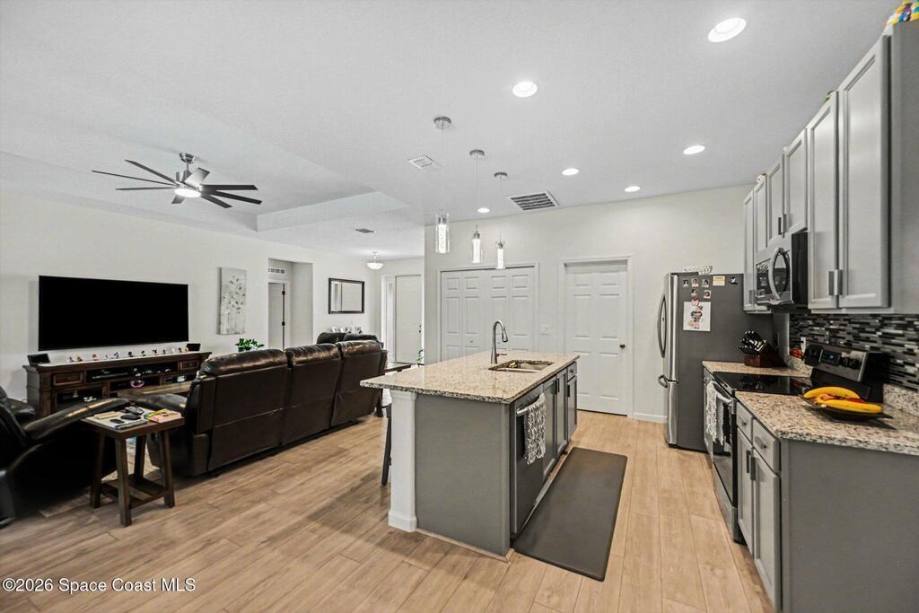 Breakfast Bar , Ceiling Fan(s) , His and Hers Closets , Kitchen Island , Open Floorplan , Primary Bathroom - Shower No Tub , Solar Tube(s) , Split Bedrooms
