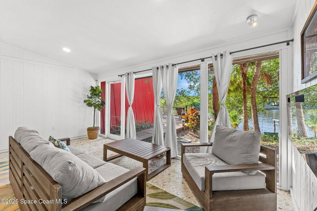 Waterfront Rental-4 Beds-2.5 Baths-Private Dock-FULLY FURNISHED- from cookware to bedding, TVs to the coffee machine.Welcome to Rose's River Chalet located directly on Horse Creek and the Indian River Lagoon. This beautifully updated rental, is ideal for both long-term stays and short term vacation rentals.This spacious home boasts a balcony with water views, a private dock with nearby access to the Atlantic Ocean via Sebastian Inlet or Port Canaveral, and a large wooden deck perfect for outdoor entertaining and dining. A screened-in patio and separate private suite offer both comfort and extra privacy. Completely renovated with designer finishes, the home features abundant natural light and tasteful coastal decor throughout. A large circular driveway provides ample parking. Located near Melbourne and Orlando International Airports, Disney World, public beaches, upscale shops and dining, Cocoa Beach, and more.