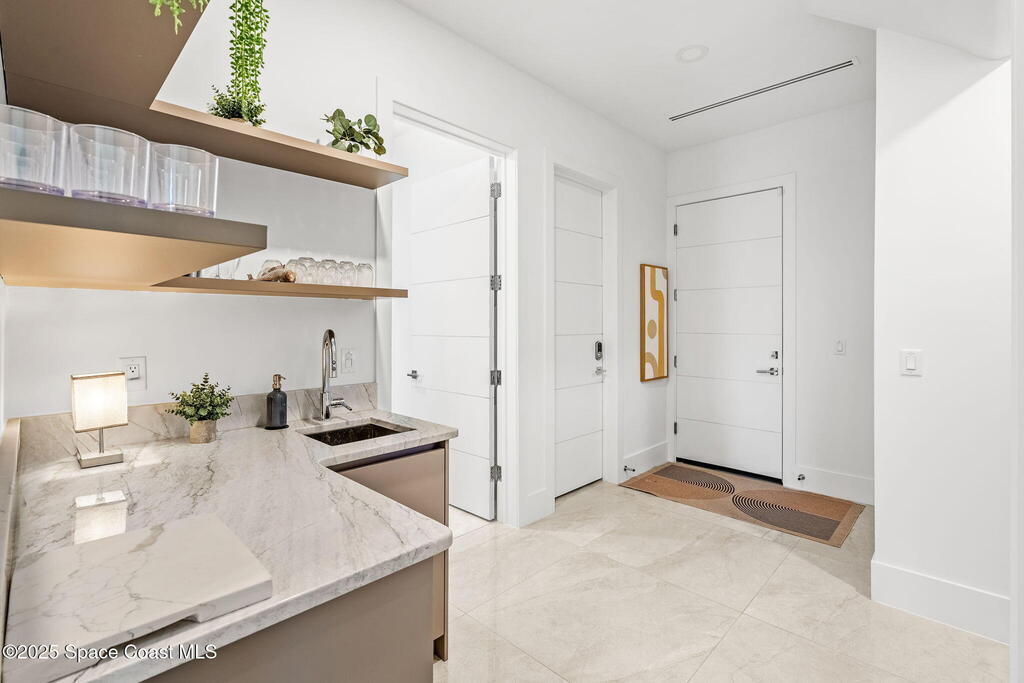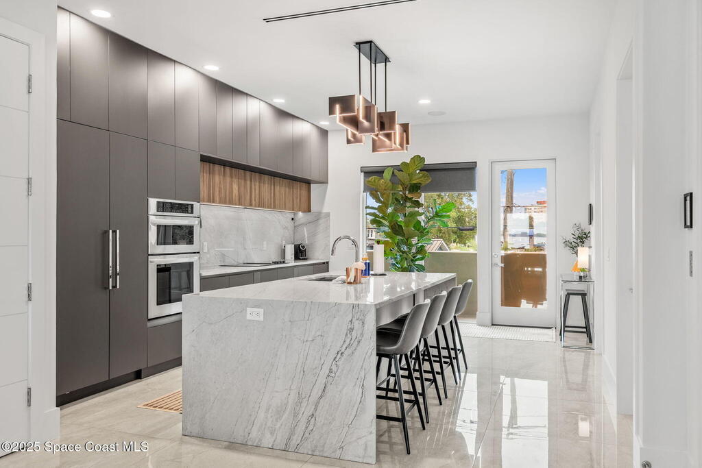 Experience a level of craftsmanship rarely seen on the market. Not a single expense has been spared by this international developer--every inch of this home reflects precision, intention, and luxury. Perched 20 feet above sea level and built like a fortress, this 2023 direct-riverfront residence delivers panoramic Indian River views and European-inspired elegance across 2,936 sq. ft., seamlessly connected by a private elevator to all three levels.Every design element is a statement piece: a sculptural marble-and-oak floating staircase, glass railings, sleek porcelain flooring, and meticulously curated finishes that redefine modern sophistication. The Euro-style kitchen features premium appliances and custom cabinetry designed not just for functionality, but for elevated living and entertaining.Set on a private 0.12-acre riverfront parcel, the estate includes a resort-style pool with waterfall and a 366-ft private dock outfitted with both boat and jet ski lifts.