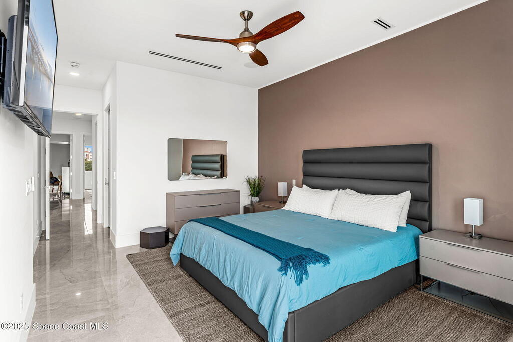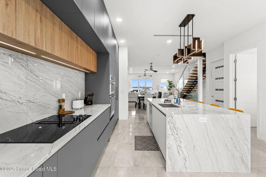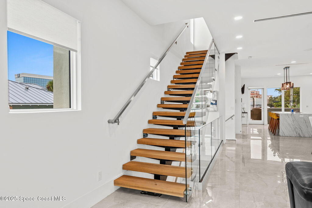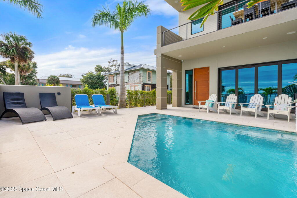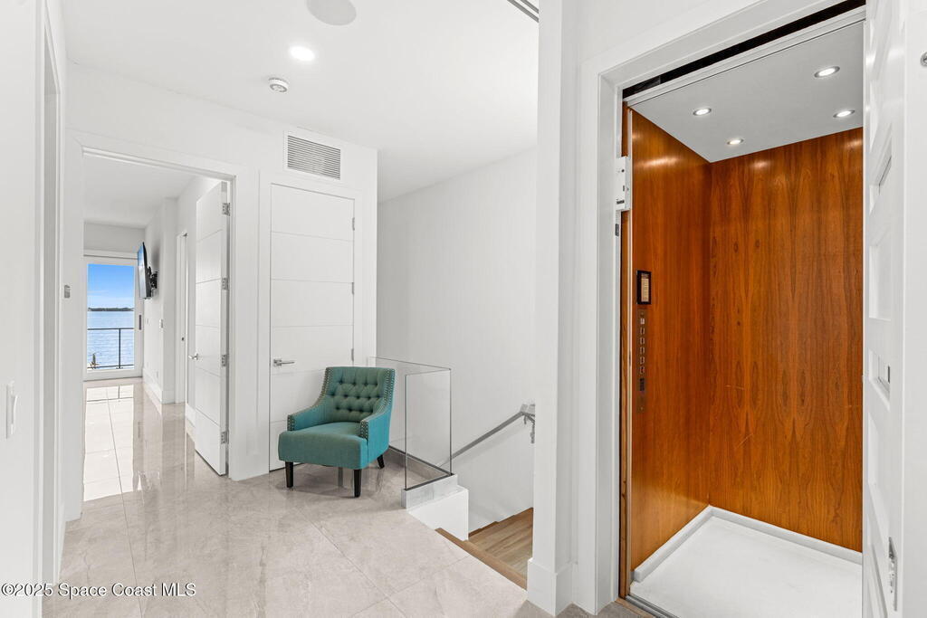 Experience a level of craftsmanship rarely seen on the market. Not a single expense has been spared by this international developer--every inch of this home reflects precision, intention, and luxury. Perched 20 feet above sea level and built like a fortress, this 2023 direct-riverfront residence delivers panoramic Indian River views and European-inspired elegance across 2,936 sq. ft., seamlessly connected by a private elevator to all three levels.Every design element is a statement piece: a sculptural marble-and-oak floating staircase, glass railings, sleek porcelain flooring, and meticulously curated finishes that redefine modern sophistication. The Euro-style kitchen features premium appliances and custom cabinetry designed not just for functionality, but for elevated living and entertaining.Set on a private 0.12-acre riverfront parcel, the estate includes a resort-style pool with waterfall and a 366-ft private dock outfitted with both boat and jet ski lifts.