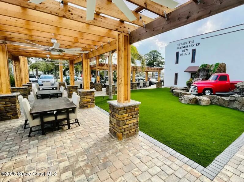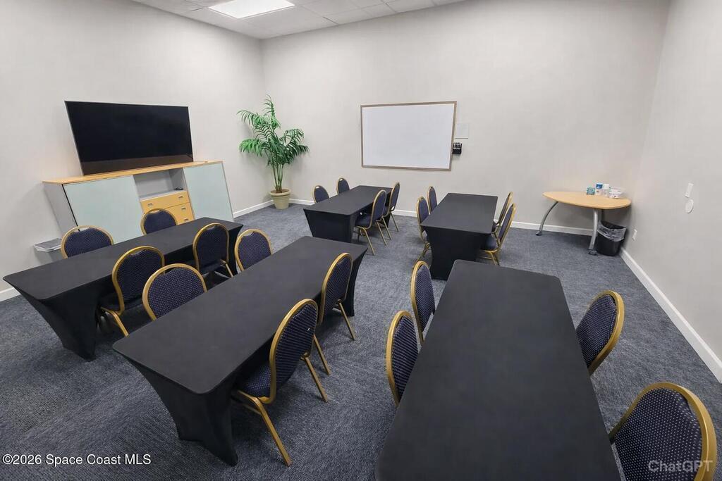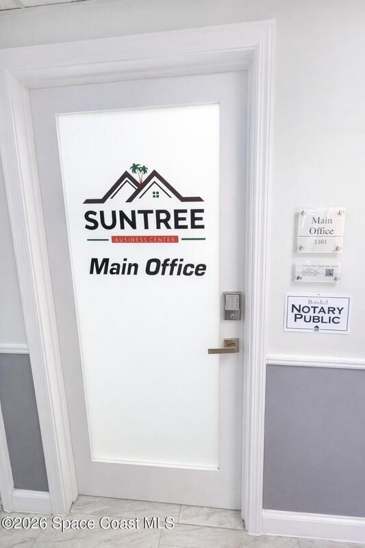 Come bring your business to be a part of the newly renovated Suntree Business Center. This flex space has a waiting area, 2 bathrooms, 'Great' Room over 1,450 sq. ft. wide open for any type of business. With over 16K vehicles passing every day, 140+ tenants/businesses, 5 onsite food trucks, copy center, conference room and a luxurious outdoor entertainment space with waterfalls, this building has a lot to offer any type of business and their clients. The complex has a leasing and management office, maintenance supervisor and staff onsite for any immediate support if needed. Stop by today for your private viewing of this flex/industrial space recently utilized as a performing arts studio.