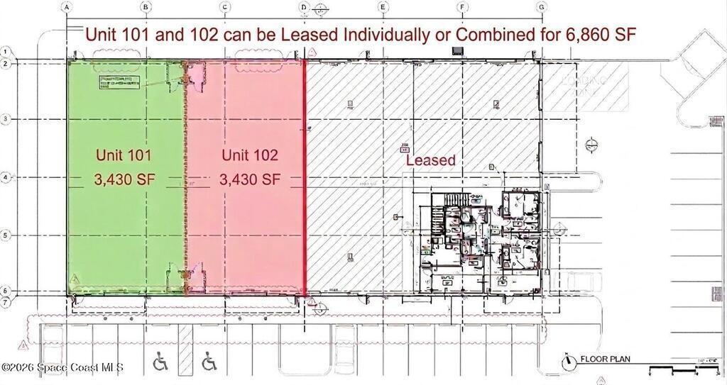 Rare Viera Boulevard frontage! Excellent opportunity to lease Unit 101 (3,430 SF). Construction is currently underway! Estimated delivery is Q4 2026. Interior dimensions will be roughly 43' wide x 80' deep. Unit will be delivered with concrete flooring and plumbing/power stubbed in. Unit will have est. 24' clear height and one 12' wide x 14' tall +/- grade level door. Total of 46 common paved/striped/illuminated parking spaces. Utilities include Cocoa Water, County Sewer, and 3-phase 120/208v 200amp FPL electric. Property is strategically positioned directly on Viera Boulevard which is the primary area connector between US1, Interstate 95, and Stadium Parkway. Surrounding employers include Satcom Direct, Carroll Distributing, Home Depot, and Whole Foods to name a few. Lots of schools, golf/country clubs, shopping and dining nearby. Make this the future home for your business today!