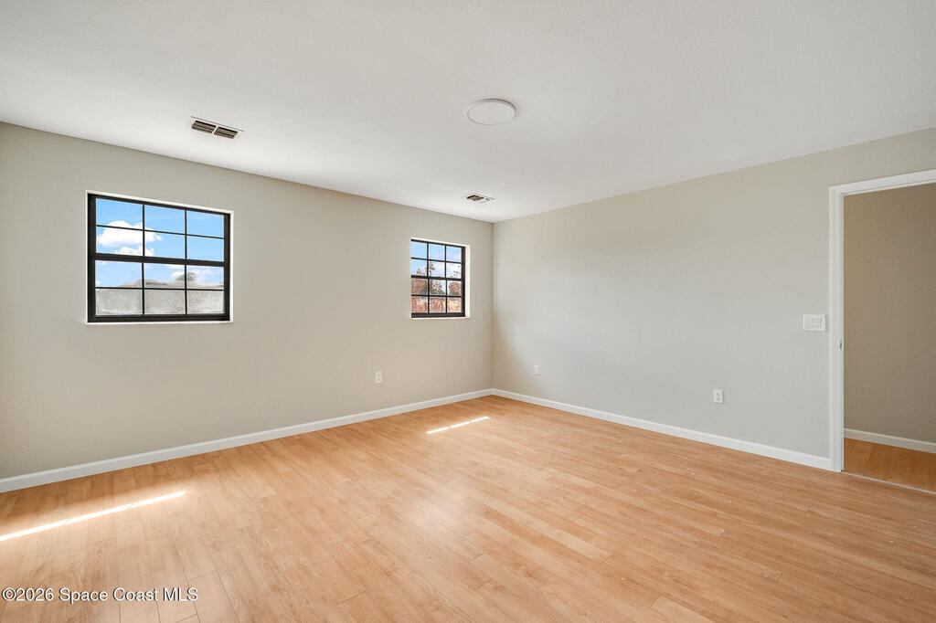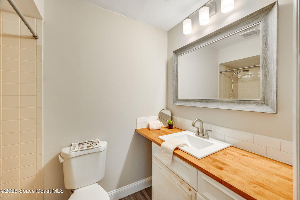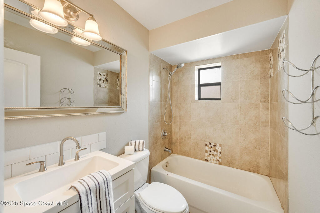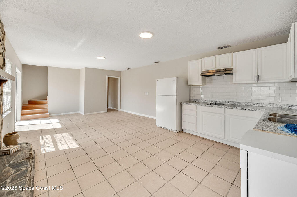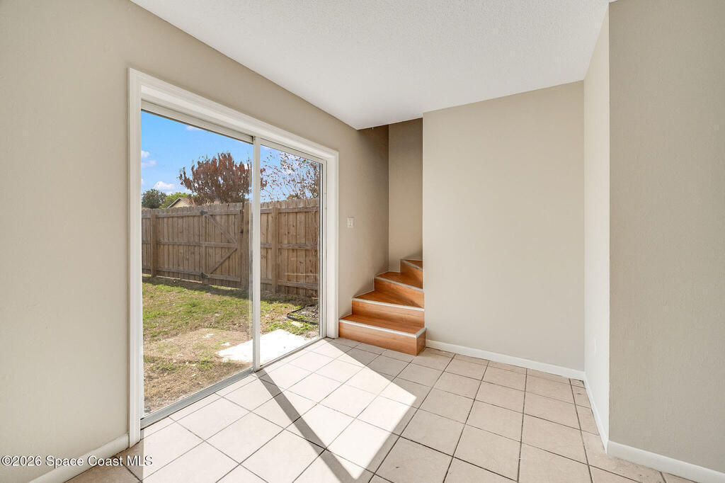 This unique 4-bedroom, 3-bath home offers 2,319 sq ft of flexible living space and a layout full of possibilities. The standout feature is a separate living apartment with its own private entrance and private backyard, ideal for multi-generational living, guests, or a private retreat. A welcoming open front porch adds charm and the perfect spot to relax. The main home features a bright white kitchen with butcher block countertops, an indoor laundry, and sliding doors that open to the outdoors. The apartment offers a spacious living and kitchen area with a cozy fireplace and a large upstairs bedroom, creating a comfortable and private living space. A one-car garage with a newer garage door adds convenience. Updates include roof (2015), HVAC (2014), water heater (2014), and sliding doors (2015). Centrally located in Port St. John with easy access to highways, shopping, dining, and area employers. This is a must-see for yourself!