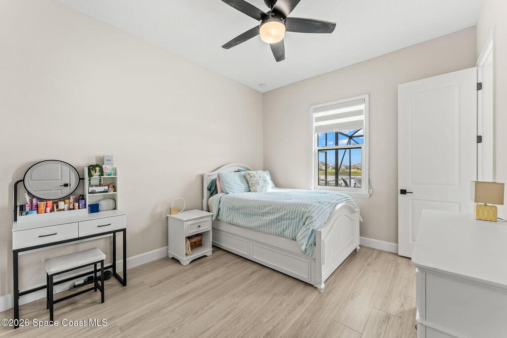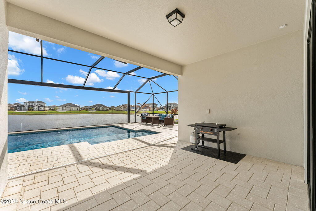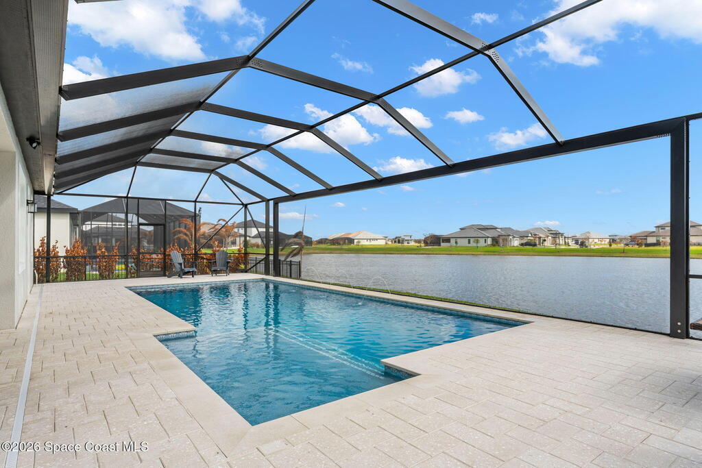Experience refined living in the gated Laurasia community of Viera, a premier golf cart-friendly neighborhood celebrated for its elegance and convenience. This stunning two-story home offers 5 bedrooms, 4.5 baths, and a side-entry 2-car plus golf cart garage. The open-concept design centers around a gourmet kitchen featuring Level 5 cabinetry, quartz countertops, a pot filler, and a reverse osmosis system. Relax or entertain in the panoramic screened pool area, complete with shell lock pavers for slip-resistant style and fully automated Hayward pool controls for effortless enjoyment. The luxurious primary suite includes a spa-like bath with soaking tub and separate shower. Additional upgrades include a tankless natural gas water heater for endless efficiency. Zoned for A-rated Viera Elementary, Middle, and High School, this home blends exceptional craftsmanship with the vibrant Viera lifestyle.