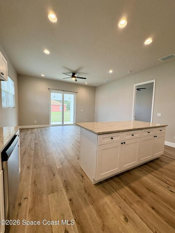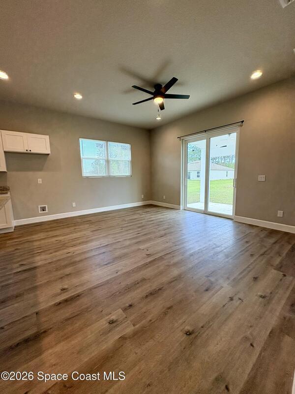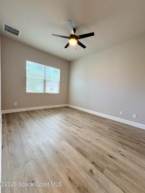 Be the first to live in this stunning brand-new modern home in Palm Bay. Architecturally striking and never lived in, this residence features soaring 10-foot ceilings, abundant natural light, and elegant tile flooring throughout. The stylish kitchen showcases quartz countertops and stainless steel appliances, while the bathrooms feature sleek tiled showers and contemporary finishes. Impact windows add comfort and peace of mind. A rare opportunity to rent a distinctive home with modern design and upscale finishes.
