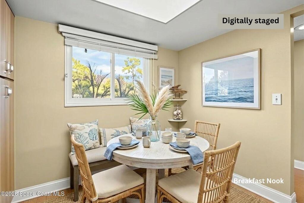 WOW ! Waterfront under 160k Really a light-filled second-floor condo where peaceful river views and Florida wildlife create a truly relaxing setting. From your private balcony, enjoy the sights and sounds of the water, and a variety of coastal birds that gather along the shoreline. The community sits on navigable waterways that lead directly to the Indian River Lagoon, making it a wonderful spot for kayaking, fishing, birdwatching, and soaking in the natural beauty right outside your door. Inside, the condo features a bright, spacious open-concept living area that maximizes the water views. The large living-dining space flows seamlessly to the balcony, creating an airy, inviting environment perfect for relaxing or entertaining. Laminate flooring runs throughout the home, giving the space a clean, cohesive feel while keeping maintenance simple. along with the convenience of an in-unit laundry area. Located on the second floor, this unit is positioned close to both