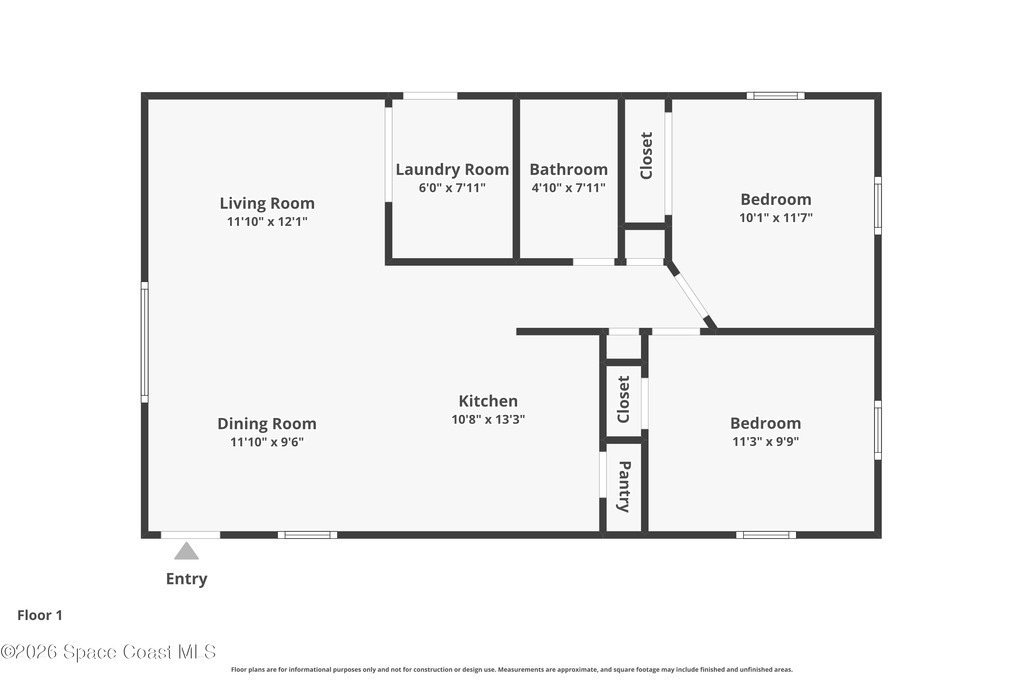 Bathroom 1 , Bedroom 1 , Bedroom 2 , Dining Room , Kitchen , Laundry , Living Room