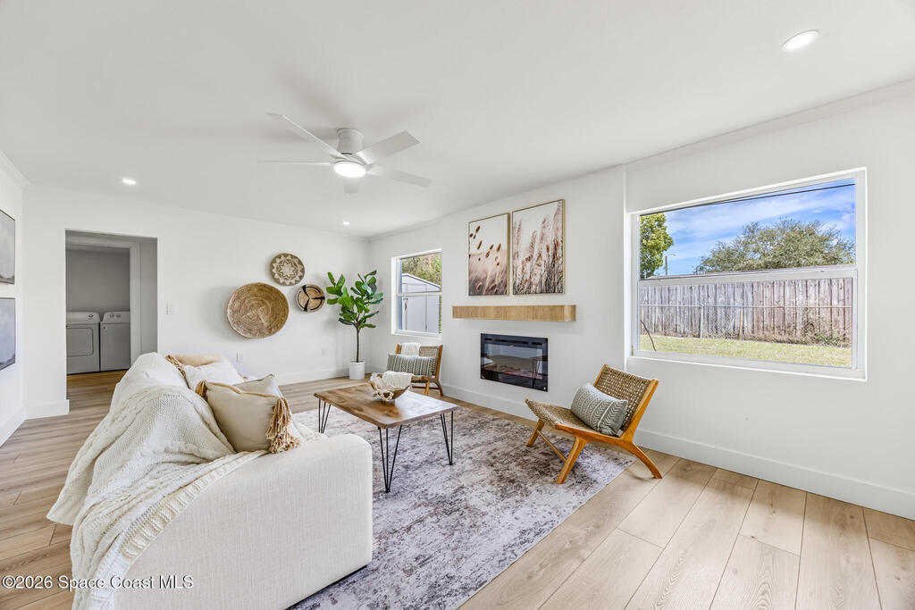 Beautifully remodeled 4-bedroom, 2-bathroom home featuring designer-style finishes and a functional split floor plan. The home offers a modern kitchen, updated bathrooms, spacious indoor laundry room, and a 1-car garage.Enjoy the screened porch overlooking a large backyard, perfect for relaxing or entertaining. Conveniently located near Kennedy Space Center, major employers, shopping, and dining.
