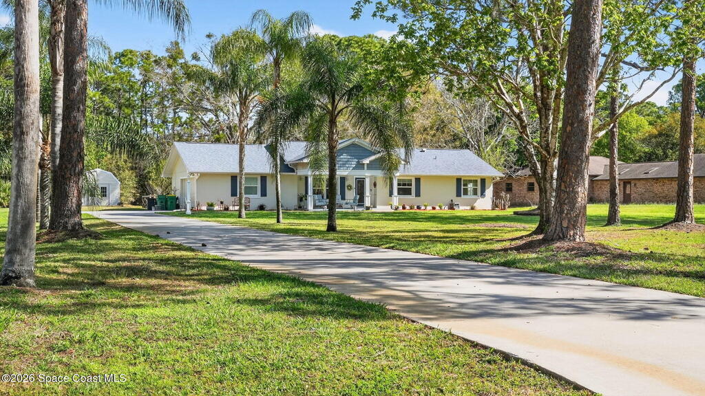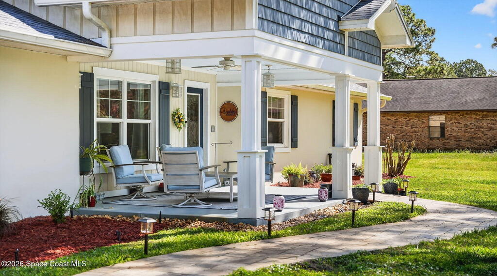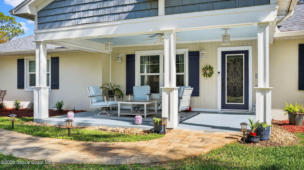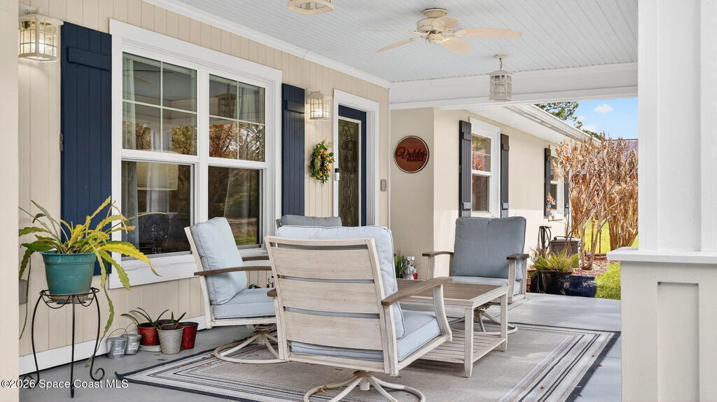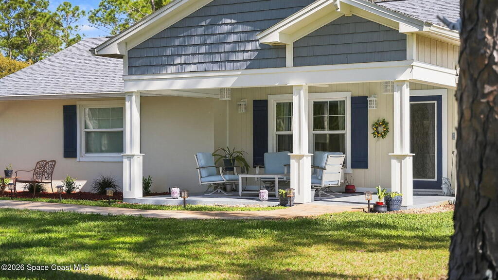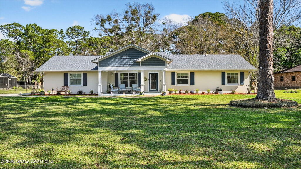 Beautiful Pool Home Situated on 1.17 Shaded Acres in Windover Farms! Open Floor Plan Welcomes You Into the Formal Living Area & Spotlights the Stone Encased Wood Burning Fireplace. Amazing Kitchen w/ Custom Cabinets, Built-Ins, Quartz Countertops, Double Oven, Cooktop, SS Appliances Plus Beverage Fridge. Bright & Beaming All-Seasons Room w/ Floor to Ceiling Windows & Sparkling Pool & Patio Views! Master Suite has Double Sinks, Walk-In Closet & Sliders to the Patio. Two More Spacious Bedrooms & Full Bath! Additional Storage in the Enclosed Laundry Room Plus a Mudroom Entrance. NEW!! Water Heater 2025, HVAC 2024, Roof 2021, Impact Windows & Garage Door in 2023, Newer Overhead Plumbing in 2021! The Property Has a 12x20 Insulated Workshop w/ Electric. The New Covered Front Porch Addition Provides More Enjoyment of the Property! Bring the RV's- 50 amp Hook-Up w/ RV Safe 6in. Poured Concrete Drive. This Home May Have Been Built in 1980's, but Everything Has Been Updated & Maintained!!