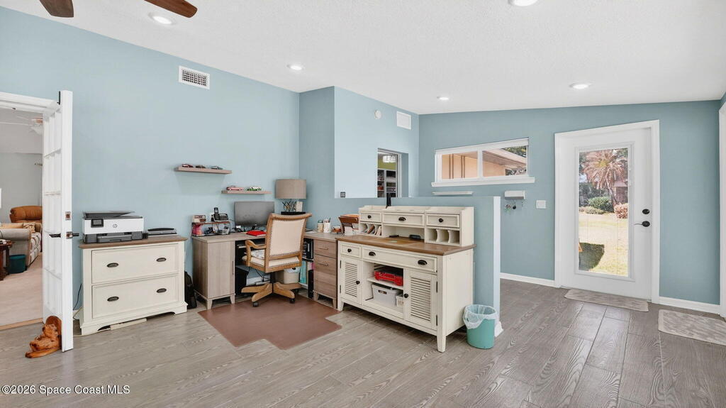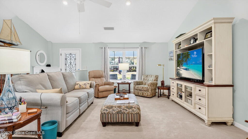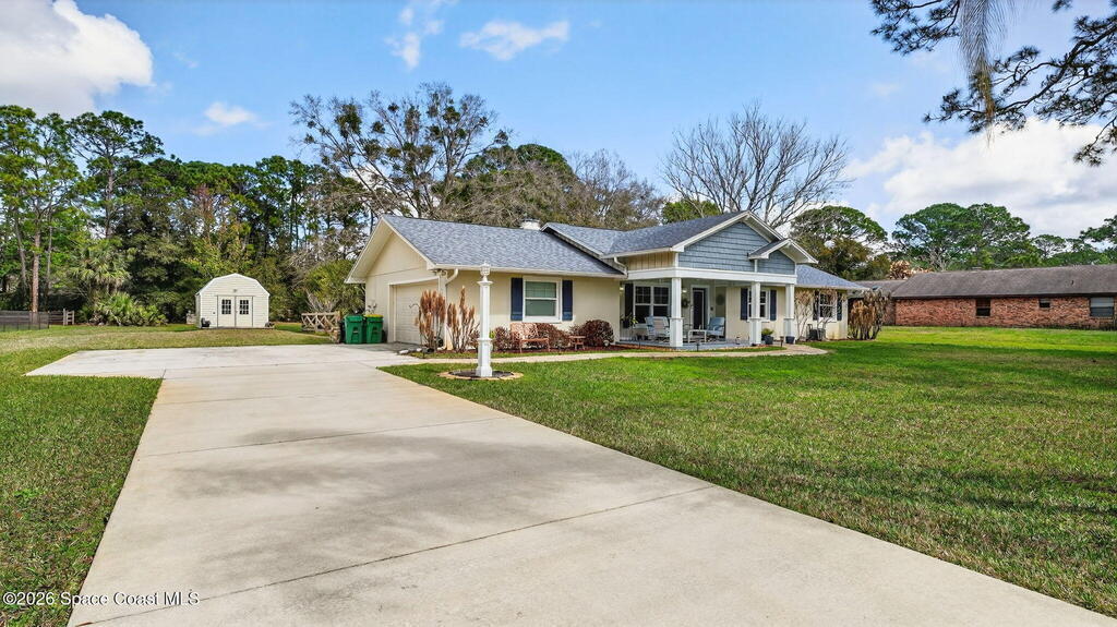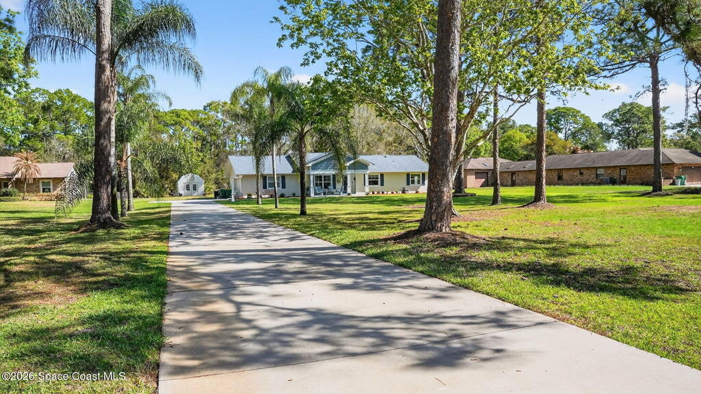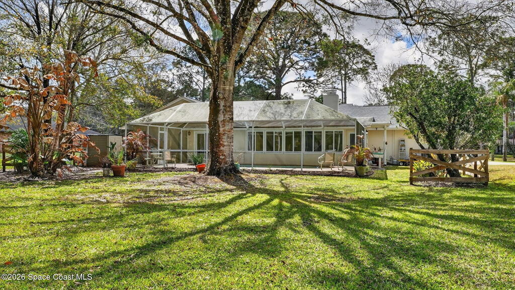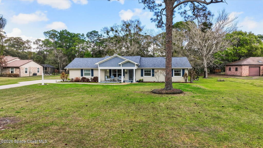 Beautiful Pool Home Situated on 1.17 Shaded Acres in Windover Farms! Open Floor Plan Welcomes You Into the Formal Living Area & Spotlights the Stone Encased Wood Burning Fireplace. Amazing Kitchen w/ Custom Cabinets, Built-Ins, Quartz Countertops, Double Oven, Cooktop, SS Appliances Plus Beverage Fridge. Bright & Beaming All-Seasons Room w/ Floor to Ceiling Windows & Sparkling Pool & Patio Views! Master Suite has Double Sinks, Walk-In Closet & Sliders to the Patio. Two More Spacious Bedrooms & Full Bath! Additional Storage in the Enclosed Laundry Room Plus a Mudroom Entrance. NEW!! Water Heater 2025, HVAC 2024, Roof 2021, Impact Windows & Garage Door in 2023, Newer Overhead Plumbing in 2021! The Property Has a 12x20 Insulated Workshop w/ Electric. The New Covered Front Porch Addition Provides More Enjoyment of the Property! Bring the RV's- 50 amp Hook-Up w/ RV Safe 6in. Poured Concrete Drive. This Home May Have Been Built in 1980's, but Everything Has Been Updated & Maintained!!