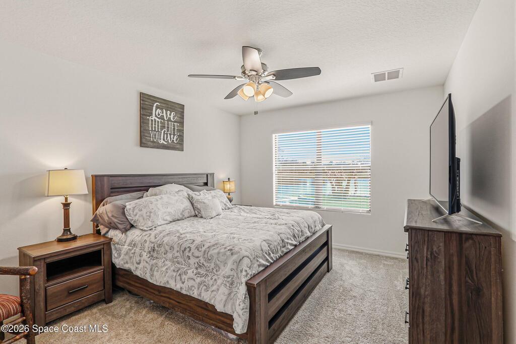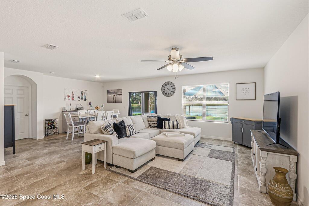 Flex $ available for qualified buyers. 4b/2b move-in ready home in Palm Bay w/peaceful backyard water view of St John River Preserve & a layout that just feels easy to live in. Walk in and everything connects--the kitchen sits at the center w/island seating overlooking the main living space, so whether it's a quiet night or a full house, it all works. Out back, the screened lanai and patio open to the water, giving you a place to slow down at the start or end of the day. The owner's suite is privately set w/water views & step-in shower, while 2 bedrooms at the front share a full bath and a flexible 4th room adapts to whatever you need next. Full laundry, pantry, 2-car garage & nearby pool/playground add everyday ease, w/shopping and I-95 just minutes away.--come walk it in person and see how it feels. Be sure to schedule your private showing today.
