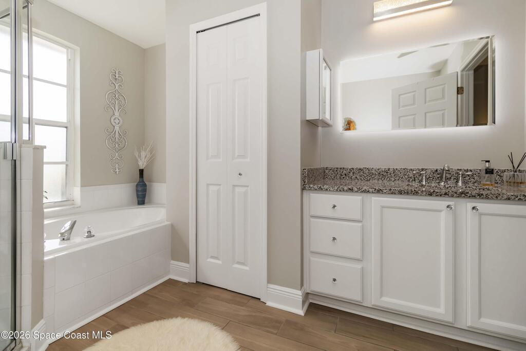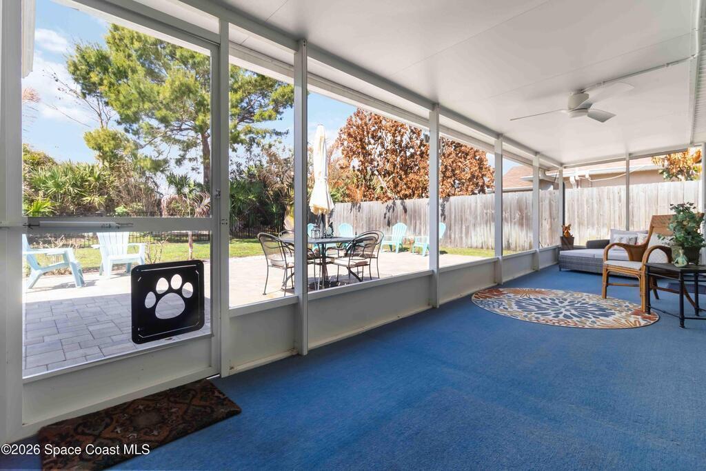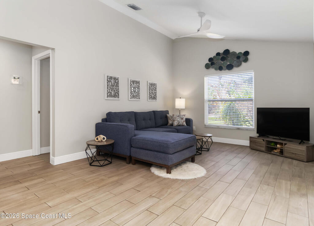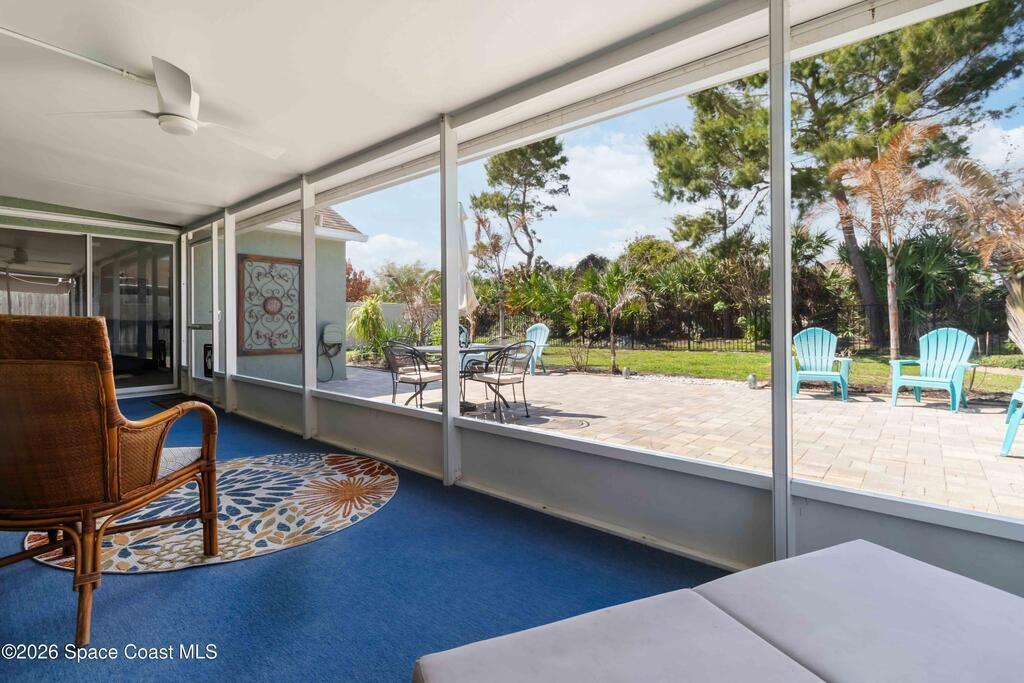 Nature preserve views and a dog-friendly fenced backyard just 6 miles to the beaches of the Space Coast. Beautiful 3 bedroom, 2 bath, 2-car garage home in sought-after Springs of Suntree backing to a peaceful preserve. Spacious floor plan features formal dining and sitting rooms, large living room, and kitchen dinette with built-in cabinets and wine fridge. Granite countertops in kitchen and bathrooms. High end Washer & Dryer. Sliders from the living room and primary suite open to a screened porch and brick paver patio, perfect for outdoor entertaining. The primary suite includes a walk-in closet, garden tub, walk-in shower, and linen closet. Enjoy private backyard living with a fully fenced yard and iron rear fence overlooking the preserve. Community amenities include pools, fitness center, and pickleball courts. Convenient to Whole Foods Market, Trader Joe's, Costco, shopping, dining, pet services, and I-95. 45 mins to Orlando Int'l Airport and 1 hour to ''world famous'' Theme Parks