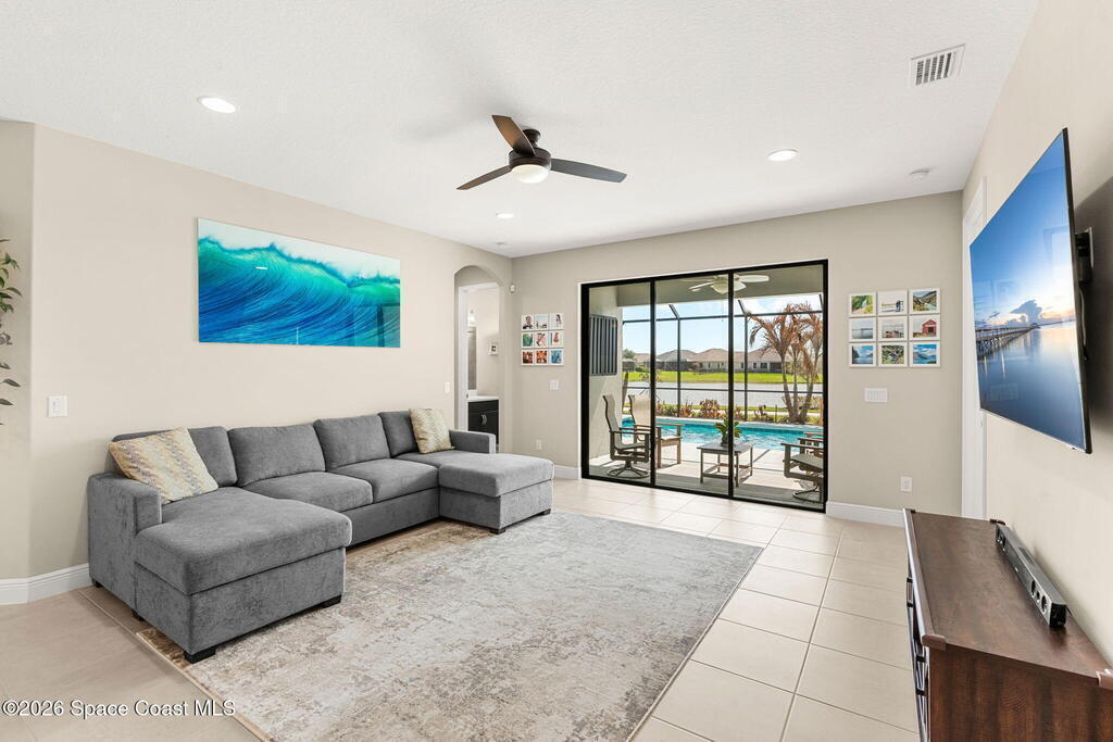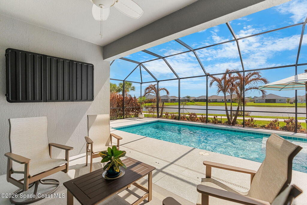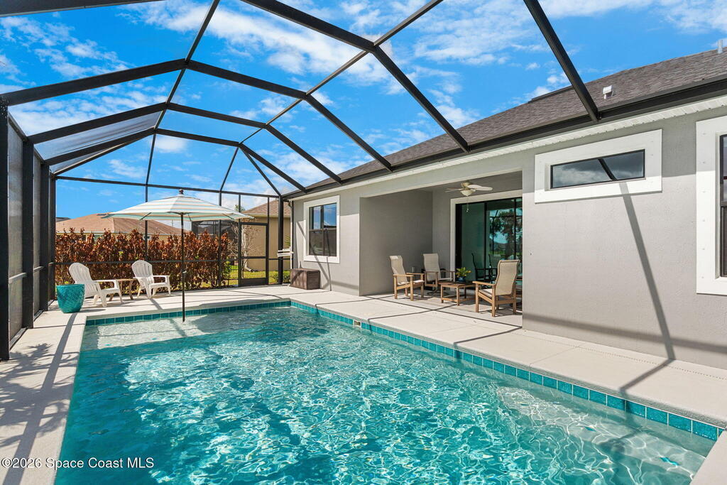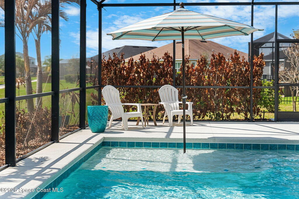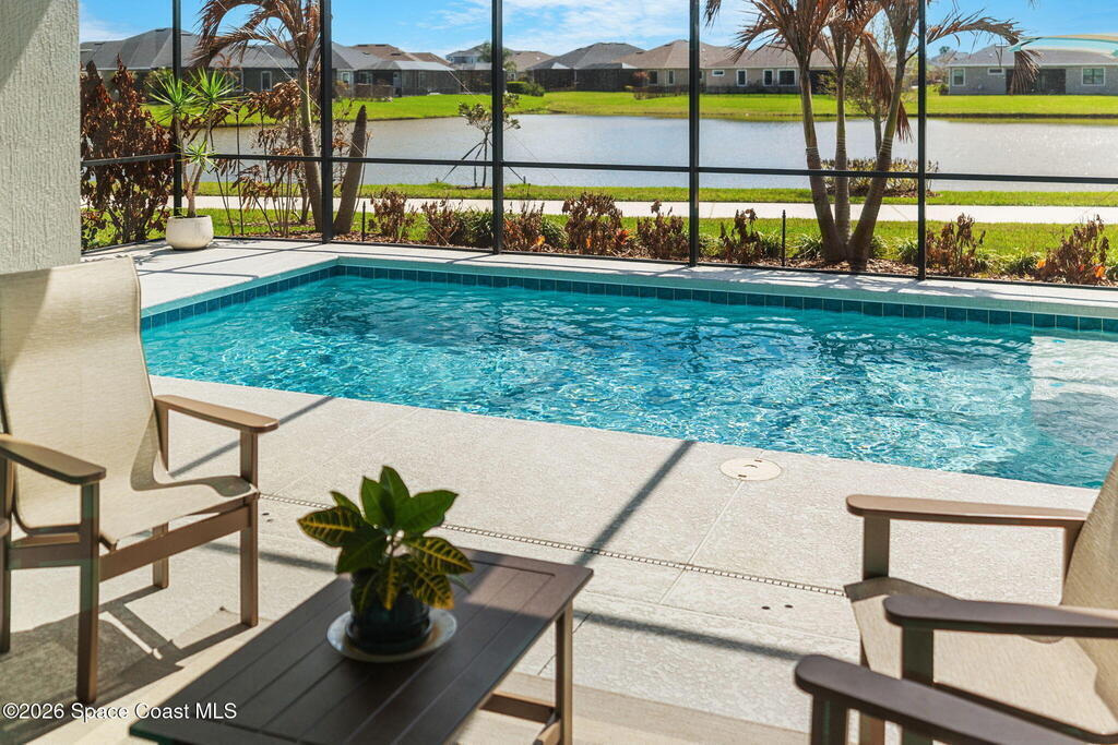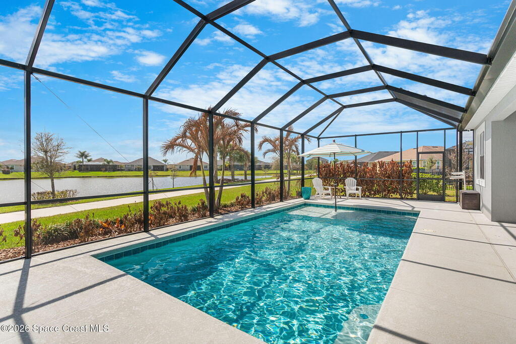 Exceptional 4BR/3BA + OFFICE home in the highly desirable Addison Village area of Viera. Thoughtfully designed with an open floor plan, this home offers both spacious living and effortless flow for entertaining. A rare second primary suite provides flexibility for guests or multi-generational living. Step outside to your private backyard retreat featuring a screened heated saltwater pool, perfect for enjoying Florida living year-round. Positioned on one of the best lots in the neighborhood, the property offers a standout waterfront view and an ideal lot layout that creates both privacy and openness. This home also features a water softener, reverse RO system, garage storage, 220V golf cart charging, and is pre-wired for home theater and security systems. Located close to top-rated schools, shopping, dining, and the incredible amenities Viera is known for, this home combines comfort, location, and lifestyle in one beautiful package.