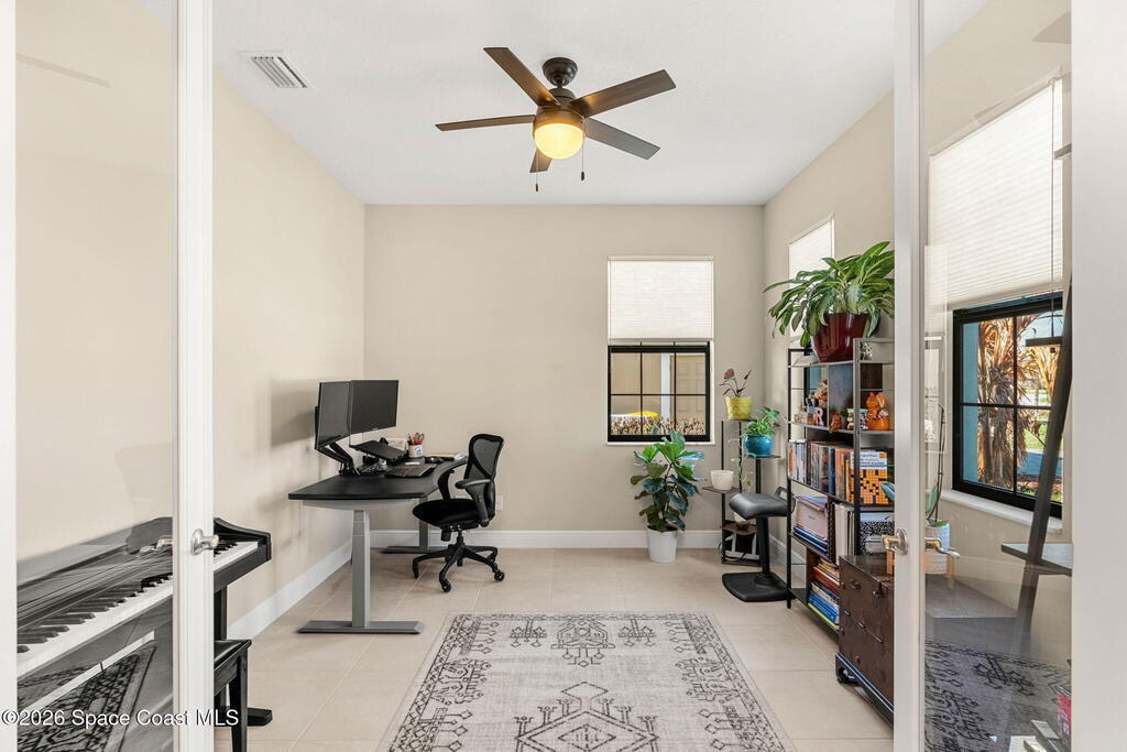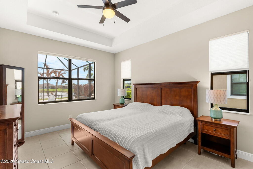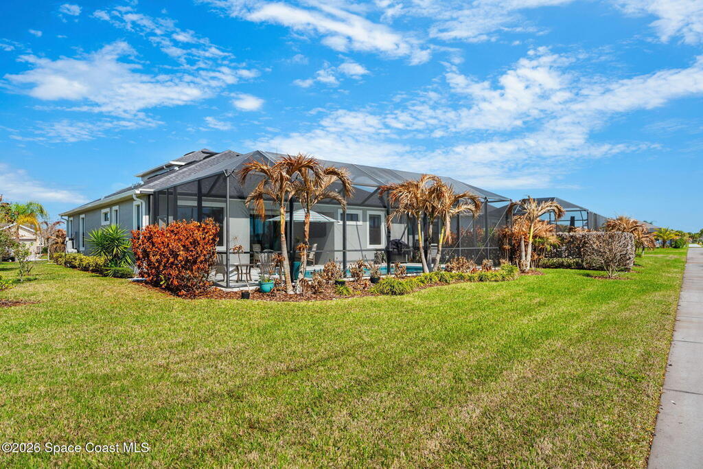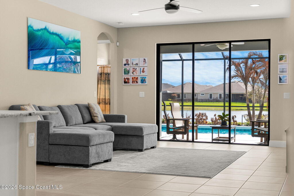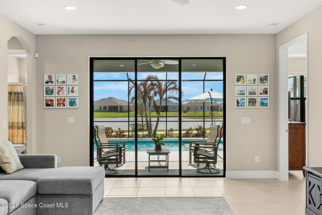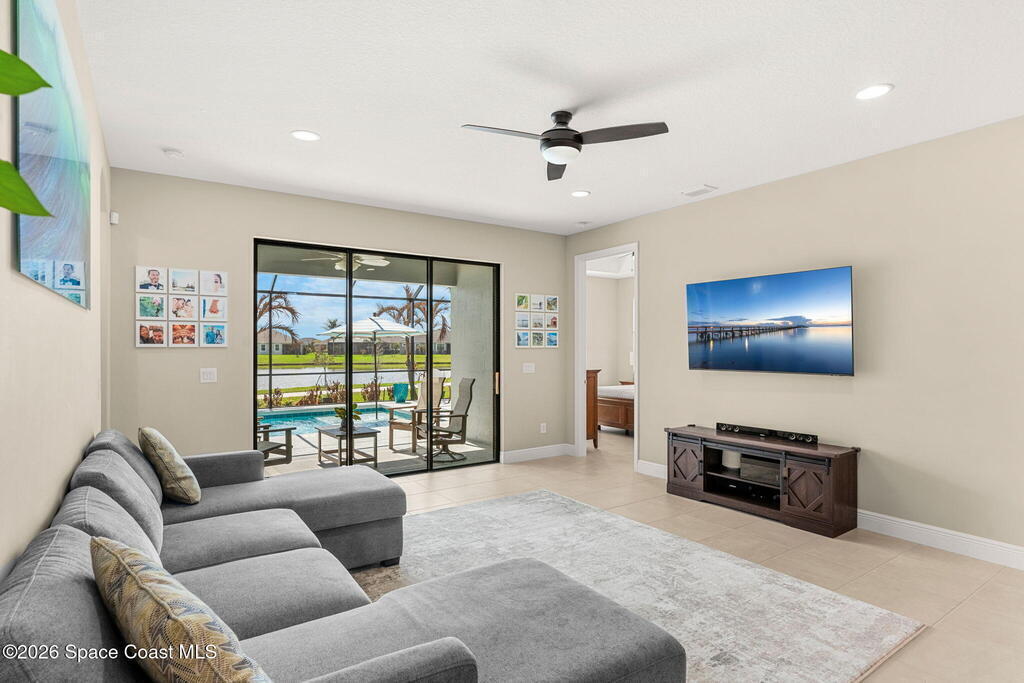 Exceptional 4BR/3BA + OFFICE home in the highly desirable Addison Village area of Viera. Thoughtfully designed with an open floor plan, this home offers both spacious living and effortless flow for entertaining. A rare second primary suite provides flexibility for guests or multi-generational living. Step outside to your private backyard retreat featuring a screened heated saltwater pool, perfect for enjoying Florida living year-round. Positioned on one of the best lots in the neighborhood, the property offers a standout waterfront view and an ideal lot layout that creates both privacy and openness. This home also features a water softener, reverse RO system, garage storage, 220V golf cart charging, and is pre-wired for home theater and security systems. Located close to top-rated schools, shopping, dining, and the incredible amenities Viera is known for, this home combines comfort, location, and lifestyle in one beautiful package.
