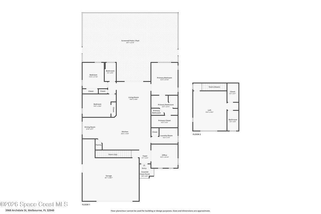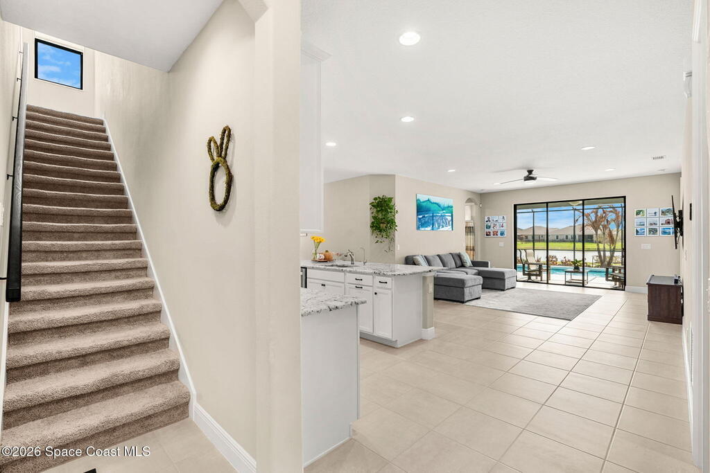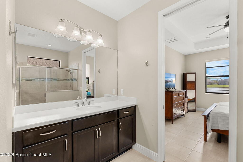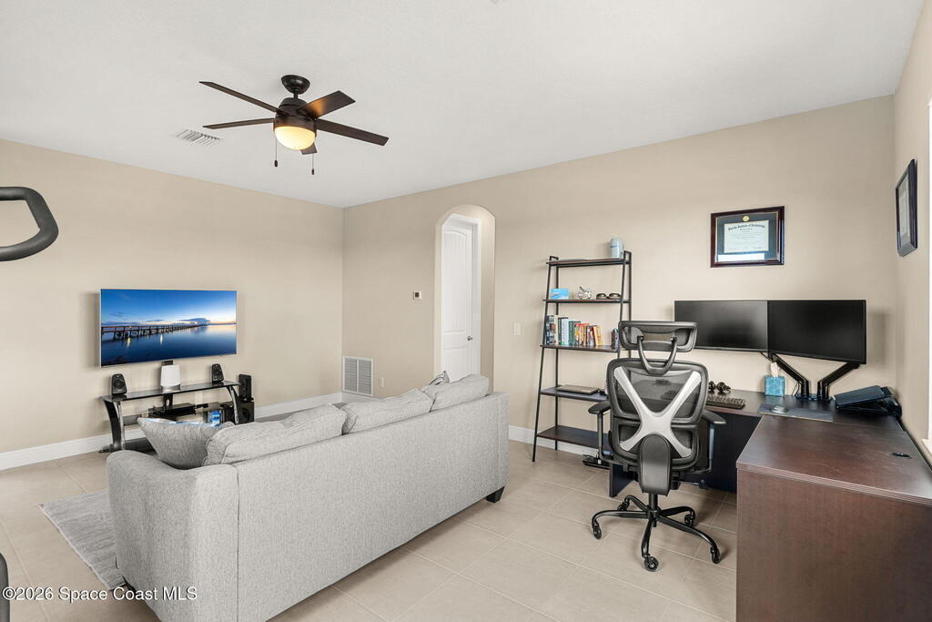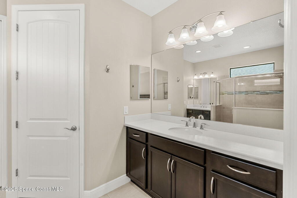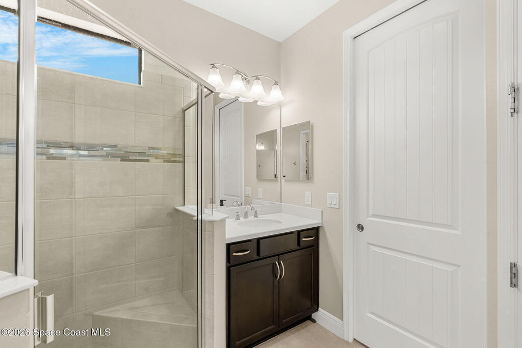 Exceptional 4BR/3BA + OFFICE home in the highly desirable Addison Village area of Viera. Thoughtfully designed with an open floor plan, this home offers both spacious living and effortless flow for entertaining. A rare second primary suite provides flexibility for guests or multi-generational living. Step outside to your private backyard retreat featuring a screened heated saltwater pool, perfect for enjoying Florida living year-round. Positioned on one of the best lots in the neighborhood, the property offers a standout waterfront view and an ideal lot layout that creates both privacy and openness. This home also features a water softener, reverse RO system, garage storage, 220V golf cart charging, and is pre-wired for home theater and security systems. Located close to top-rated schools, shopping, dining, and the incredible amenities Viera is known for, this home combines comfort, location, and lifestyle in one beautiful package.