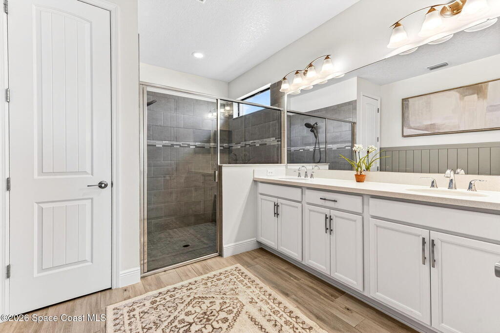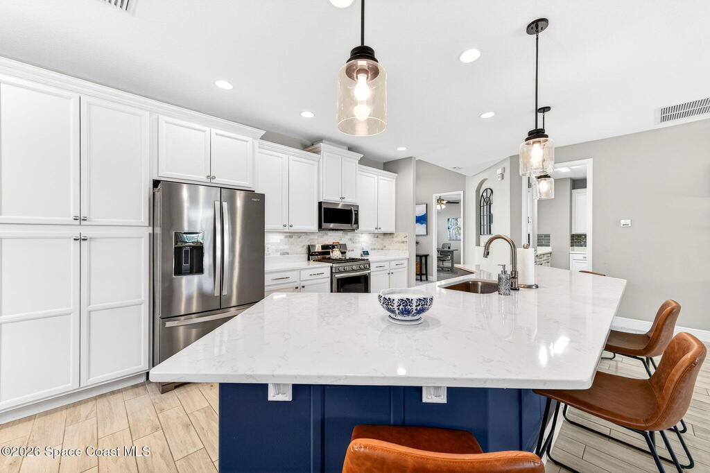 PRACTICAL ELEGANCE - this home is both Stunning and Livable, a Sophisticated Balance of High-End Aesthetics with Functional, Everyday Use. Tailored for the luxury-seeking homeowner who prioritizes warmth & comfort. Enjoy a curated open floor plan featuring 10' ceilings, abundant natural light and a seamless flow designed for family living. The Gourmet Kitchen is a culinary retreat with quartz countertops, white shaker cabinets, upgraded gas stove, wine cabinet, spacious cafe eating area & an expansive island which serves as the heart of home entertaining. Triple Sliding Doors in the Family Room bring indoor comfort and outdoor living together. Features include a Home Management Center, Hurricane Protection, Paver Driveway, Oversized Garage w/ bump-out, Huge Laundry room w/workspace & storage, Premium Corner Lot & more. Relax in the Extended, Screened in Patio and let the Kids & Pets romp in the Fully Fenced-In Yard. HOA-managed landscaping allows for easy, low maintenance living.