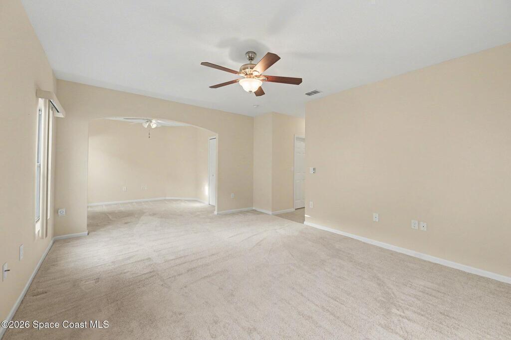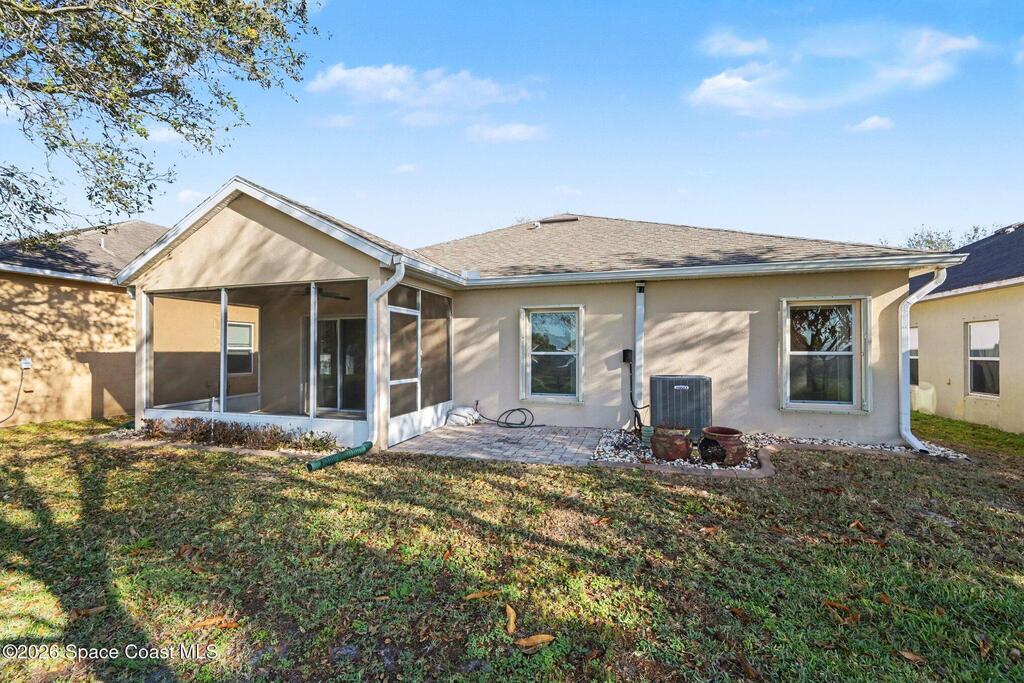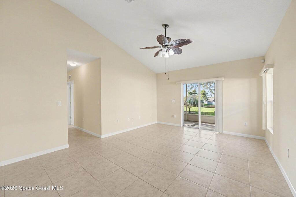 This immaculately kept home is move-in ready in beautiful Titusville! Home features an open floor plan with vaulted ceilings, 3 spacious bedrooms with a versatile sitting room, perfect for a home office, nursery, or reading nook adjoining the primary suite.The primary bathroom includes double sinks and a beautifully remodeled walk-in shower. Neutral tile flooring flows throughout the main living areas with cozy carpet in the bedrooms, all finished in tasteful, matching neutral tones.The bright, open kitchen overlooks the family room and offers stainless steel appliances, granite countertops, a breakfast bar, and a large pantry. From the family room, step out to a trussed, screened porch with peaceful views of the retention/preservation area with no backyard neighbors! Newer AC and many upgrades are waiting for you to make this your new home!