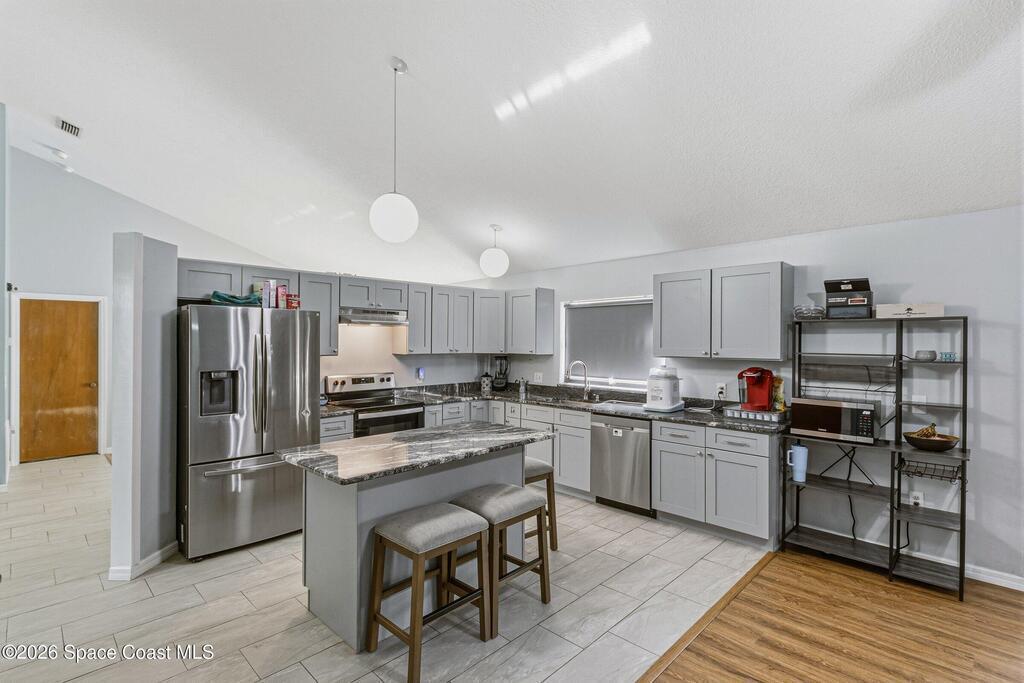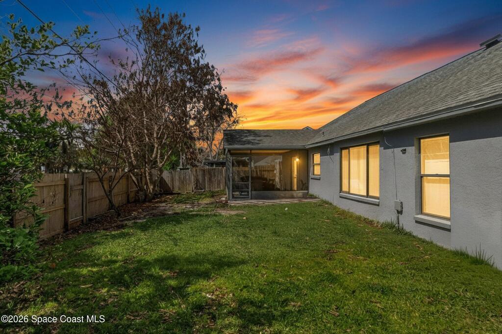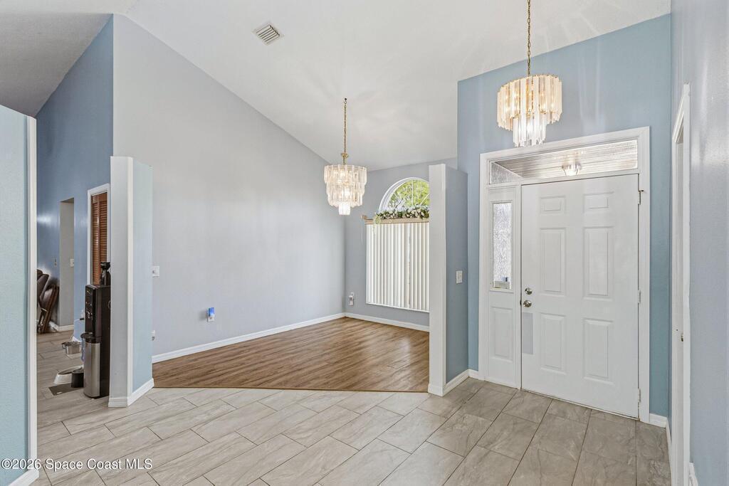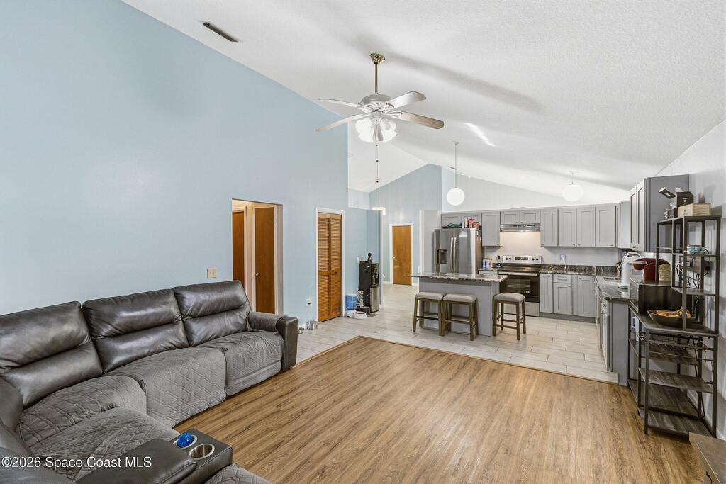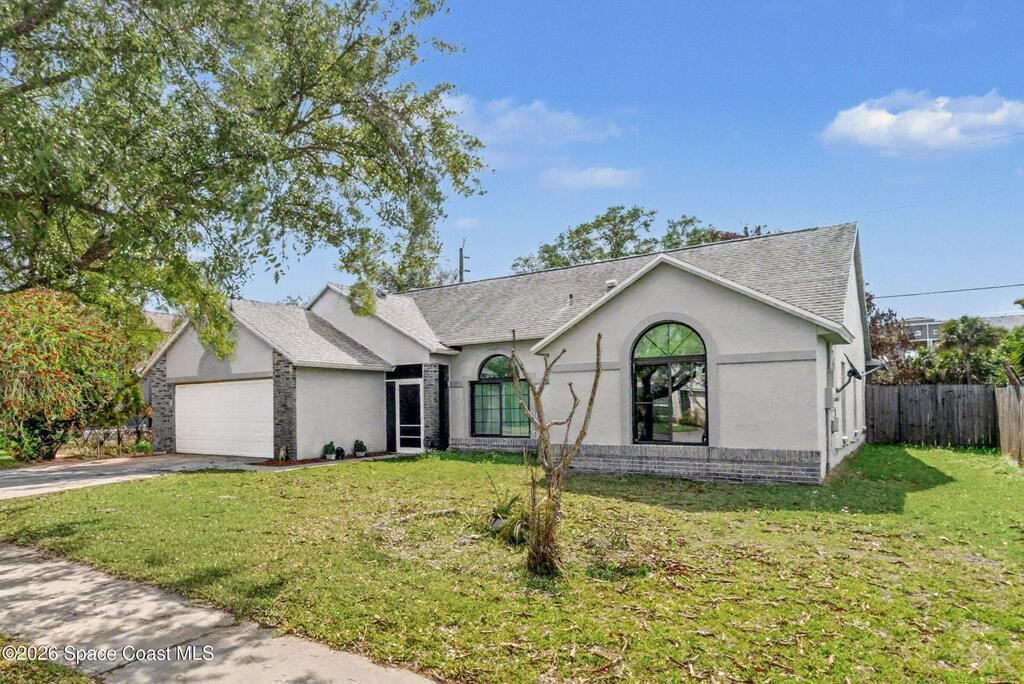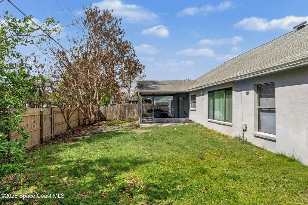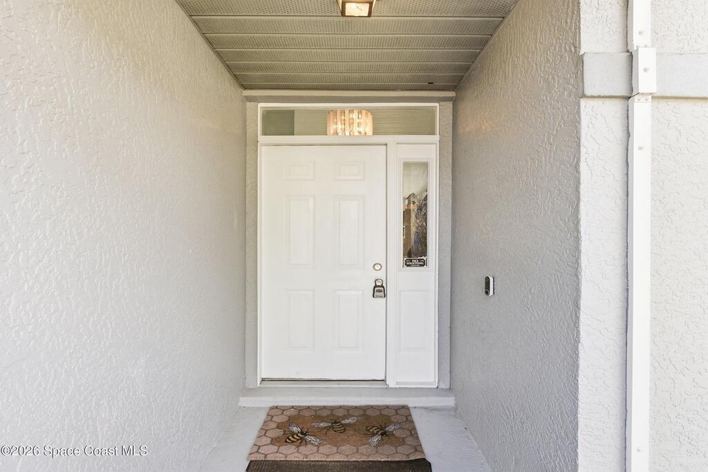Welcome to this beautifully updated 1,700 sq. ft. home with an open floor plan and generous living spaces. Conveniently located just 15 minutes from historic Cocoa Village, 20 minutes from the beaches, and 45 minutes from Orlando's International Drive. This home has been thoughtfully improved with a 2019 roof, 2023 A/C, and 2024 water heater. The kitchen was fully updated in 2024 with new cabinets, appliances, and a stylish center island. New flooring enhances the foyer, kitchen, bathroom, and living room, while newer window treatments add a polished touch to the kitchen and living area. The guest bath was upgraded in 2024 with new cabinetry and countertops. The primary bath includes updated plumbing, an updated shower, a new bidet, double sinks, and a relaxing garden tub. Additional features include a new water softener system, new back porch screening, and a doorbell camera. Step outside to a backyard filled with fruit trees and plants, including loquat, mango, mandarin, lemon,