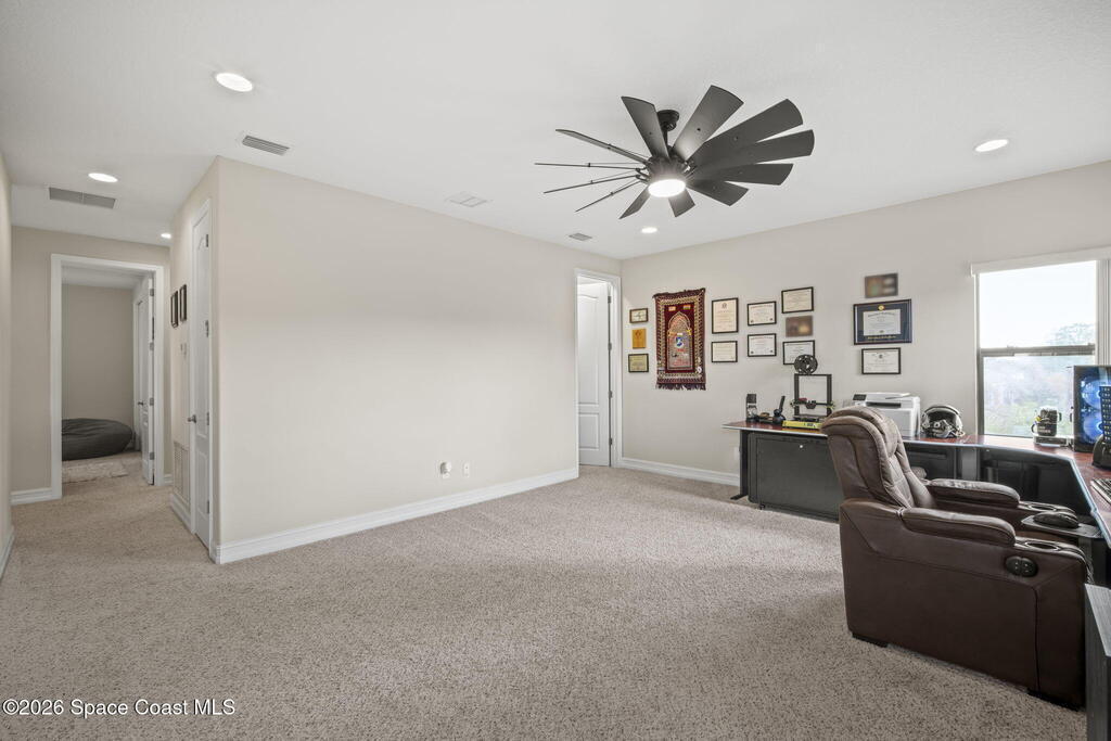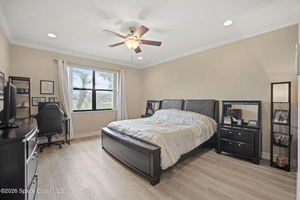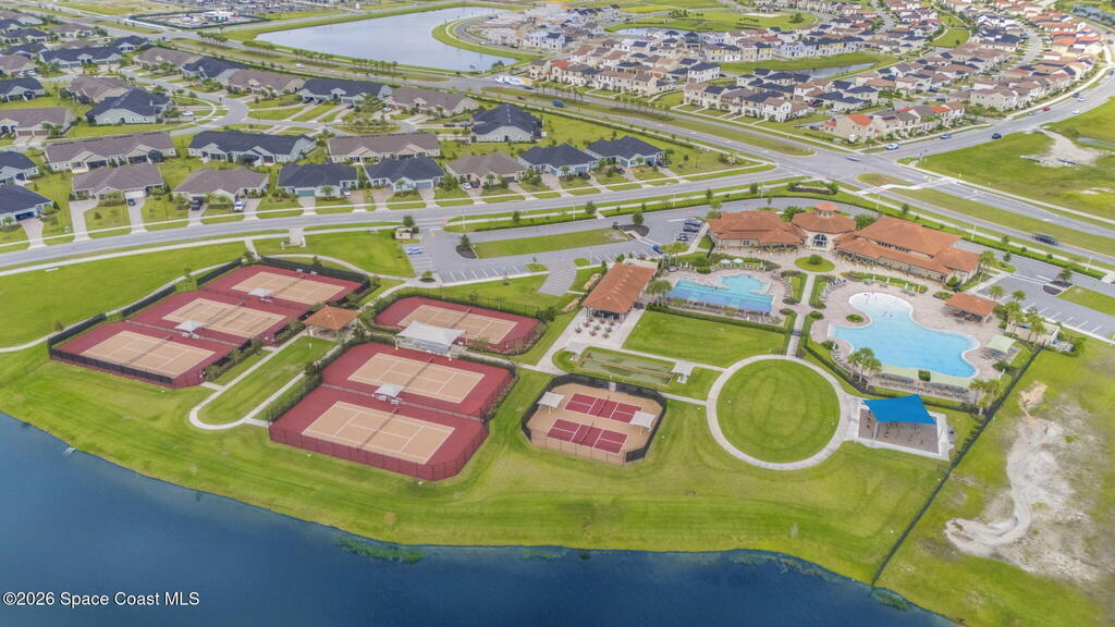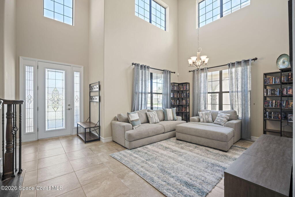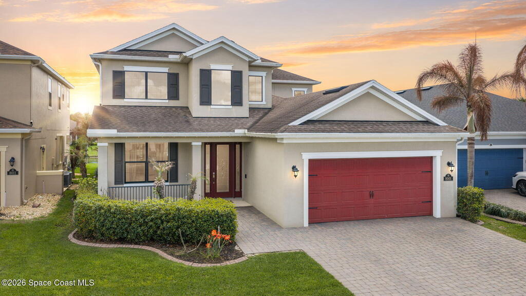 Welcome to this stunning two-story lakefront home in the highly desirable Strom Park community of Viera. Offering over 3,100 SQFT of living space under air, this beautiful lakefront residence features 4 spacious bedrooms and 3.5 bathrooms, designed with both comfort and elegance in mind. Both Master and guest suite are on the first floor! The gourmet kitchen is perfect for entertaining, with generous counter space, stainless steel appliances with gas stove, and an open layout that flows seamlessly into the living areas. Step outside to your extended covered, screened-in porch and enjoy peaceful lake views, ideal for morning coffee or relaxing evenings. Located just minutes from The Avenues in Viera, Costco, popular dining, local dog parks, shopping, schools, and hospital, this home combines luxury living with convenience. Most locations are all golf cart accessible! Also, there are impact rated windows at the front of the home and 2nd floor! Roof, AC, and water heater are 9yrs old.
