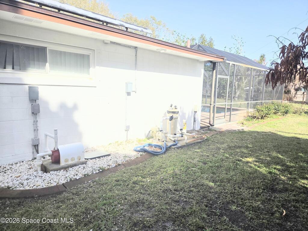 Endless amounts of storage in this energy efficient 3 bedroom 2 bath completely renovated pool home in Villa De Palmas subdivision.Featuring solar panels already paid over 35k to have less than $50 electric bill. Extra large laundry room with storage cabinets.His and Hers walk in closets with Cedar.Enormous brick paver driveway.. Wind resistant windows. New roof, recently replaced HVAC in 2022.Recently replaced pool enclosure screen. Water filter system, security system. New garage door in 2022.Handicap accessible bathrooms.Largest yard in neighborhood. Large shade trees,Very relaxed HOA only $100 yearly for entrance way and sidewalks. Conveniently located near shopping, the brand new hospital, KSC, Blue Origin, Spacex, Port Canaveral cruise terminal. SFB, Melbourne, the beaches, river.. 1 hour to Orlando International Airport and 30 minutes to Melbourne Airport. 1 hour Orlando attractions.