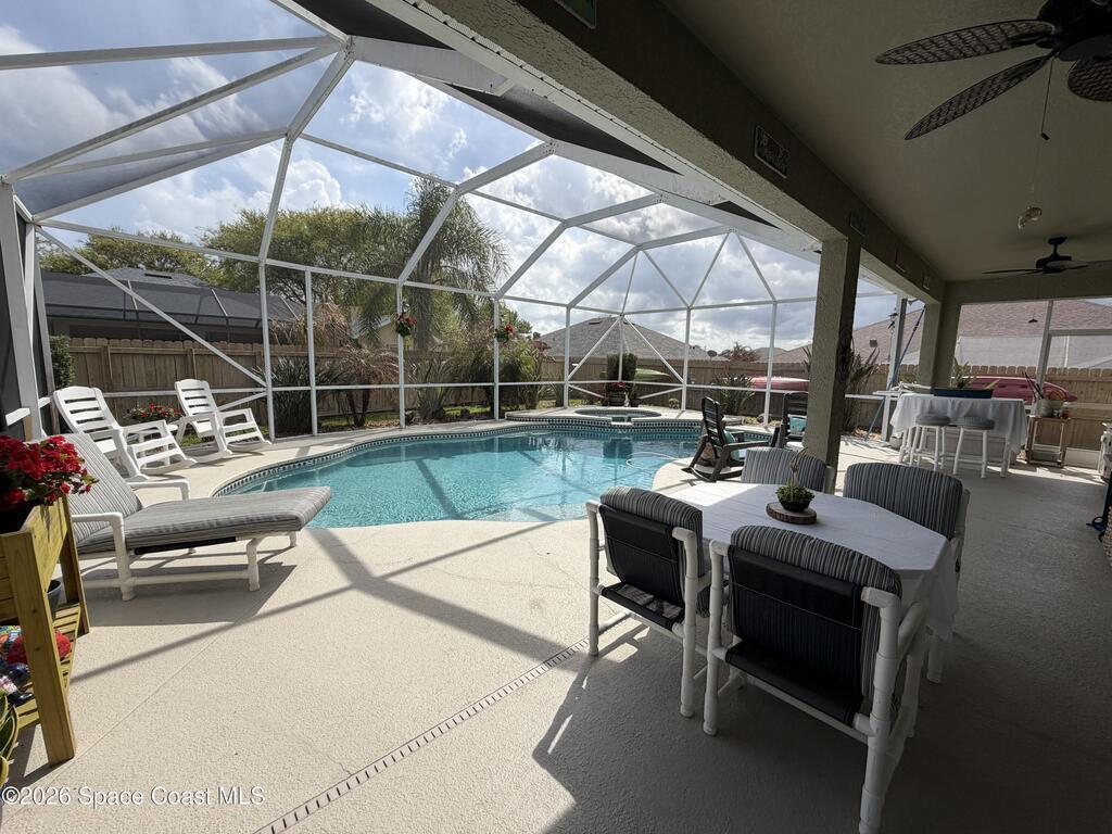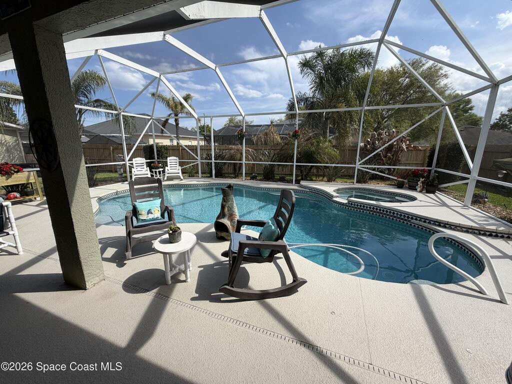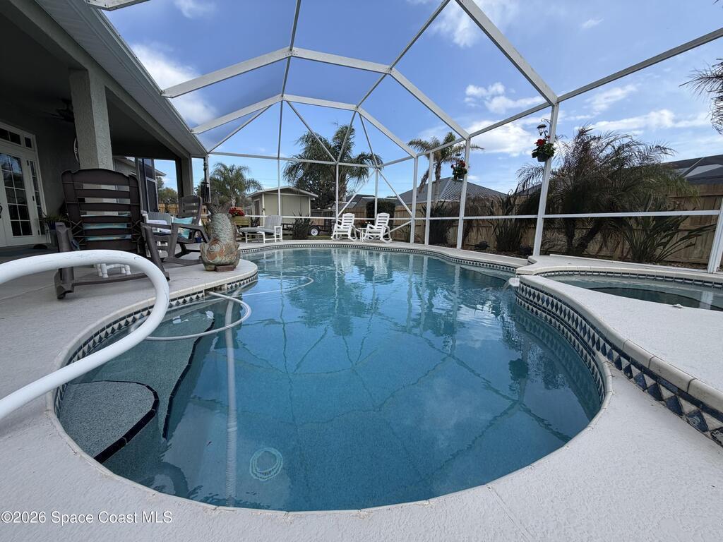 Solid CBC w STEEL STUDS! Gorgeous very well kept 4/2 in desirable Laurel Run. Split and open floor plan with French doors from the family room and primary suite to the sparkling pool and spa, resurfaced, with a fully screened enclosure with guest bath access. 9' ceilings. 14x15 paver patio out back for a fire pit or additional entertainment space. NEW pool heater and pump Fall of 2025. Real hardwood floors throughout main living area, carpet in bedrooms and tile in baths and interior laundry/utility room. Nicely appointed with updated kitchen and baths. Double pane windows throughout. Roof May 2021, HVAC Dec. 2022, Water heater 2020, New irrigation well 2019, Beautifully landscaped with low maintenance plants and river rocked beds. Fenced back yard with double reinforced gates on both sides with plenty of room for smaller RVs, boats, kayaks and toys. High and dry lot. 10x12 stud built and shingle roofed shed to match home. Additional features list available.