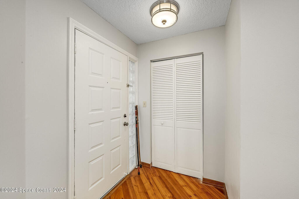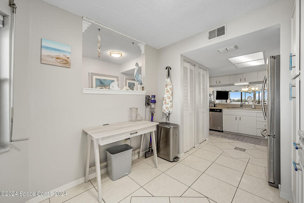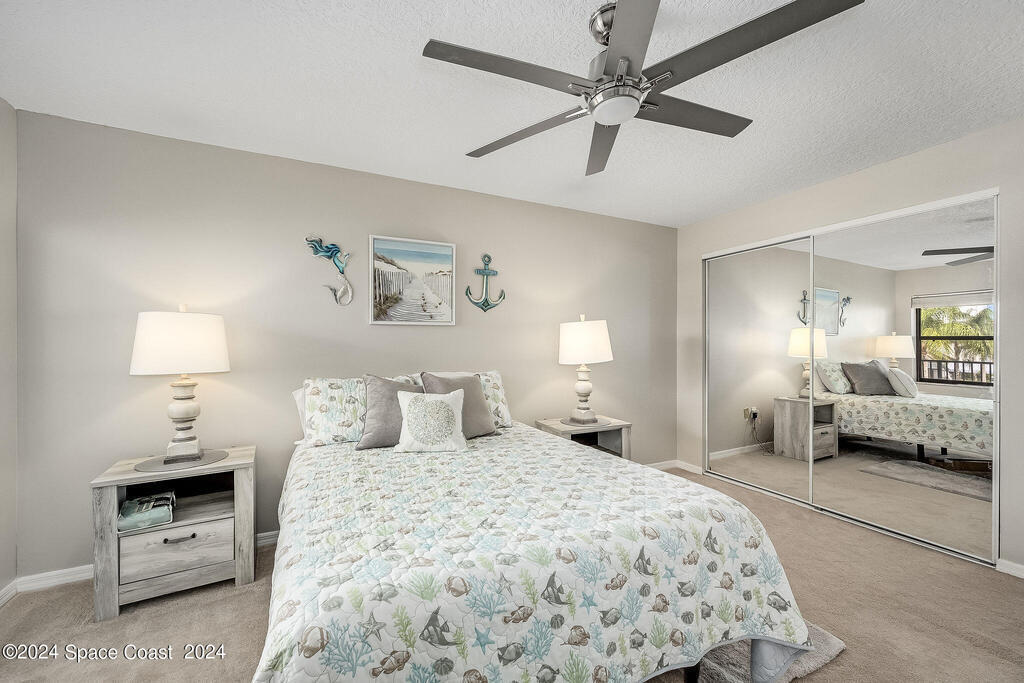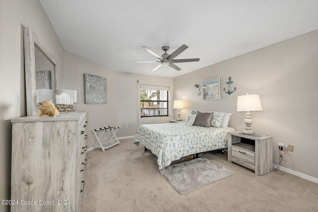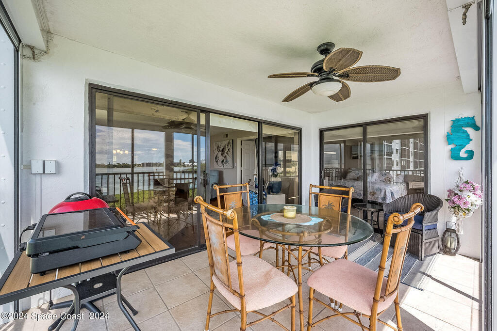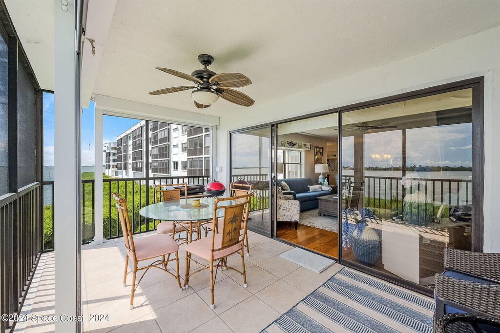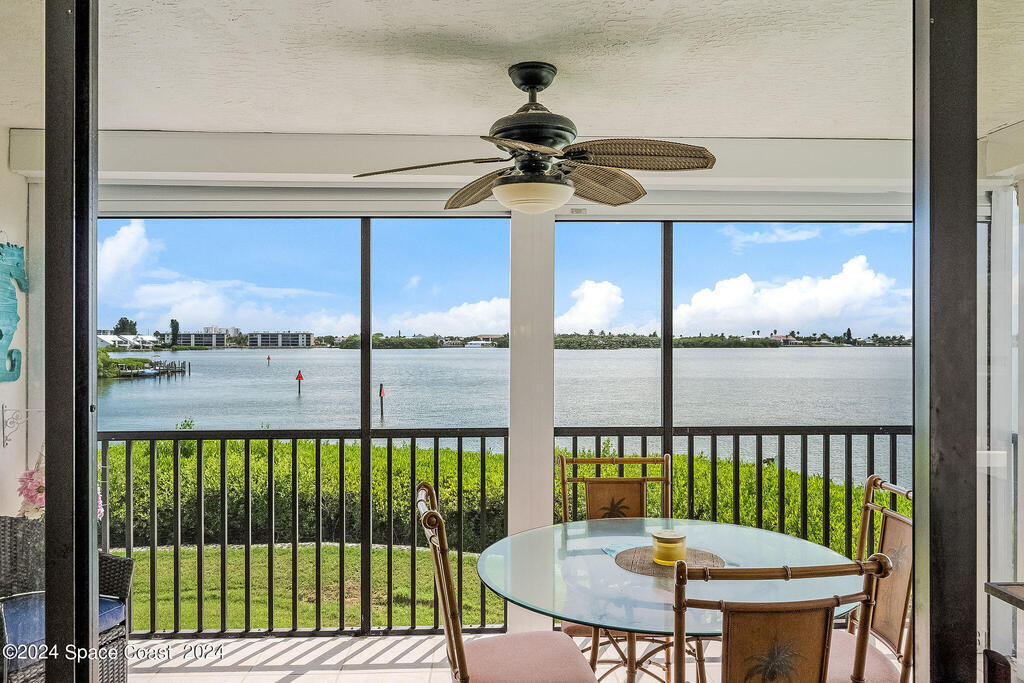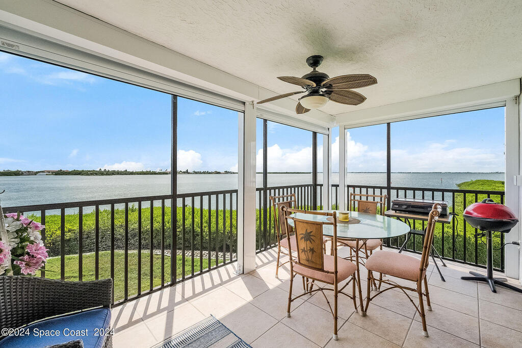 Experience Florida living at its finest in this beautiful end-unit condo with breathtaking views of the Banana River in a coveted waterfront community of Rock Pointe. Watch the Cocoa Beach Christmas Boat Parade from your very own porch, which cantilevers out for completely unobstructed views. Inside, you'll find laminate flooring throughout the living areas, crisp neutral kitchen cabinets, and newer appliances for a modern touch in the kitchen. The owner's suite features a spacious walk-in closet, dual sinks, a standing shower, and a garden tub, perfect for relaxing while enjoying waterfront views. Wake up to serene river views and step out onto the porch via private sliding door access. The revamped laundry room adds extra convenience. Owners just added brand new Hurricane shutters for peace of mind. Don't miss this slice of paradise with unbeatable water views!