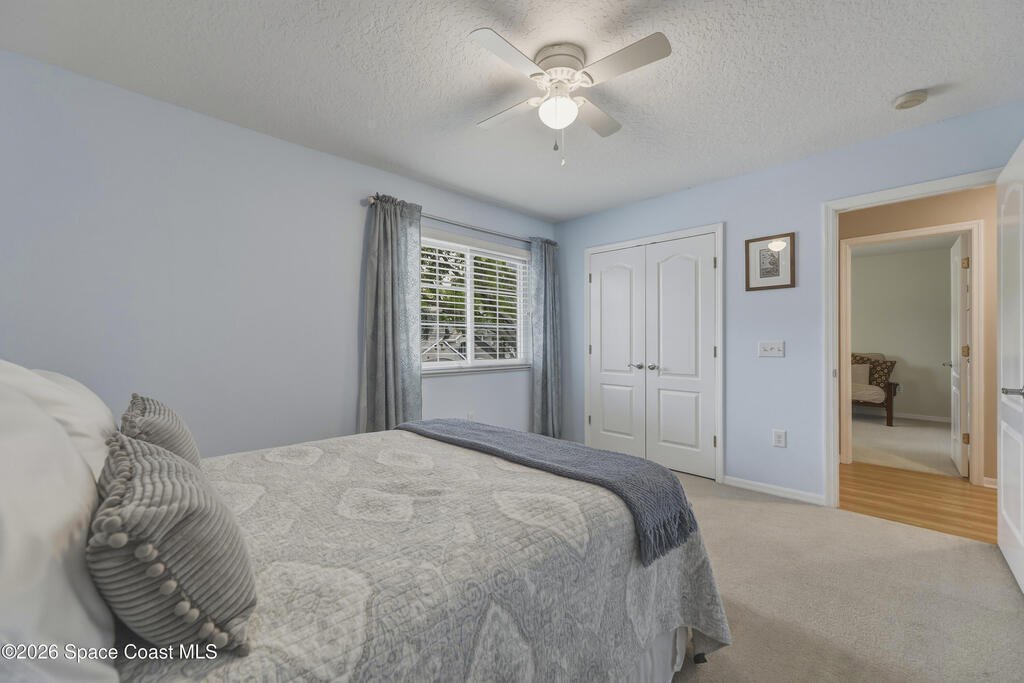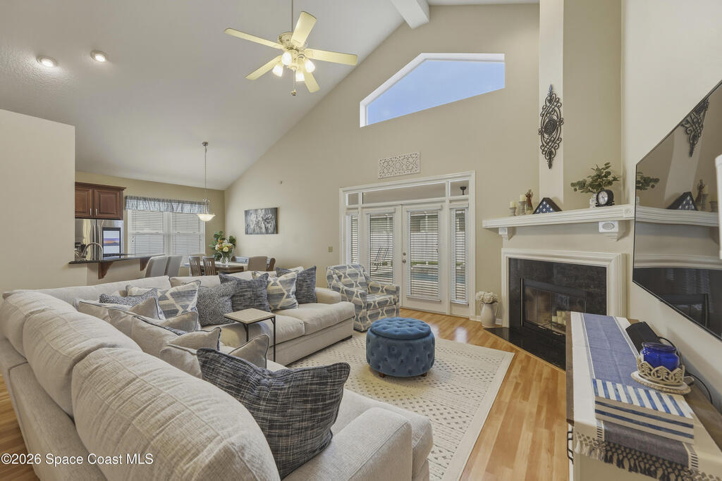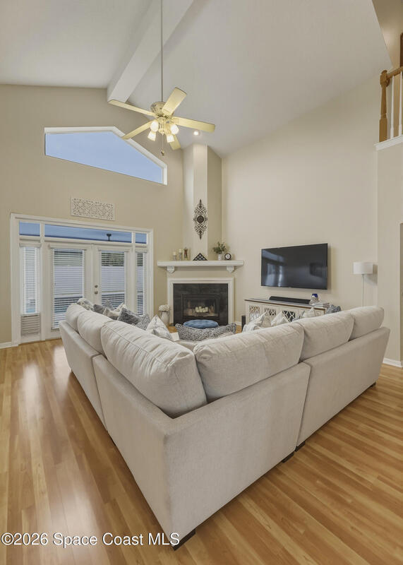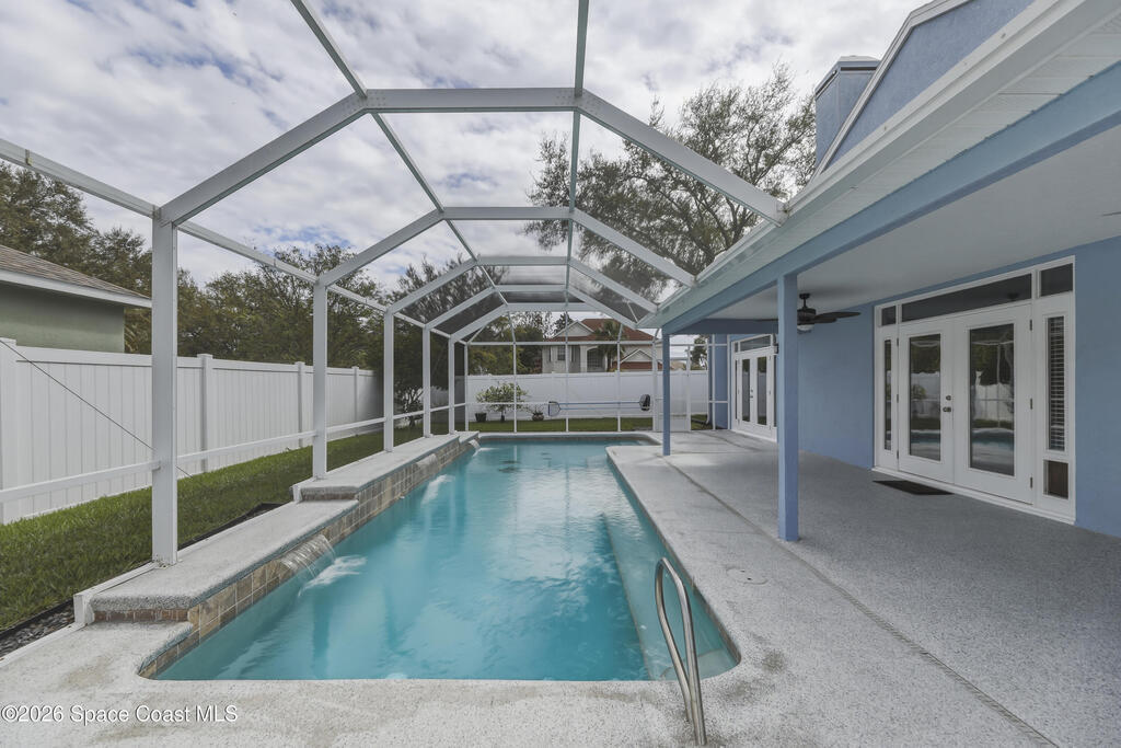 Beautiful pool home in desirable Chelsea Park on a large corner lot with a 3-car garage and private vinyl-fenced yard. The spacious family room features vaulted ceilings, a fireplace, and French doors leading to the covered lanai and screened pool--perfect for Florida living. The gourmet kitchen offers granite countertops, high-end cabinetry, and stainless steel appliances. The downstairs primary suite includes French doors to the pool and a luxurious bath with double sinks, soaking tub, and separate walk-in shower. Upstairs features three additional spacious bedrooms and a full bath.Rare VA assumable loan at 2.75%, buyer must qualify with lender. Major updates include HVAC (2021), impact windows (2021), vinyl fence (2021), pool enclosure (2021), and water heater (2022). Conveniently located near Viera shopping, dining, schools, Patrick Space Force Base, and I-95.