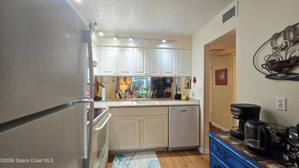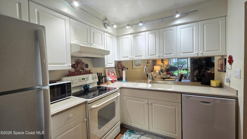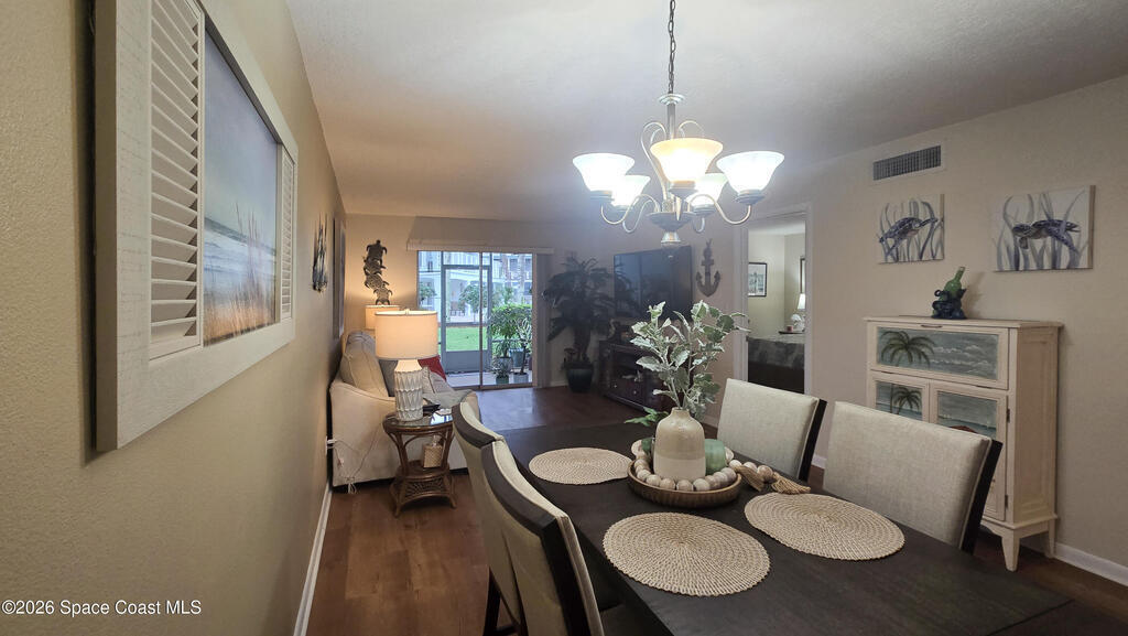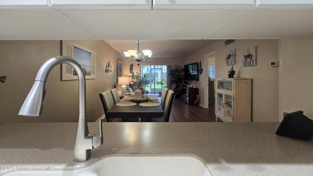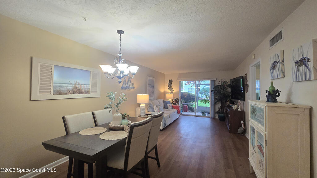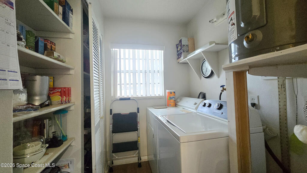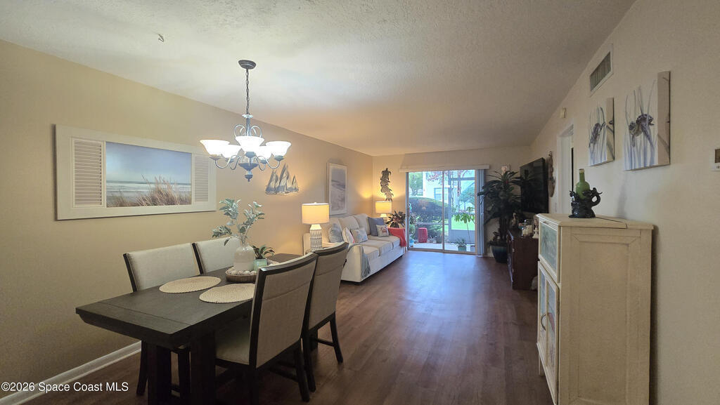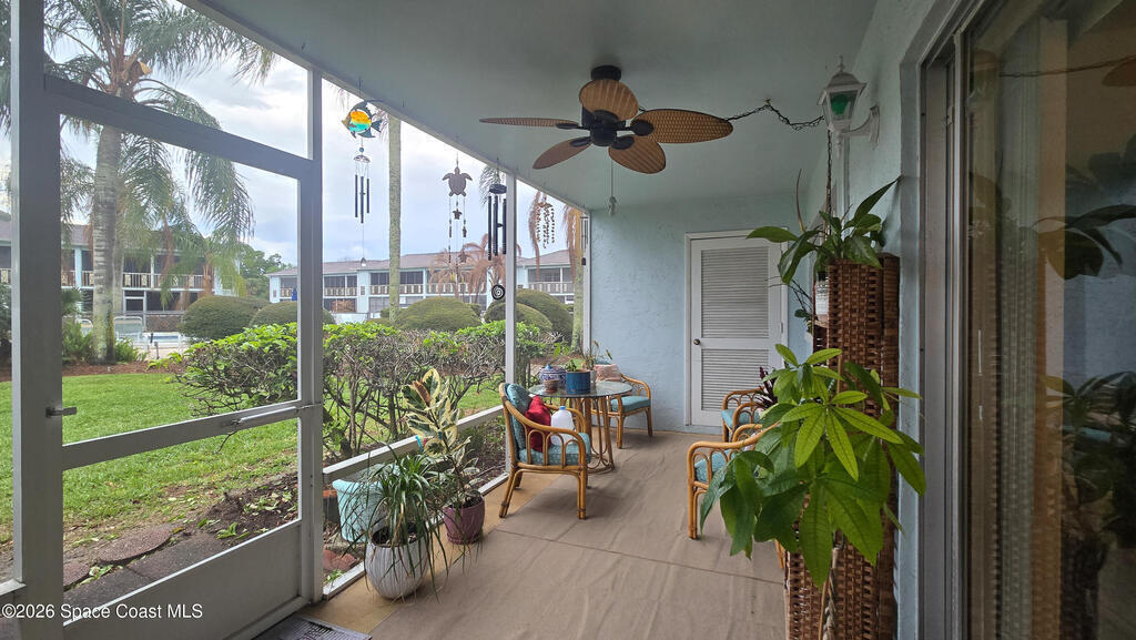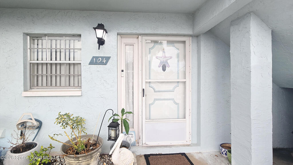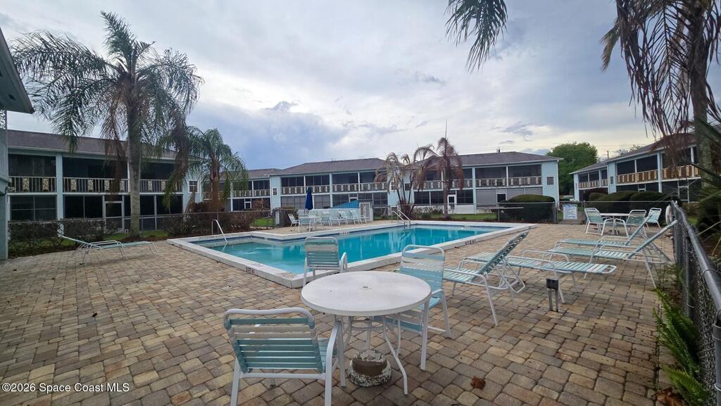 Charming ground-floor 2-bedroom, 2-bath condo with an eye-catching French-inspired baby blue concrete and stucco exterior that offers a bright, inviting presence! Step inside to a light-filled, open layout featuring an open-feel kitchen with a breakfast bar--perfect for casual dining and entertaining. The home also includes updated plumbing, an in-unit washer and dryer, and convenient ground-floor access. Relax on your private screened porch overlooking the pool--ideal for morning coffee or evening unwinding. Enjoy community amenities including a sparkling pool, clubhouse, and sauna, all with low HOA fees. Ideally located near Orlando International Airport and Port Canaveral, plus easy access to theme parks, beaches, and Space Coast rocket launches. Perfect as a primary home, vacation getaway, or investment opportunity!