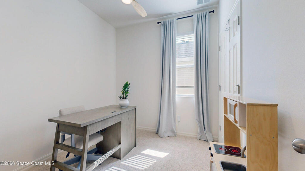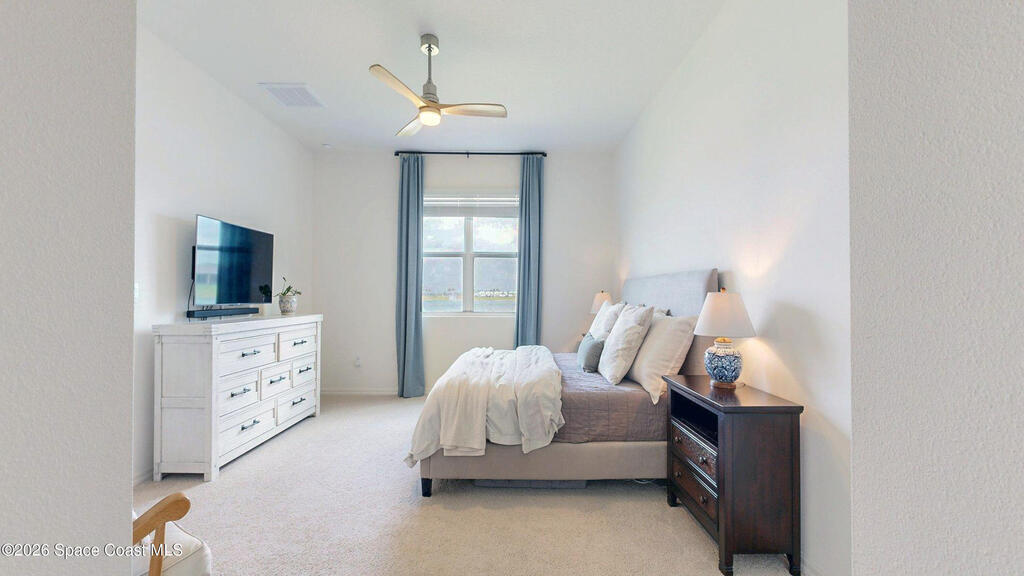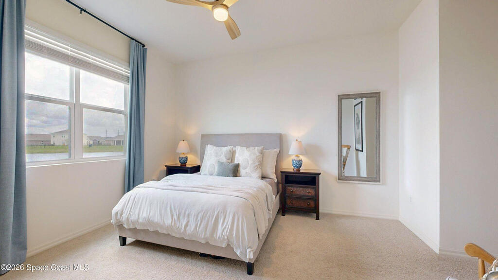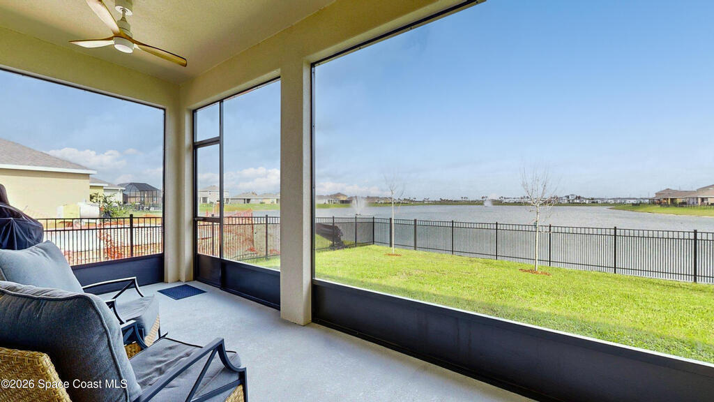 Enjoy your morning coffee and unwind on the screened-in porch overlooking peaceful wooded views and a serene pond--perfect for spotting local wildlife. Located on Florida's sought-after Space Coast, this home offers the ideal blend of tranquility and convenience, just minutes from I-95 for easy commuting to Orlando, beaches, and top employers. Built in 2023 by DR Horton, this move-in-ready home has it all. The open-concept layout features white shaker cabinets, granite countertops, and a full suite of 2023 appliances, all centered around an oversized kitchen island that flows seamlessly into the dining and living areas--perfect for entertaining or everyday living. Soaring ceilings and neutral paint throughout create a bright, airy feel, while the split-bedroom floor plan provides privacy. The oversized primary suite offers a relaxing retreat, and the home features a combination of new plush carpet and tile flooring for comfort and durability. Additional highlights include a spacious