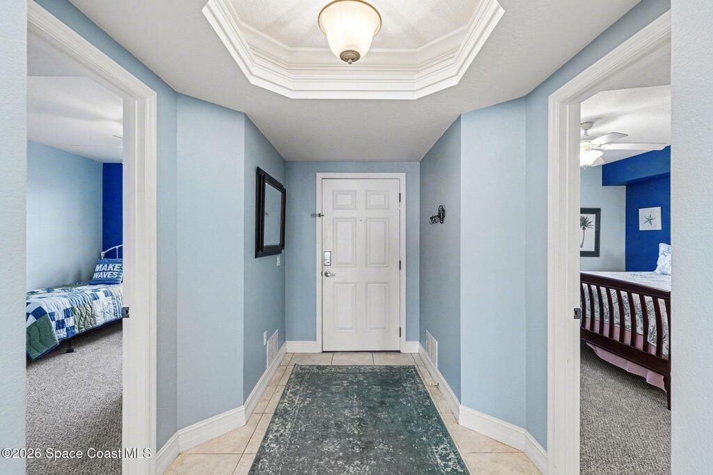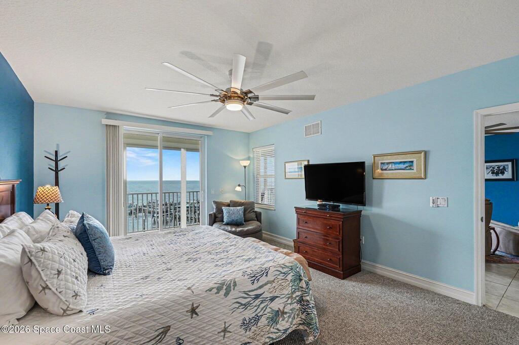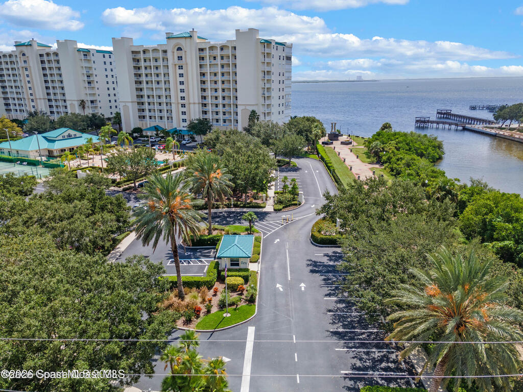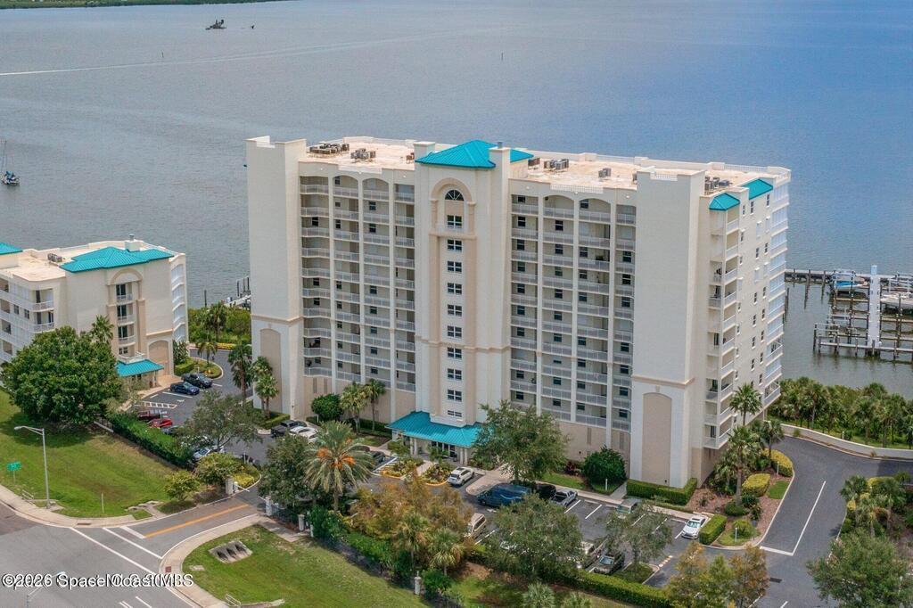 Interested in living The Florida Lifestyle? Then this three bedroom, two bath condo could do the trick! It has a large balcony off the living room and primary bedroom suite with amazing views of the Indian River, rocket launches, the private marina and nature. Condo has neutral tile through out, except for bedrooms, solid hickory cabinets in kitchen and bathrooms, light fixtures and fans installed. Make a few personal touches and call this home or your next vacation spot. Conveying with the condo is a private garage under the building. Complex sits in a perfect location off any busy streets. Community highlights are private marina, large floorplans, dual elevators per building on a back up generator! Community offers several onsite amenities as well. Gated entrances, heated saltwater pool, hot tub, gym, dry sauna, basketball, tennis, and pickleball courts, clubhouse, private marina and social activities. Utilities included in monthly fee are cable, internet & water.