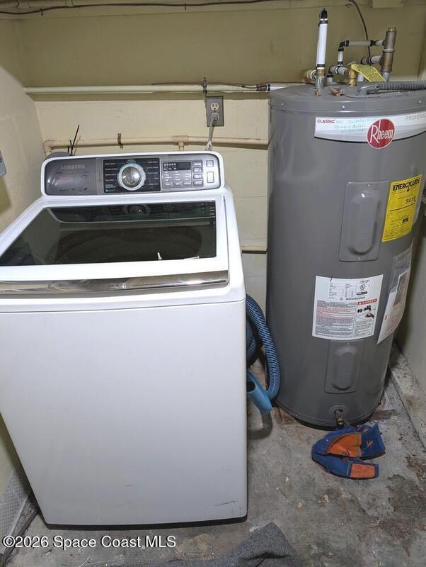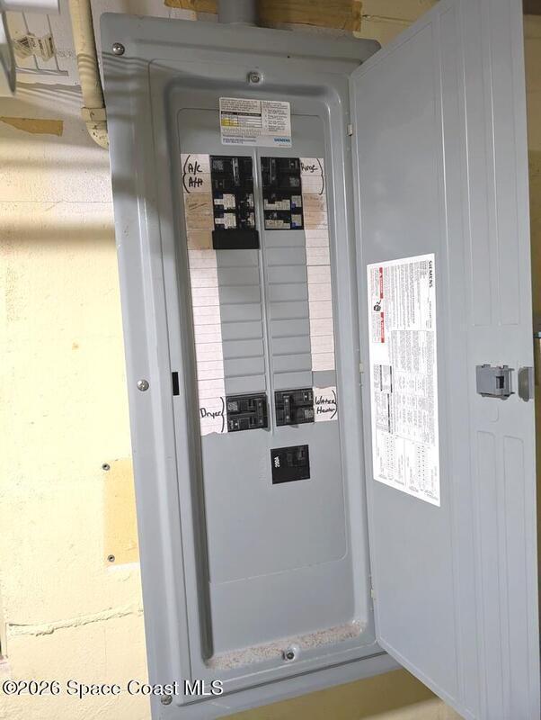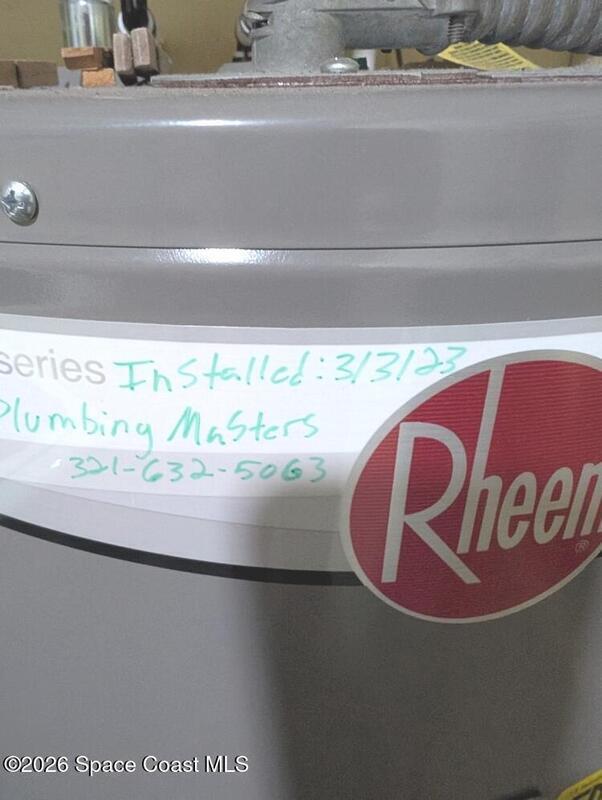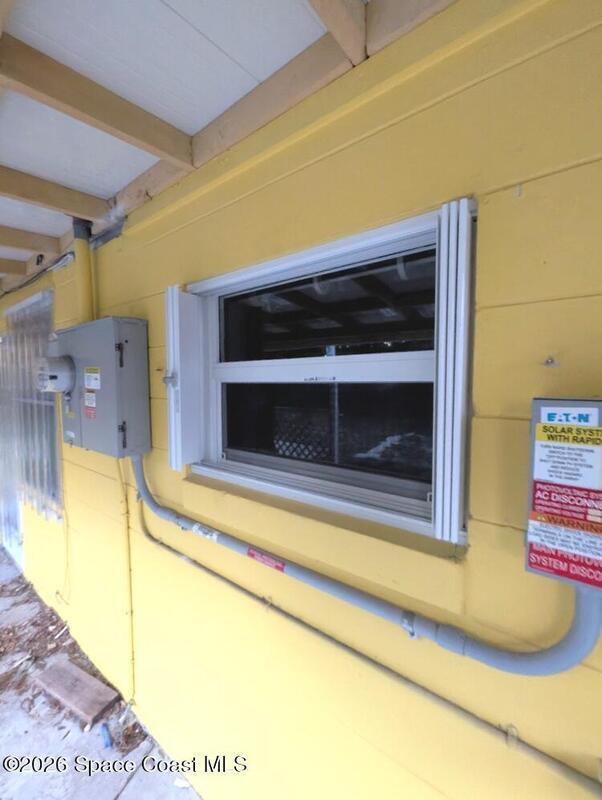 In the last few years this home has had upgrades made with ease of living in mind. The roof was replaced in 2021. It has had solar panels added to aid in cheaper energy costs. There have been some new windows, and door installed in the home. Accordion hurricane shutters have also been installed , for easy hurricane preparedness. The electrical system has also been upgraded in the past, and the rear porch had a new roof installed. Gutters have also been installed in recent years. Plumbing supply lines have been converted to CPVC as well. Water heater installed 2023. So the house has ''good bones''.With a little more work, this home can really shine. It just needs some freshening up inside. With some ''sweat equity'', it would make a good rental, or winter retreat. It is located in a convenient part of Melbourne, with EGAD within walking distance, and Atlantic Ocean beach access, shopping, restaurants are a quick drive over the Indian River.
