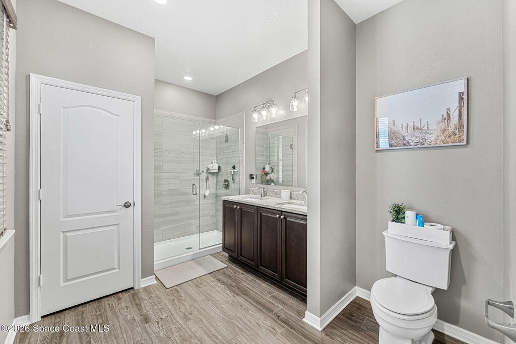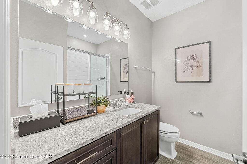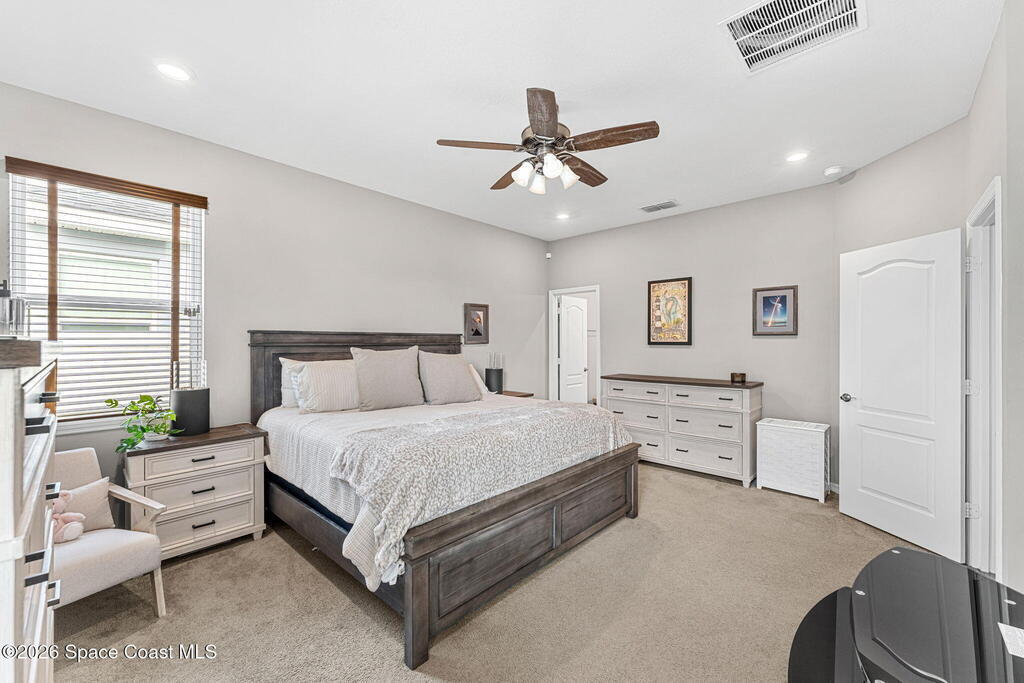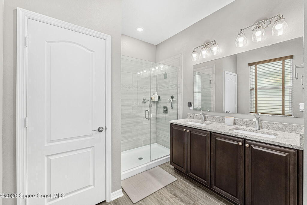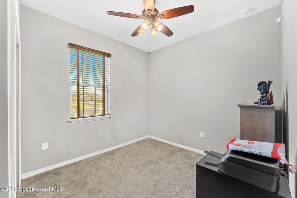 Completed in 2018 this Energy Star-rated residence reflects intentional upgrades & meticulous upkeep throughout. Wood-look tile defines the main living areas, while upgraded porcelain tile enhances walkways & baths beneath 9-ft ceilings & expanded LED lighting, including added accents at the media wall & primary suite. The kitchen showcases upgraded Samsung appliances, professionally sealed granite, an extended breakfast bar & taller smoke-tone cabinetry, w/ reimagined storage featuring deeper shelving, enhanced pantry capacity & a double-hang primary closet system. Both baths offer upgraded shower enclosures & improved drawer storage. Comfort is reinforced by ceiling fans in every bedroom & living space, a higher SEER HVAC system w/ upgraded venting, return air improvements & MERV 11 filtration. Feel spoiled w/ water-efficient fixtures, a 2-ft garage extension w/ lifetime epoxy flooring, full gutters, added hose bib, security lighting & a pre-wired patio.