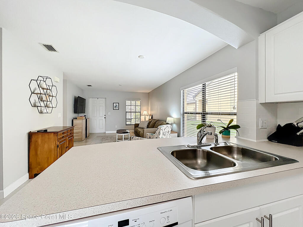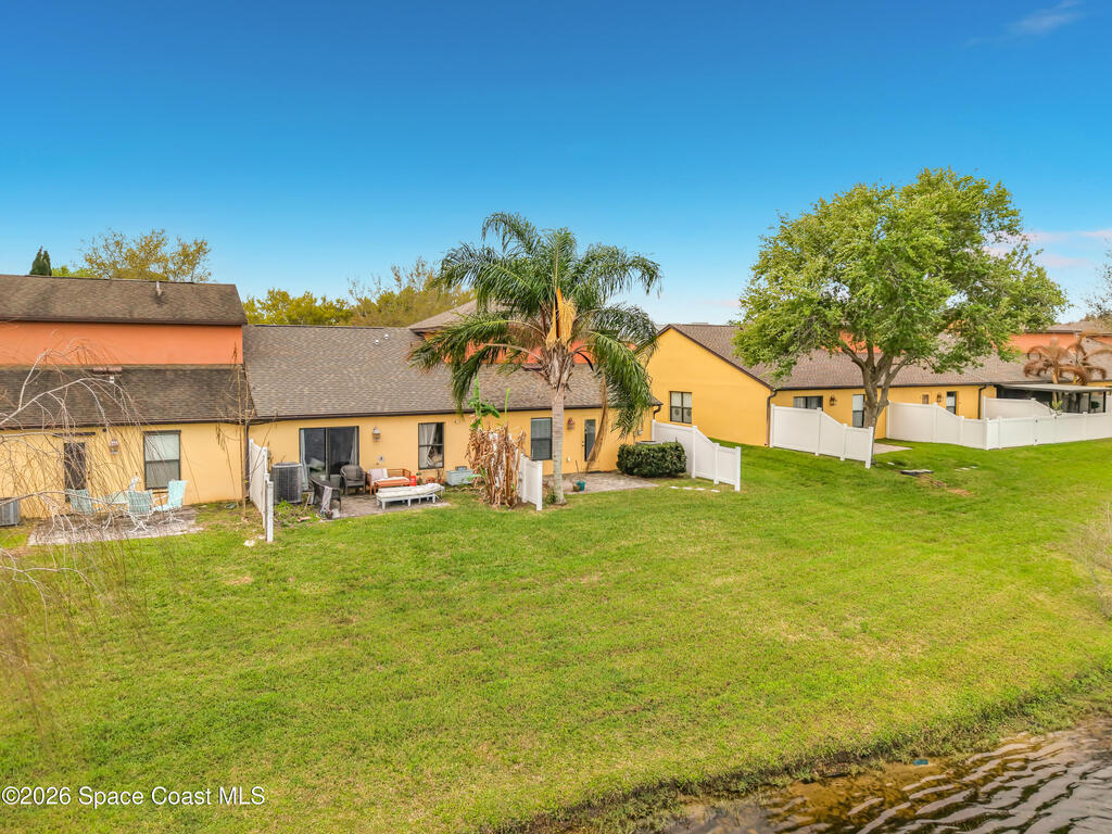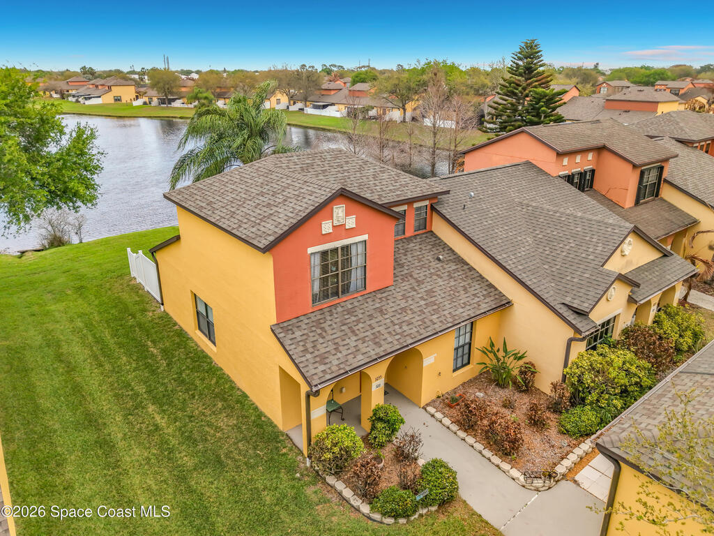 END UNIT WATERFRONT TOWNHOUSE. Bright and inviting 2 bedroom, 2 bathroom townhome with an open concept layout filled with natural light. Downstairs, the kitchen overlooks the living and dining areas, along with a guest bedroom, full bath, and laundry room with full size washer and dryer. The home was previously configured as a 3 bedroom, and the third bedroom was converted into a dining room, offering the potential to easily convert it back if desired. Upstairs, the spacious primary suite offers a private retreat with ensuite and dual closets. Step out to a serene back patio overlooking the water, perfect for morning coffee or evening unwinding. With an upgraded drainage system and lawn care included in the association fees, this townhome offers easy, low maintenance living. Community amenities include a pool, playground, and tennis courts. Recent updates include a 2023 roof, 2025 AC, and 2021 water heater, making this home truly move in ready. Don't miss this opportunity.