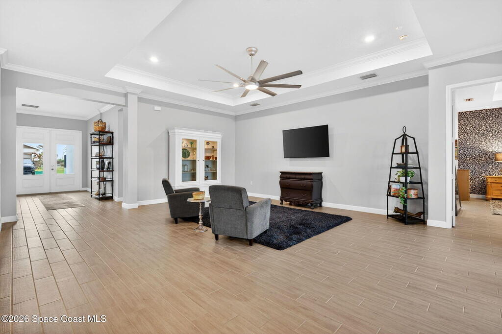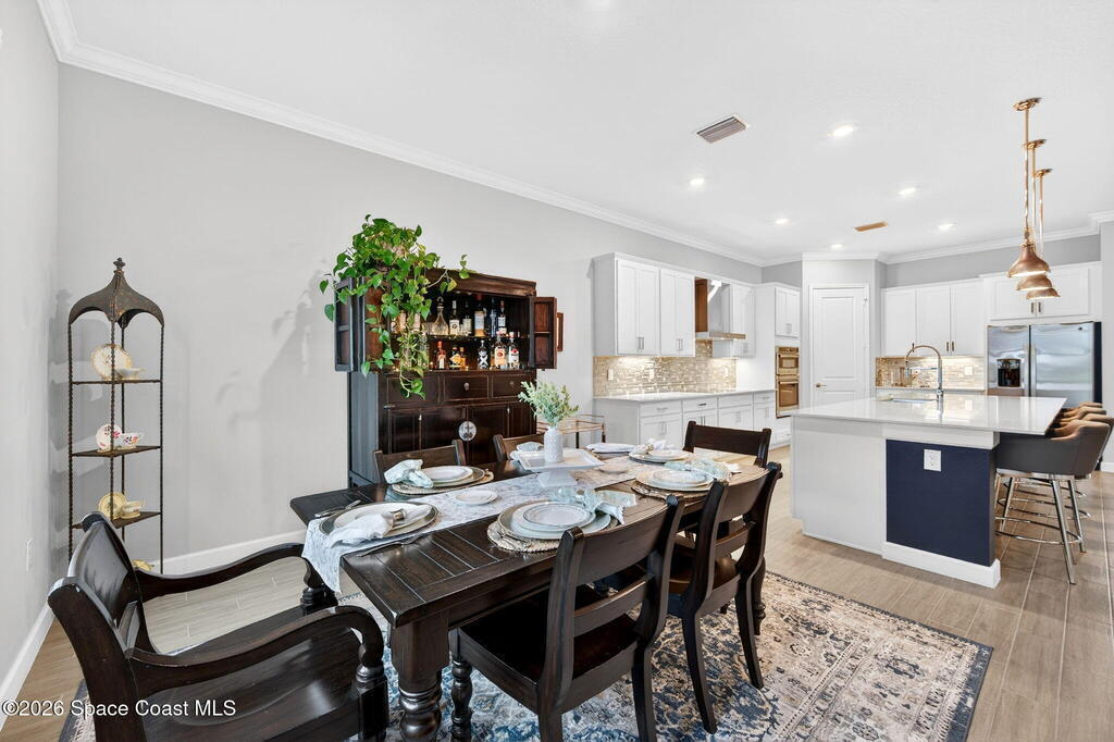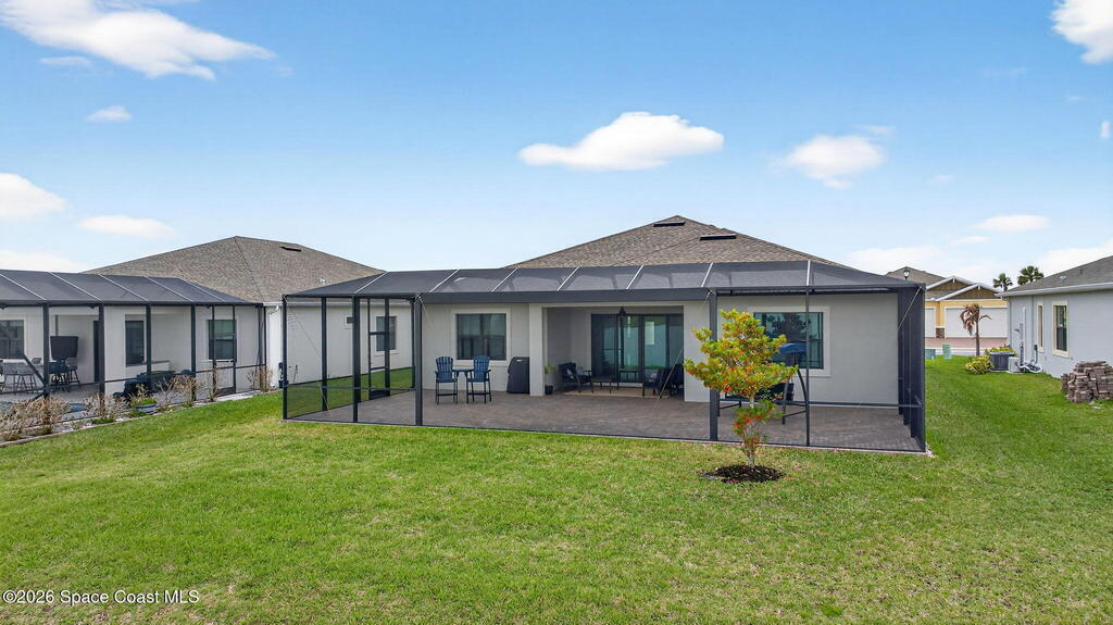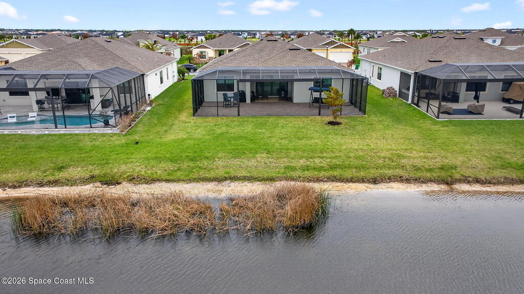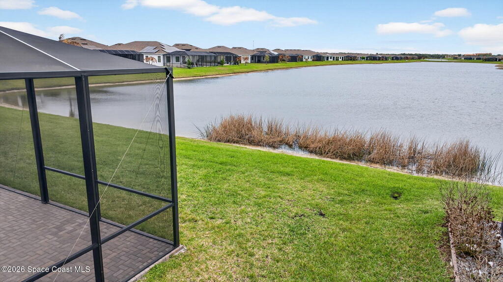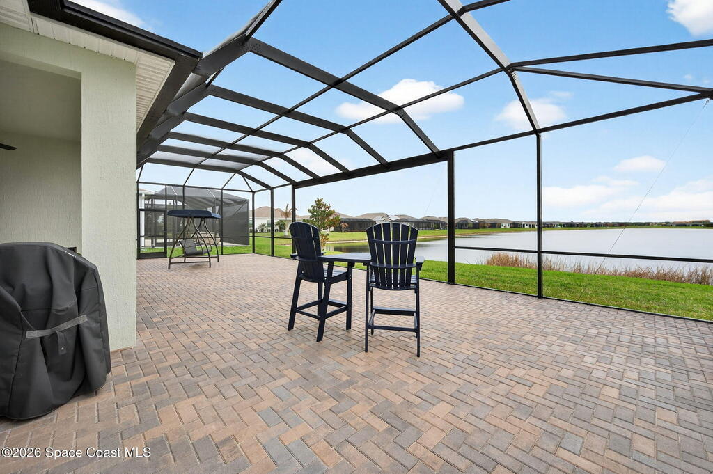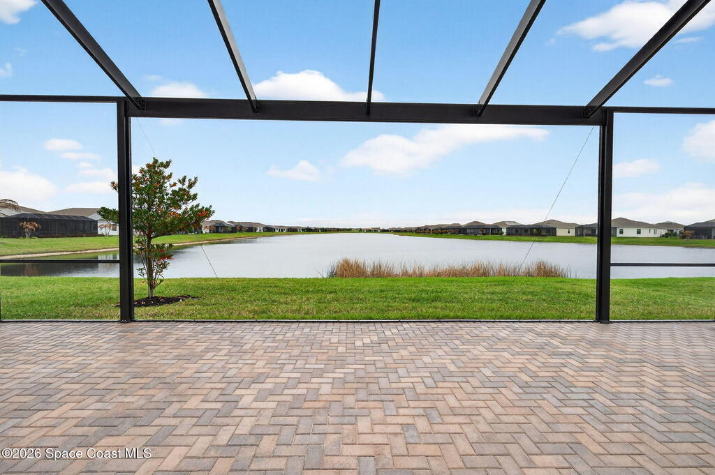 GREAT LAKE VIEW... This 3BR, PLUS FLEX RM (Could be a 4th BR, Guest room, or Office), 3 Full Bath, 3 Car Garage Home with LONG VIEW of the LAKE!!! New in 2022, and Still Looks That Nice, and Better Due to Highly Desired Updates and Upgrades Like the Stylish Full Length Extended Paver Lanai with A DESIRED PICTURE FRAME Rear Enclosure, Tile Plank Flooring Used Throughout Home, Centralized Living RM Area open to Kitchen, Primary Suite and bath with Walk-in Closets w/Professional Grade Organizers, Upgraded Illuminated Mirrors (Heat and Lighting Integrated), Gourmet Kit with Wall Oven, Flat Surface Cook Top, Statement Hood (vented outside), Quartz Counter Tops, Pendant Lighting, Impact Windows. Home has Great LAKE Views from Kitchen, Living Rm, Dining Area, Primary Suite, and Covered Porch!!! Truly a Discriminating Home to Consider!!! All Located with a Upscale Active and Gated 55+ Community Near Costco in Viera!!!
