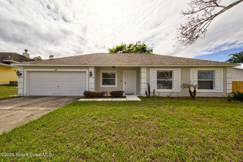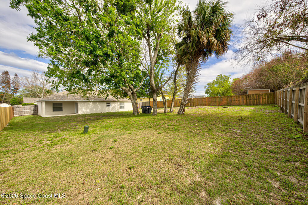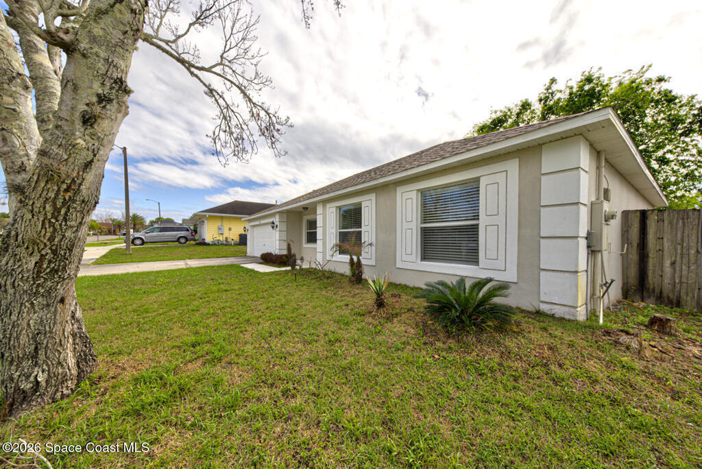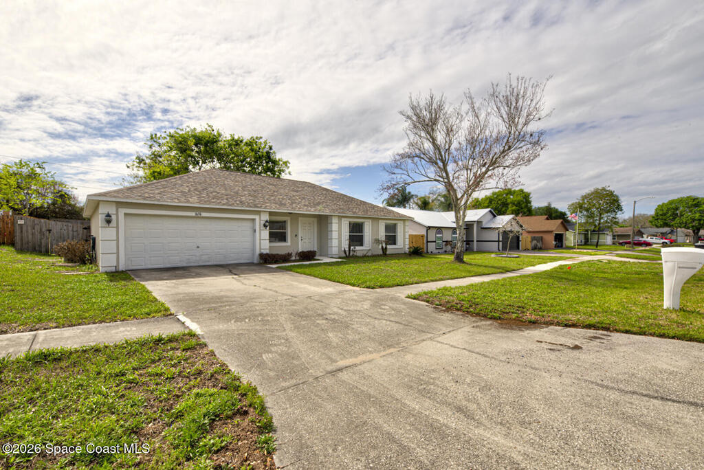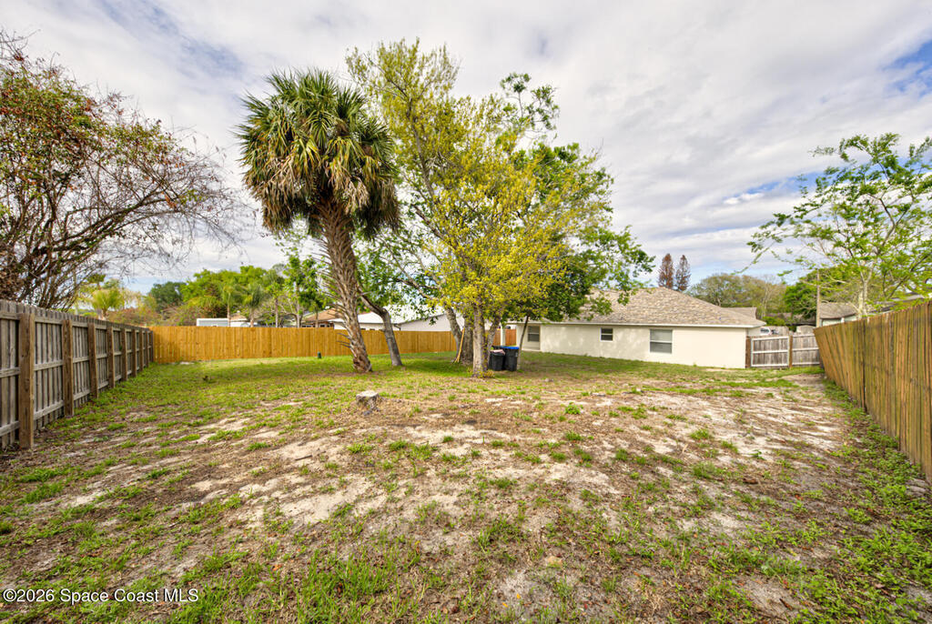Well Maintained 3 Bedroom 2 Bath 2 Car Garage, Split Plan, Concrete Block Home, Built in 2003 on 0.26 Acres Located in Titusville. This home has much to offer with living room dining room combo, spacious kitchen with wooden cabinetry & corian countertops, breakfast nook, laundry inside, Master suite has walk-in closet and walk-in shower, guest bathroom has shower/tub combo, Tile flooring throughout main living areas except carpet in all bedrooms. Roof Replaced in 2023, Large fenced in (6' wooden privacy fence) backyard, covered lanai. NO HOA, plenty of room to park, trailer, boat or motorhome. This home is worth taking a look at...