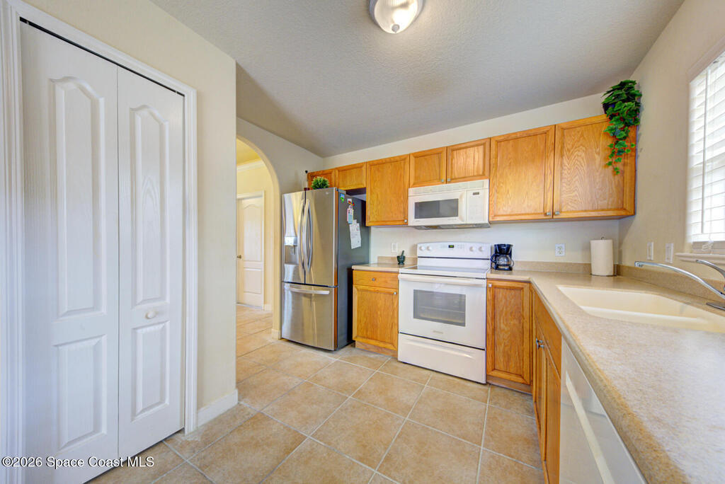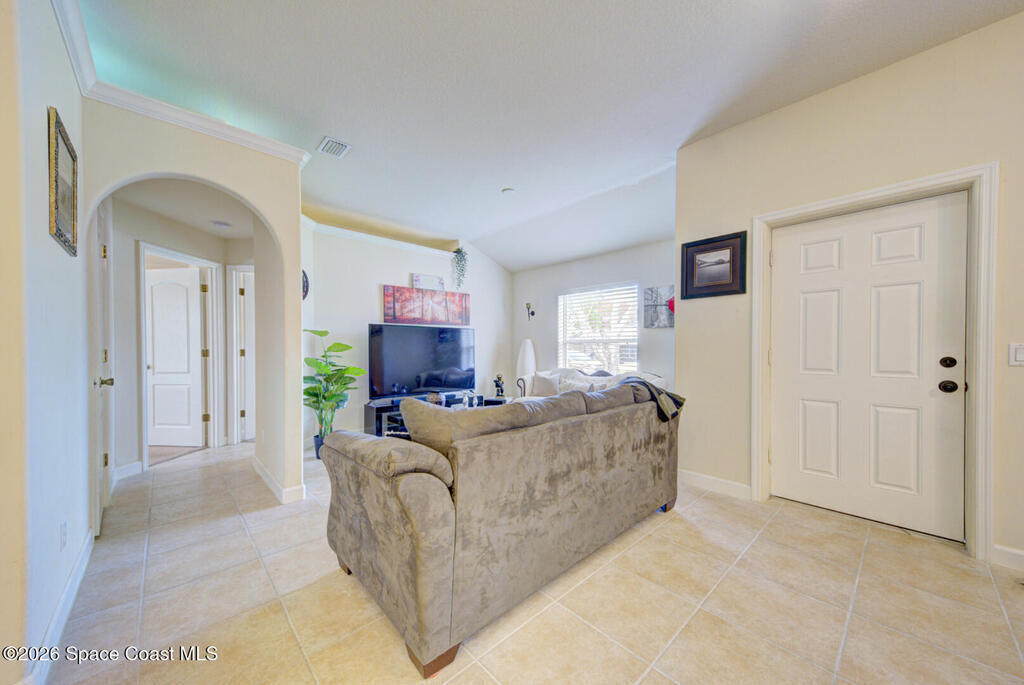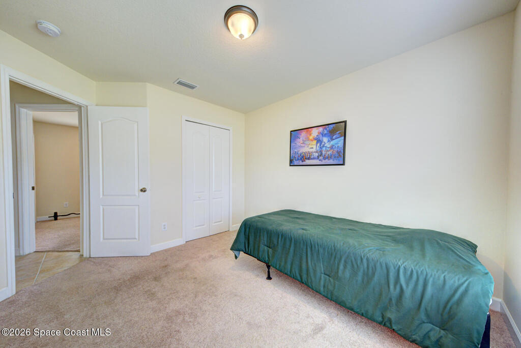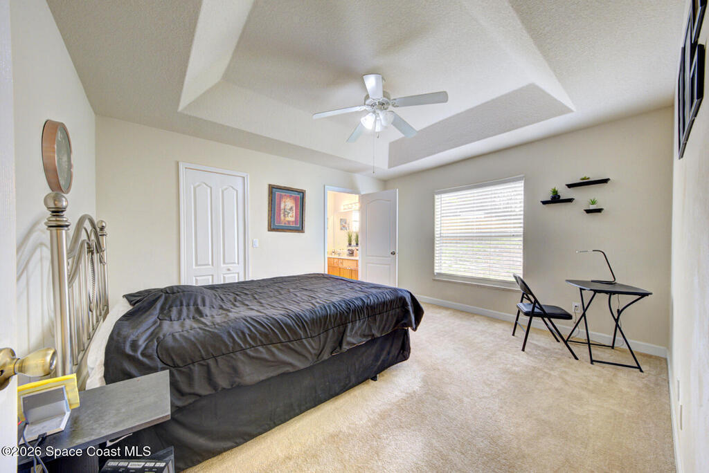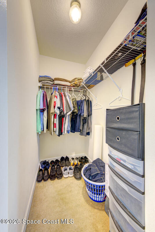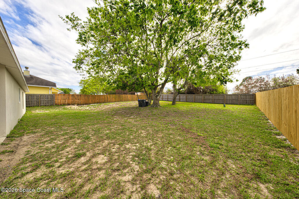 Well Maintained 3 Bedroom 2 Bath 2 Car Garage, Split Plan, Concrete Block Home, Built in 2003 on 0.26 Acres Located in Titusville. This home has much to offer with living room dining room combo, spacious kitchen with wooden cabinetry & corian countertops, breakfast nook, laundry inside, Master suite has walk-in closet and walk-in shower, guest bathroom has shower/tub combo, Tile flooring throughout main living areas except carpet in all bedrooms. Roof Replaced in 2023, Large fenced in (6' wooden privacy fence) backyard, covered lanai. NO HOA, plenty of room to park, trailer, boat or motorhome. This home is worth taking a look at...