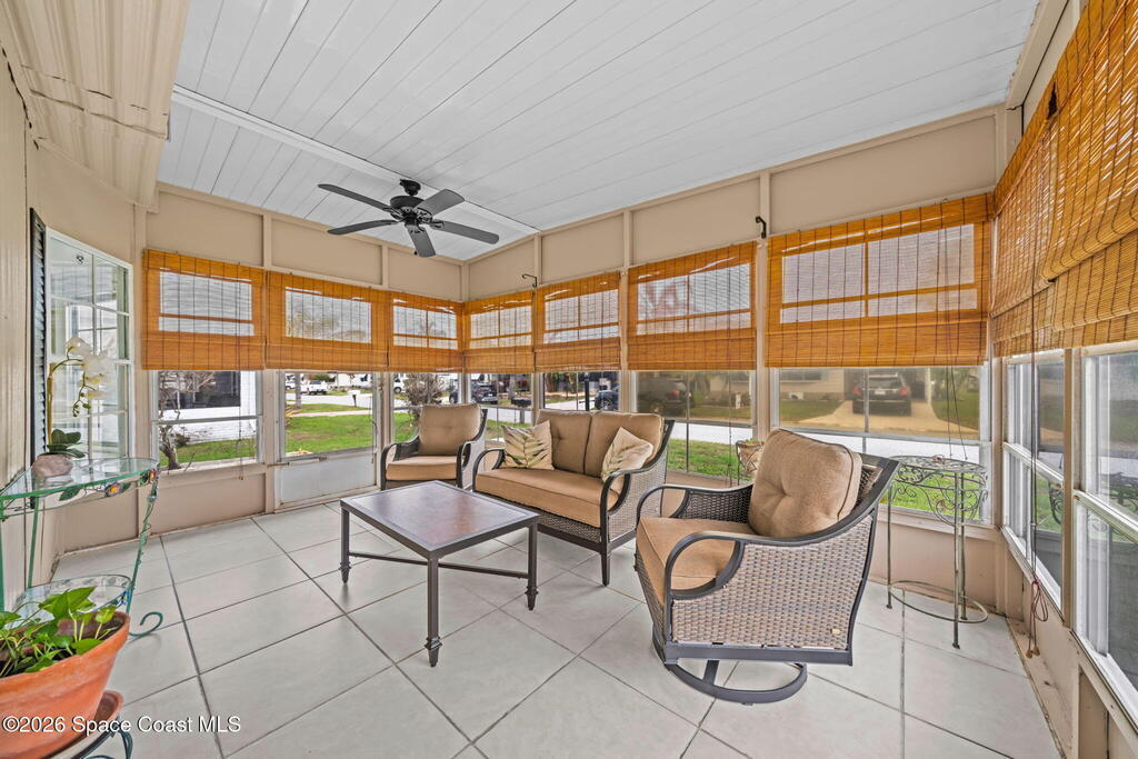 Welcome to your slice of paradise in Barefoot Bay. Just minutes from the Indian River, this 2 bed, 2 bath home offers an open floor plan with comfortable living and entertaining space. The enclosed Florida room adds valuable square footage and features new vinyl windows and screens, creating a bright and flexible area to relax year-round.The home also includes a built-in kitchenette, spacious shed, and workshop area with washer and dryer for added convenience and storage. A home warranty is included, offering peace of mind for the new owner.Barefoot Bay residents enjoy resort-style amenities including three pools, private beach and fishing dock access, pickleball, softball and bocce ball courts, walking paths, golf cart-friendly streets, social clubs, live music, and clubhouse activities. Optional golf and boat storage are also available.Experience an active coastal lifestyle with easy access to Sebastian Inlet's beaches, boating, fishing, and waterfront dining.