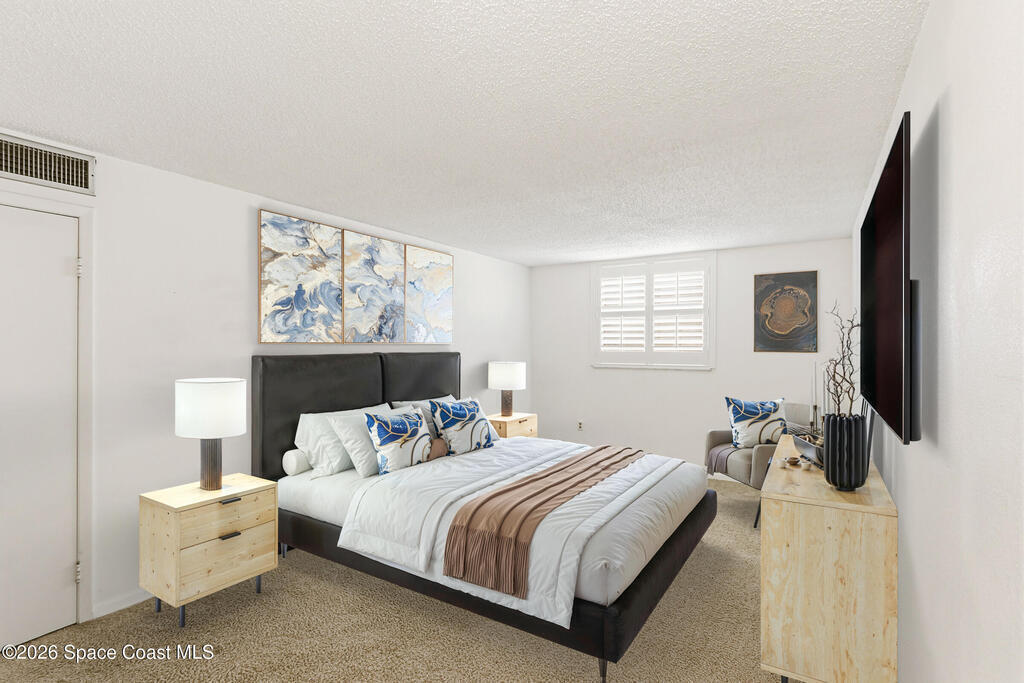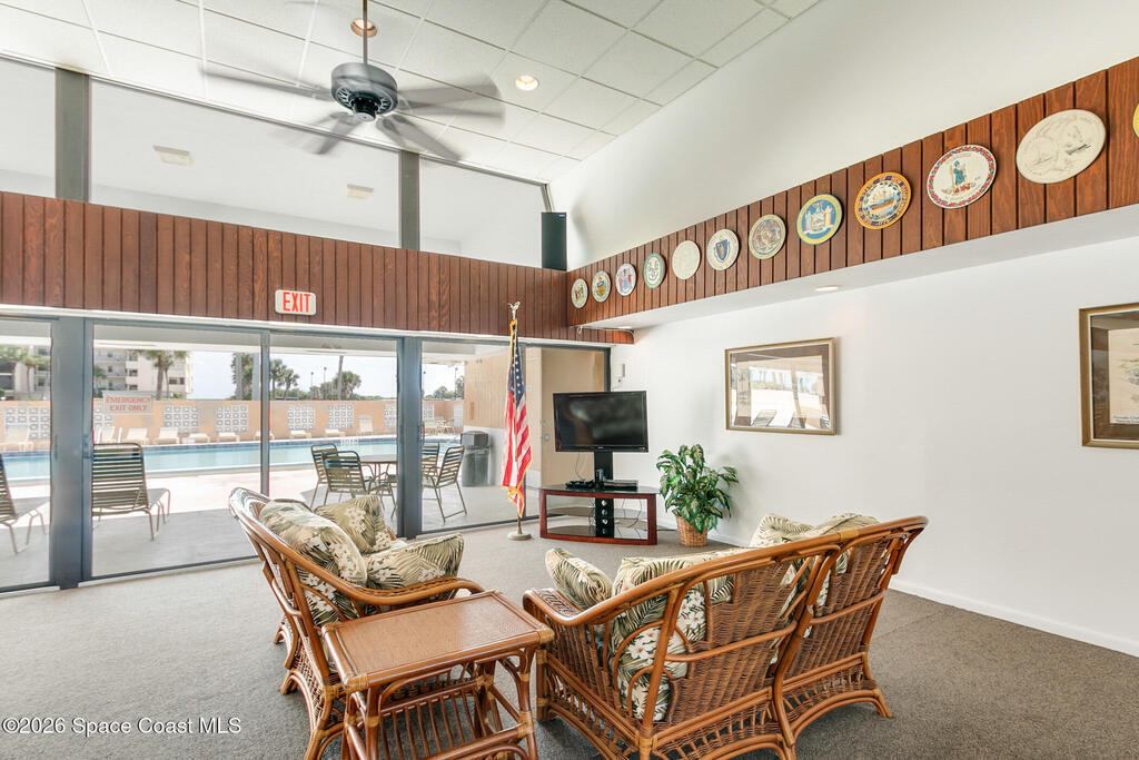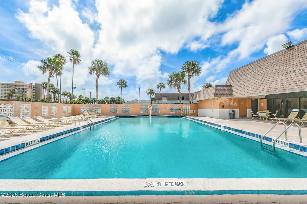 Beachside perfectly located between the causeways, Palm Bay Colony Club 2nd floor view with new HURRICANE IMPACT WINDOWS 2 yrs., Living room, guest and Master bedroom has Plantation shutters 2 yrs.!! New aluminum screen on porch 2 yrs.,, roof 2012, W/H 2 years, all Stainless steel applicances 3 years and looks like they've never used!!!! Very clean, open well taken care of! Ammenities include a heated swimming pool, clubhouse for yoga classes, parties, tennis, pickle ball, & sauna, Just across the beach and Crown Plaza hotel, you will love the convenience to major causeways, and local hotels, golf, schools, restaurants, and great views of our space spots! Jump on this early and move right in!!!!!!!! No pick up trucks or motorcycles permitted.