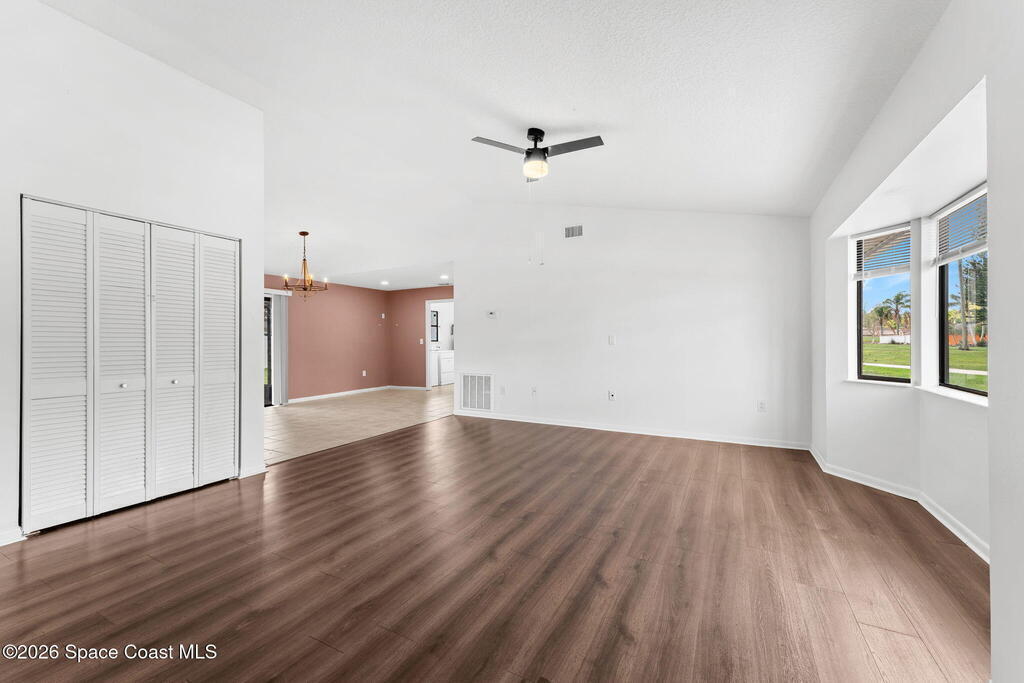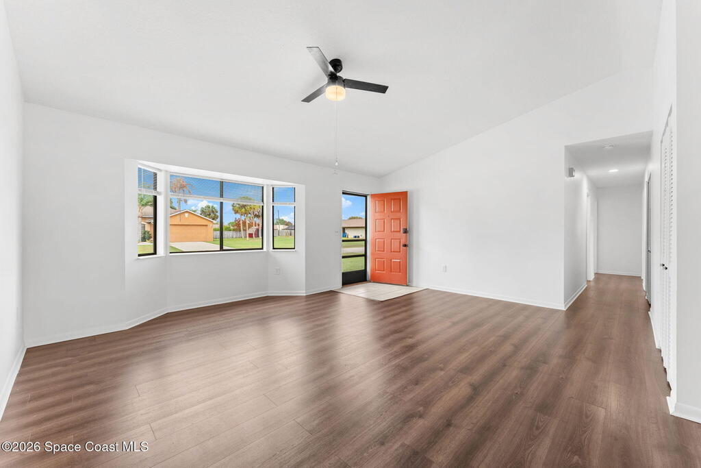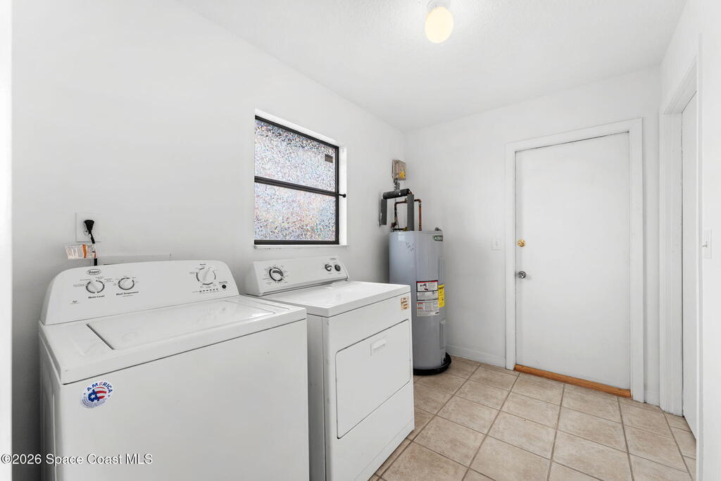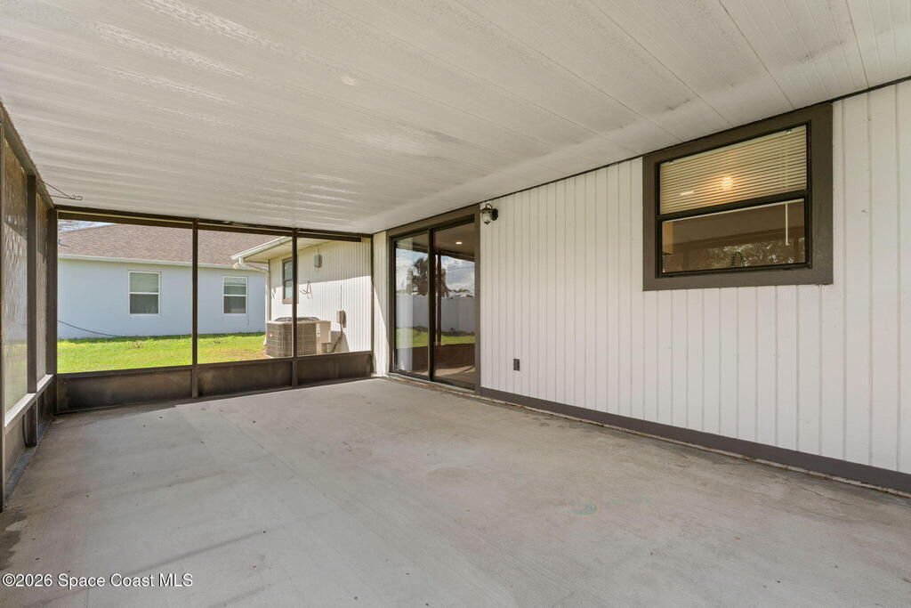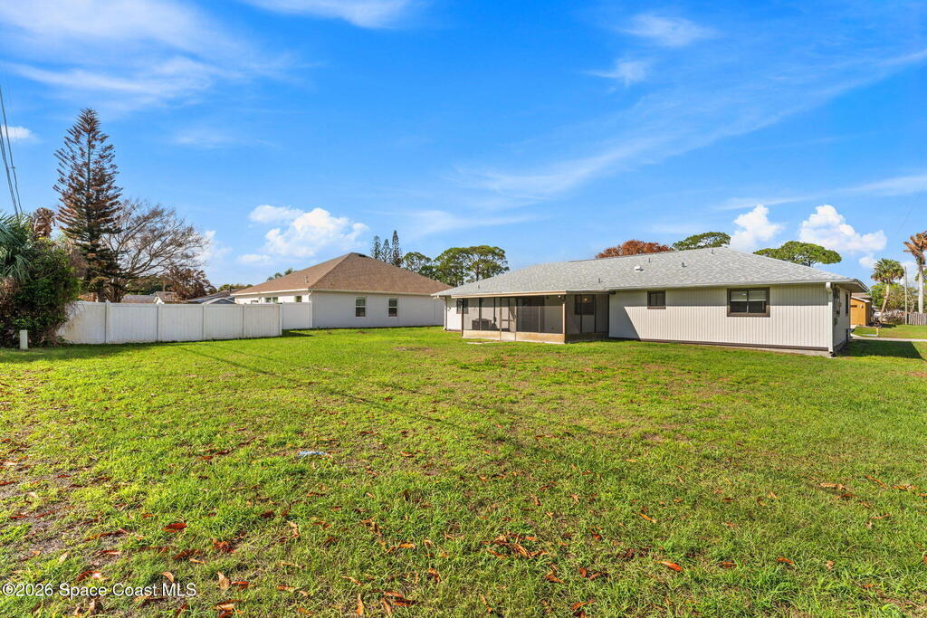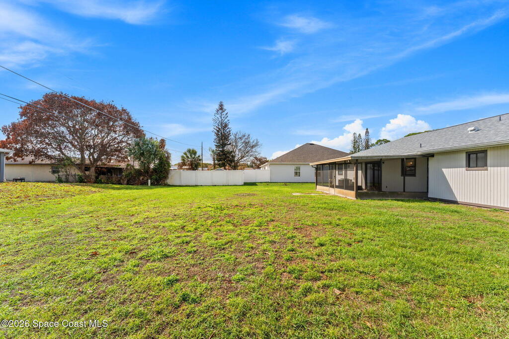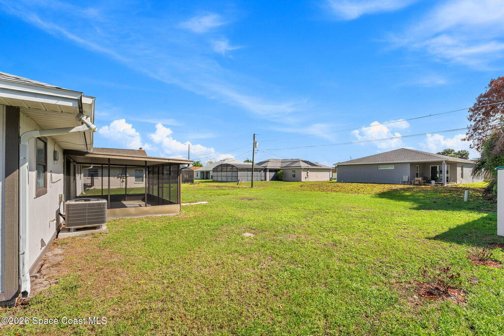 Inside this 3-bedroom, 2-bath, 2-car garage home, you'll find a layout ready for your personal touches. Enjoy the openness of the cathedral ceilings and a bay window in the living room along with a large dining room. This home offers Florida's tropical east-west breeze when the front screen door and rear slider to your screened 12' x 19.5' back porch are open.The yard provides plenty of space for outdoor enhancements with room for pool, garden, workshop, or clean/park your boat using the city water spigot in the back yard. No HOA; fresh interior paint; Dec 2021 Roof; 2022 Water Heater; Keyless entry front door; two double linen closets; and separate generous laundry room.