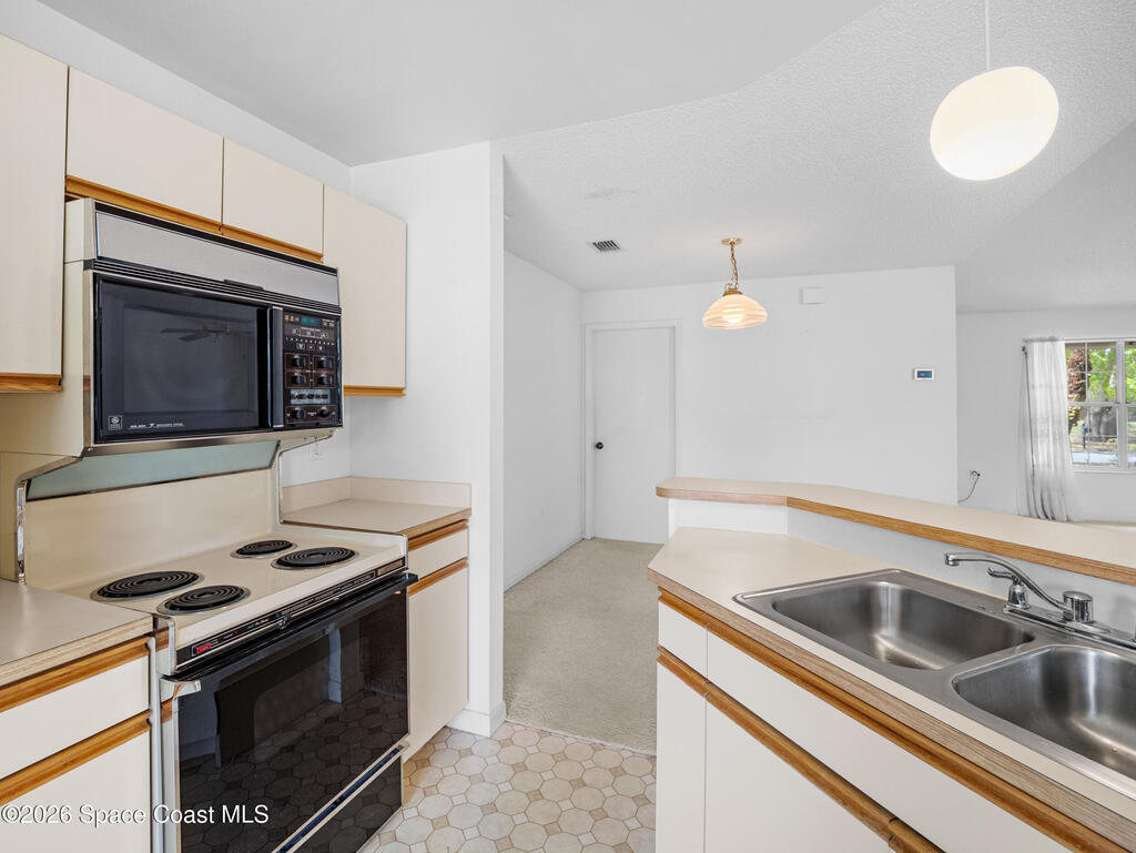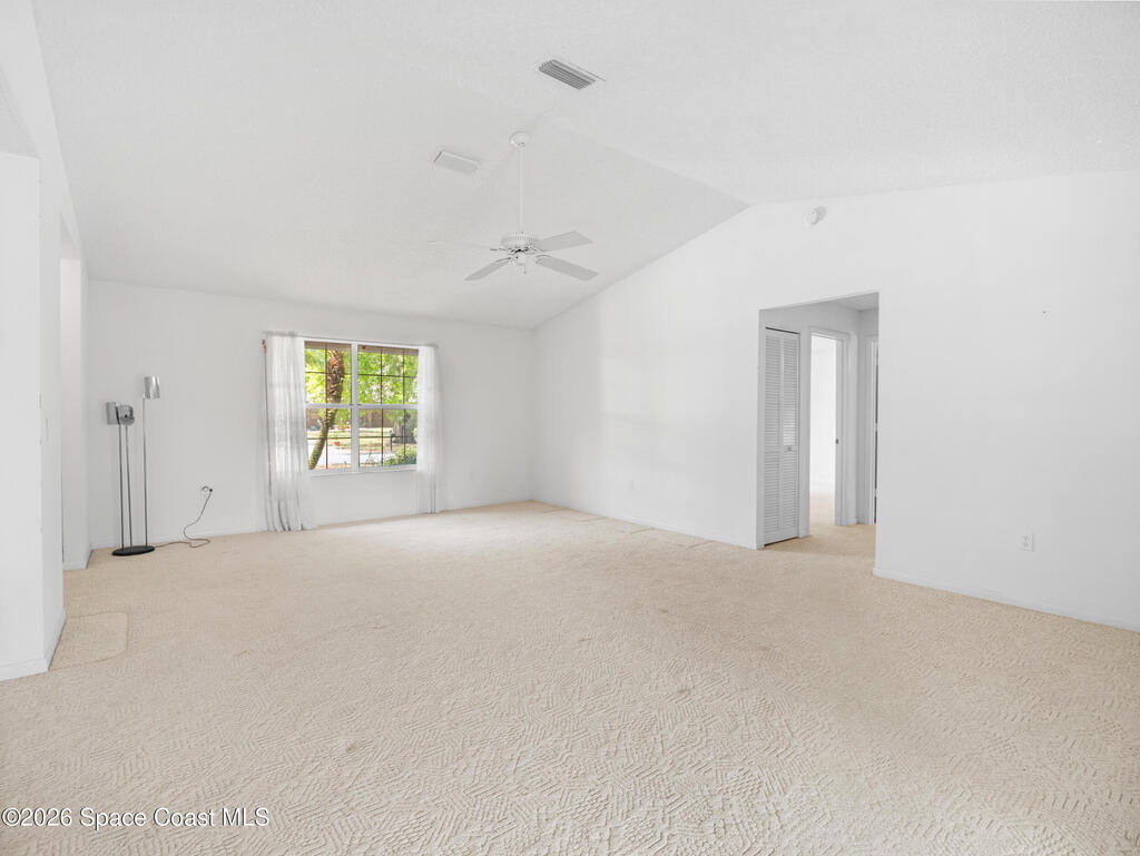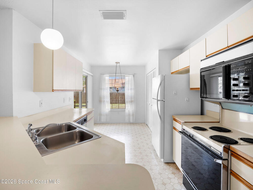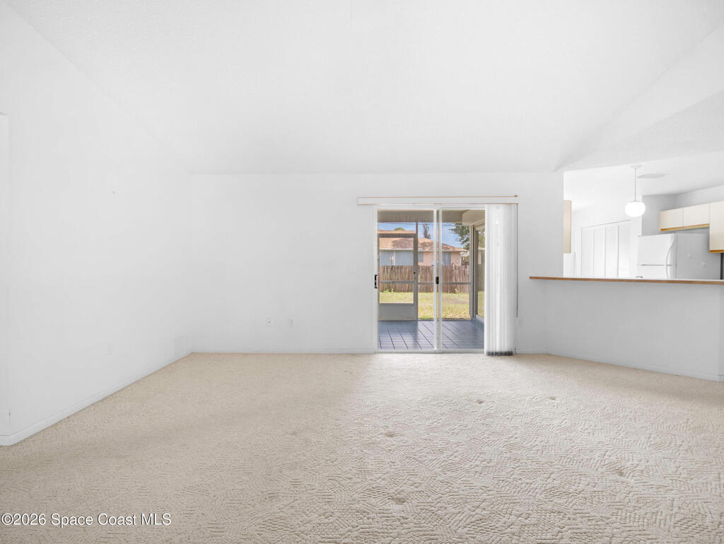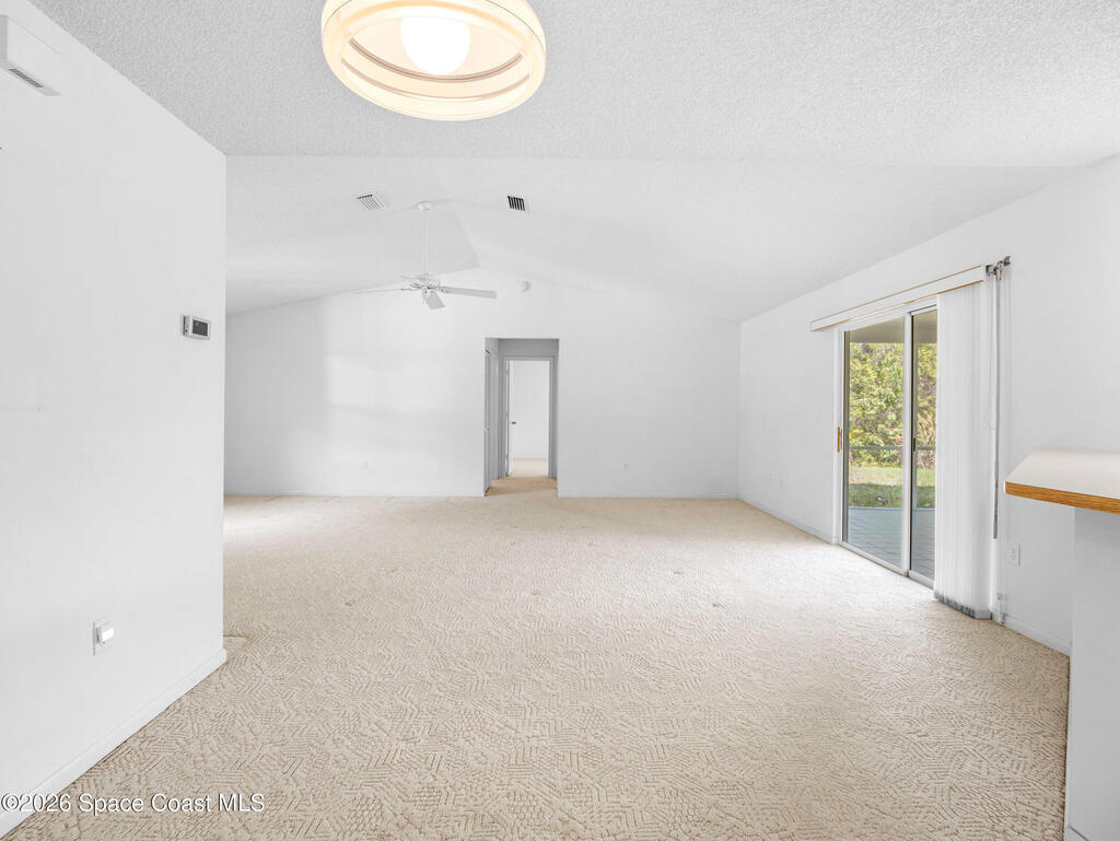 This home offers a warm, inviting feel with a layout designed for easy, comfortable living. The main living and dining areas flow into an open kitchen with abundant counter space, a breakfast bar, an eat-in nook, and a large pantry, creating a practical space for cooking and gathering. The split floor plan provides privacy, with a primary suite featuring a walk-in closet and an updated bath. High ceilings and generous windows fill the home with natural light. Step out to the screened porch overlooking a large fenced backyard with room for pets, gardening, play areas, or future outdoor additions. Additional highlights include a newer AC unit, a slightly older roof, indoor laundry, and a two-car garage. Thoughtfully maintained and move-in ready, this home sits in a quiet SE Palm Bay neighborhood close to schools, shopping, I-95, and the Bayside Lakes corridor--offering a comfortable blend of space, convenience, and relaxed Florida living