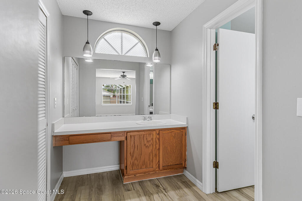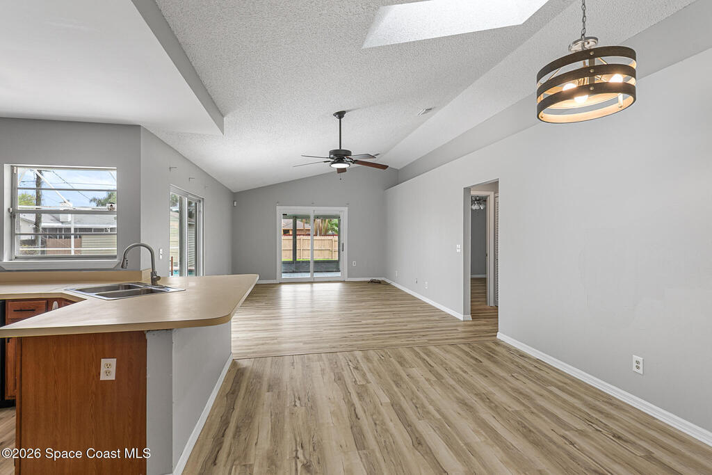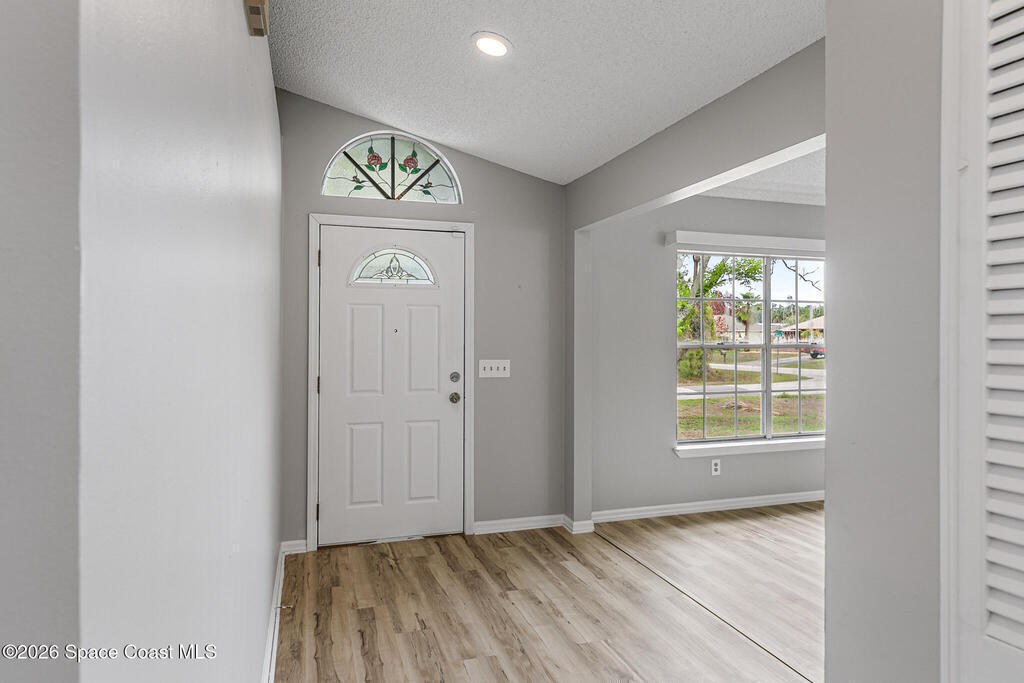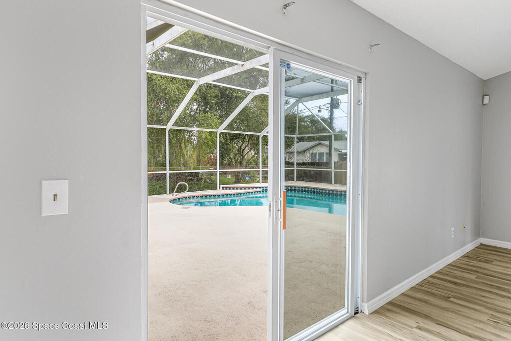 New to the market -- this freshly updated Palm Bay pool home is one of the best values currently available! The seller is offering a $5,000 closing cost credit to the buyer with an accepted contract closing within 30 days.This spacious 3-bedroom, 2-bath home with a versatile bonus room offers incredible flexibility along with two separate living areas, giving you plenty of room for entertaining, relaxing, working from home, or creating a playroom or guest space.Step inside to a bright and airy open layout featuring vaulted ceilings and luxury vinyl plank flooring throughout. The main living space flows seamlessly into the dining area, where beautiful bay windows overlook the sparkling blue pool, bringing in natural light and creating the perfect backdrop for everyday living.The kitchen sits at the heart of the home, complete with a breakfast bar and plenty of room to gather with family and friends. Several rooms throughout the home enjoy peaceful views of the pool, adding to the