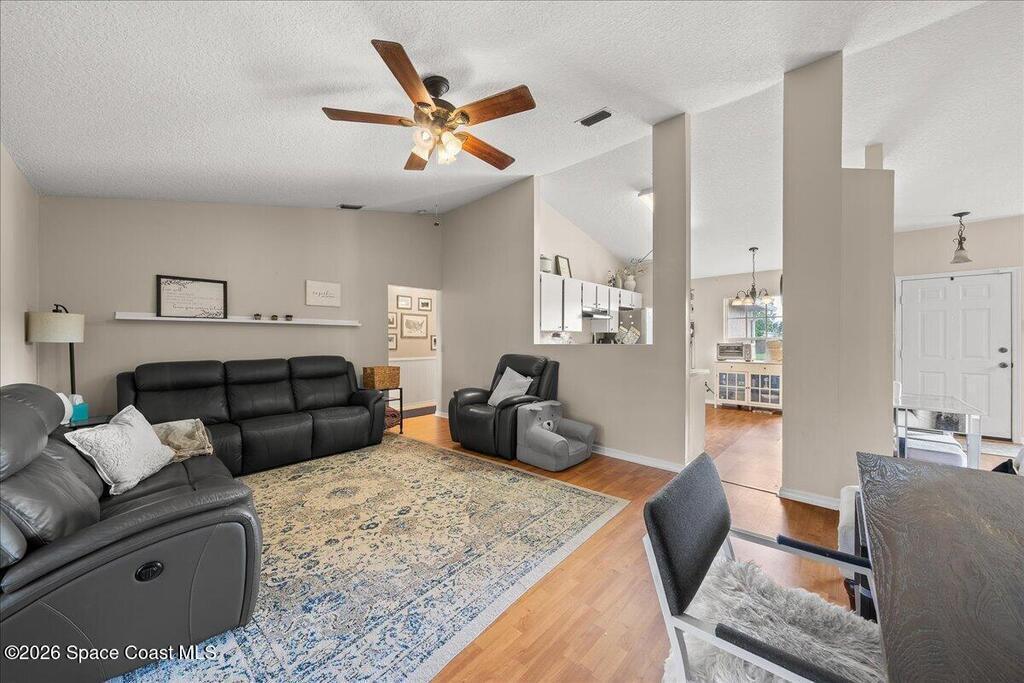 Welcome to this well-maintained 3 bedroom, 2 bath home in Port St. John featuring a desirable split floor plan and spacious layout. The kitchen overlooks the family room, creating an open and connected living space perfect for everyday living and entertaining. A large bonus room offers flexibility for a home office, playroom, or additional living area. Enjoy Florida living year-round from the screened back porch overlooking a fully fenced backyard with plenty of room to relax or play. Major updates include a 2019 roof, 2018 HVAC, and a 2026 water heater for peace of mind. Conveniently located just a short drive to the beaches, Kennedy Space Center, and Orlando, this home offers both comfort and accessibility.