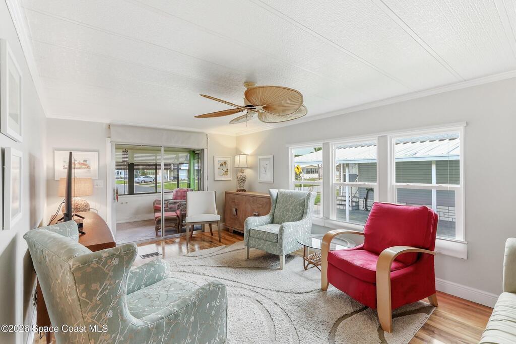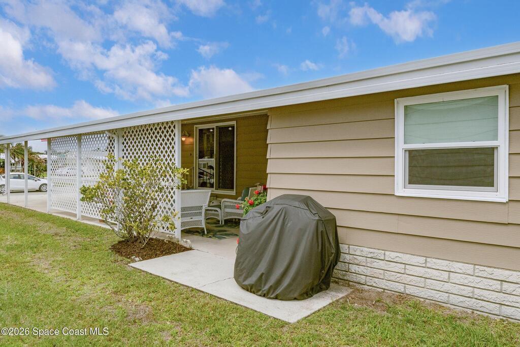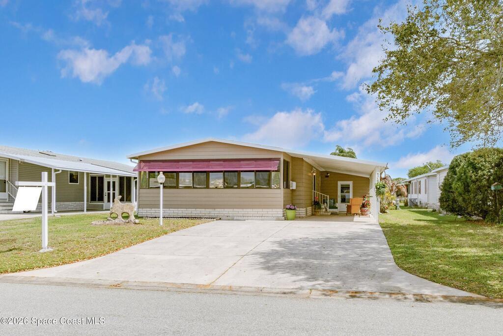 Come see this magnificently updated 2BR/2BA home in the heart of amenity-rich Barefoot Bay, near the golf course and just a short walk to one of three pools! The double driveway and carport lead to a private patio area. Step inside to a fully remodeled interior, featuring an 11x12 kitchen with all matching Samsung stainless steel appliances, deep sink, and ample counter space for all those culinary wizards. An open dining area flows into a spacious living room and enclosed sunroom, complete with AC and sliding windows--perfect for relaxing or entertaining. Both bathrooms are beautifully renovated and boast glass-tiled walk-in showers. Additional upgrades and improvements include an impact sliding door, double-pane windows, Hardie-board siding at the enclosed sunroom, plywood subfloors, insulated and drywalled interior walls, PEX water supply lines, vapor barrier, Roof 2018, AC 2019, and the list goes on...With the included storage room or workspace, this is truly a move-in ready home!