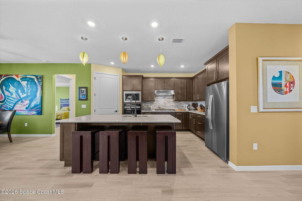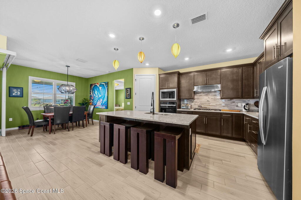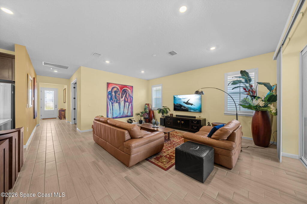Skip the wait and move right into this beautifully upgraded Mystique floor plan--loaded with premium lot features, high-end finishes, and thoughtful upgrades already complete! Step inside and experience a light-filled, coastal-inspired interior enhanced by gorgeous plank tile flooring throughout, creating a seamless, elegant, and low-maintenance living space. This highly desirable layout centers around a designer kitchen with a large quartz island, abundant cabinetry, and upscale finishes, flowing effortlessly into the spacious dining area and inviting family room--perfect for both everyday living and entertaining. The 3rd bedroom is a flex room. The home continues to impress with a deluxe master suite featuring an upgraded bathroom with walk-in shower, while the extended 2-car garage with a 4' extension provides extra space for a golf cart or storage. Enjoy true indoor-outdoor Florida living on the oversized screened lanai and covered porch overlooking a peaceful lake!