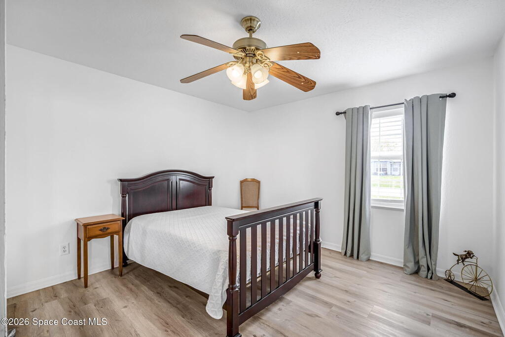 Welcome home! This charming 3-bedroom, 2-bath home in Mims offers a comfortable layout with space to relax and entertain. The split floorplan provides privacy, while the spacious living room features a beautiful tray ceiling that adds an open, airy feel. The large eat-in kitchen is perfect for gatherings, offering plenty of room for cooking, dining, and hosting friends and family. Need extra space? The bonus room is ideal for a home office, playroom, or flex space to fit your needs. Step outside and enjoy a welcoming front patio and a large screened back porch that extends your living space outdoors. Perfect for entertaining guests, hosting weekend gatherings, or simply enjoying the spacious backyard views. Situated on a generous quarter-acre lot, the property boasts a spacious backyard with plenty of room for outdoor activities, gardening, or future additions. With its inviting layout and great entertaining spaces, this home blends comfort and functionality. Roof-2025, AC-2022