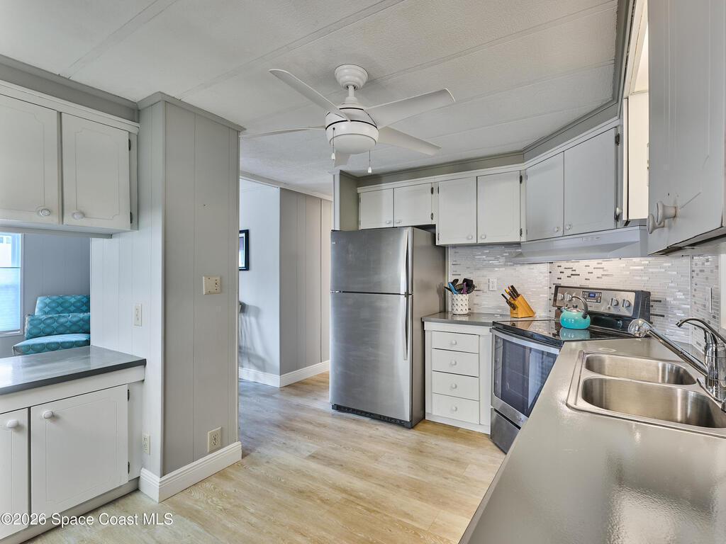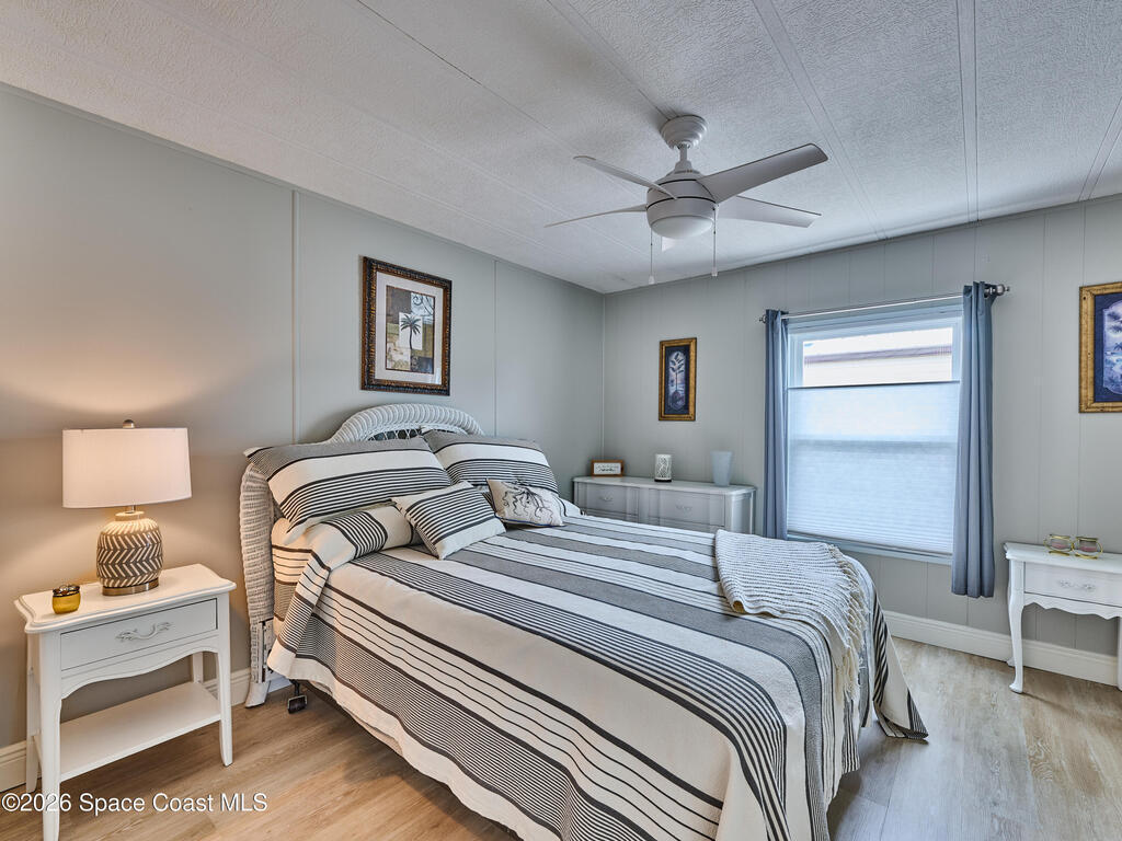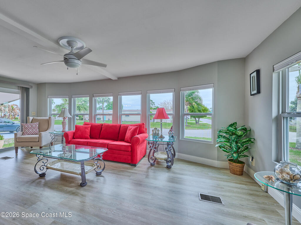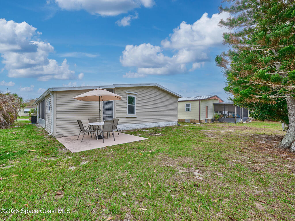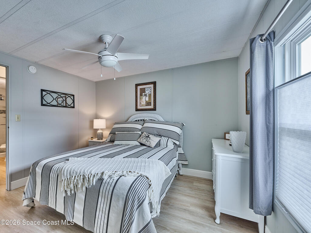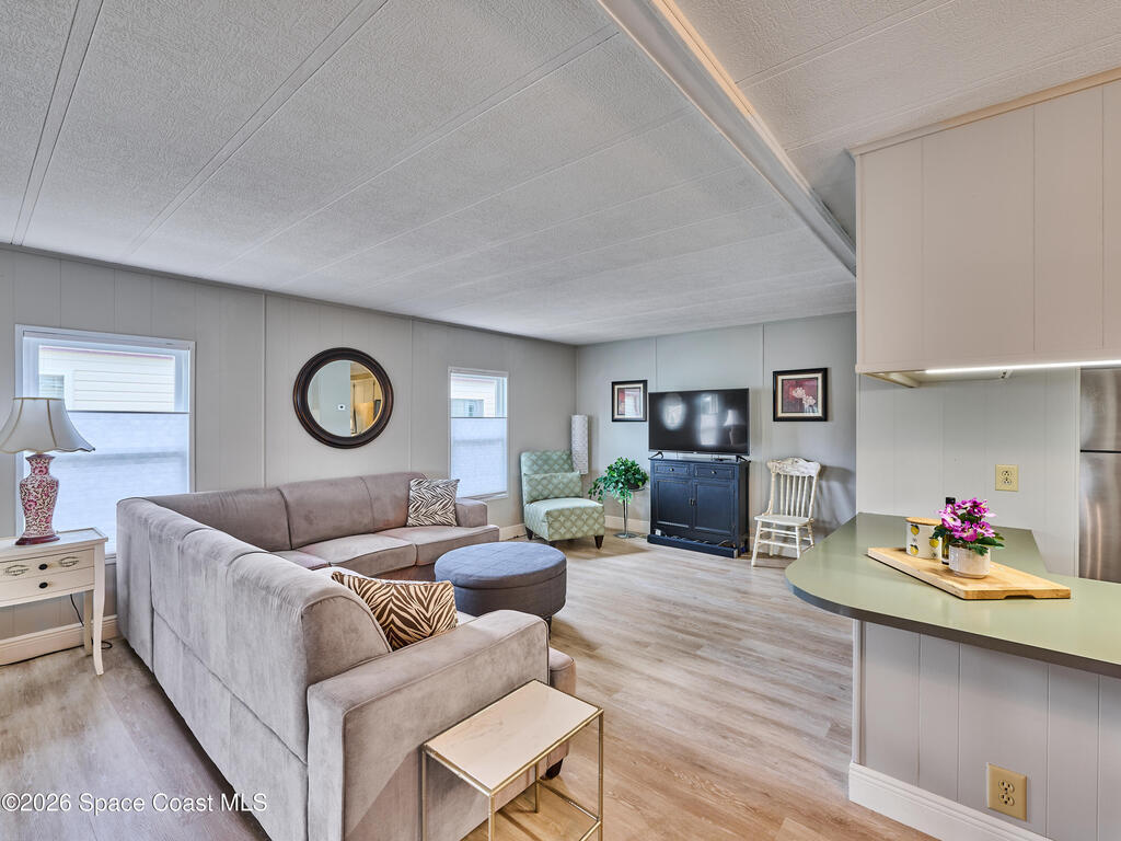 Beautifully updated home offering spacious, relaxed living with abundant natural light streaming through multiple large windows. Enjoy stylish updated LPV flooring throughout, complemented by a durable metal roof, updated windows, and remodeled showers. Kitchen includes stainless steel appliances and a wonderful backsplash. The open, airy layout provides generous living spaces perfect for both entertaining and everyday comfort. A screened porch invites you to unwind and enjoy Florida's breezes year-round.Located in the vibrant Barefoot Bay community, residents enjoy access to gated private oceanfront beach with restroom, showers & picnic tables, golf courses, swimming pools, tennis and pickleball courts, clubhouse, fitness center, boat launch, fishing pier, and a full calendar of social activities. A perfect blend of comfort, updates, and lifestyle awaits!